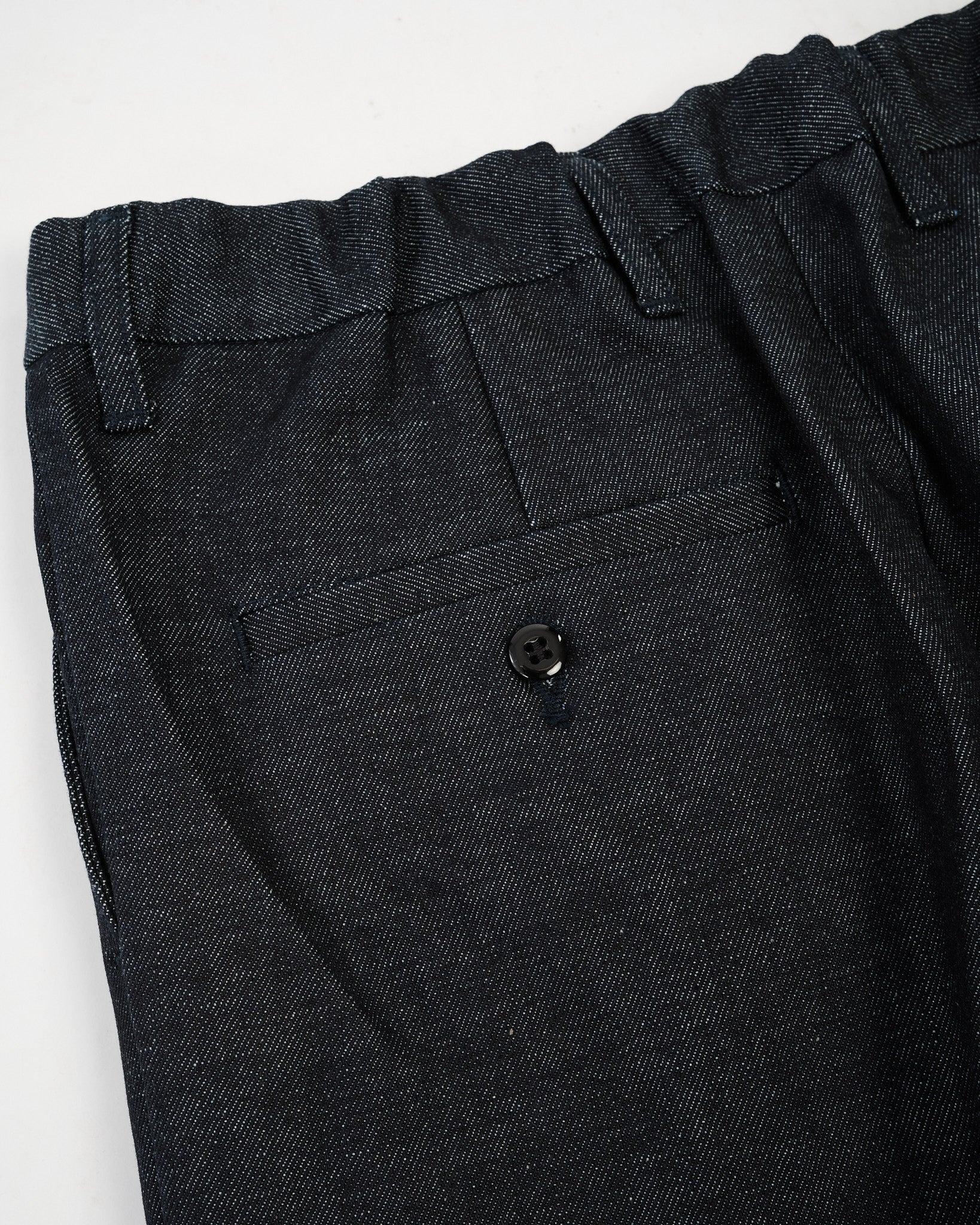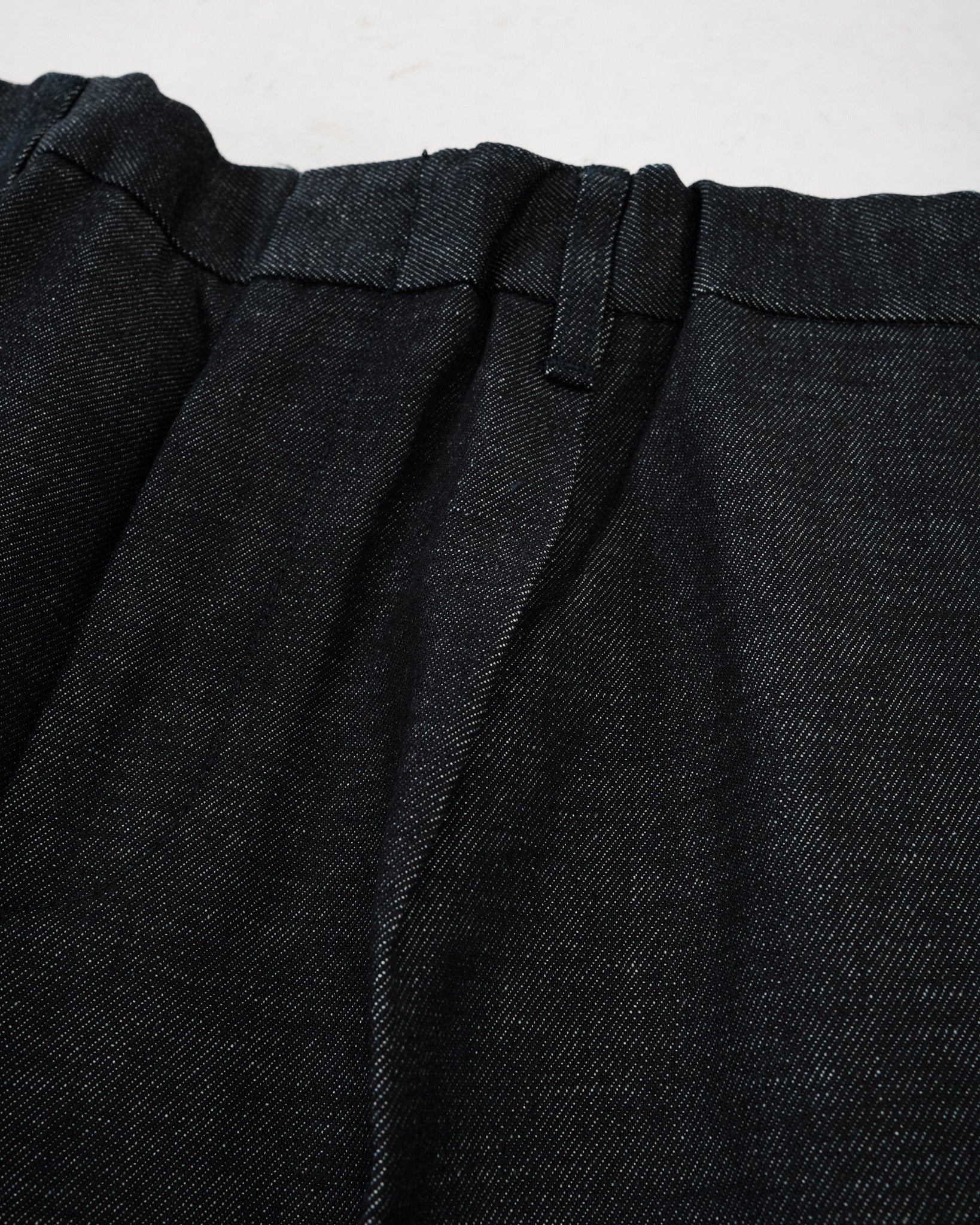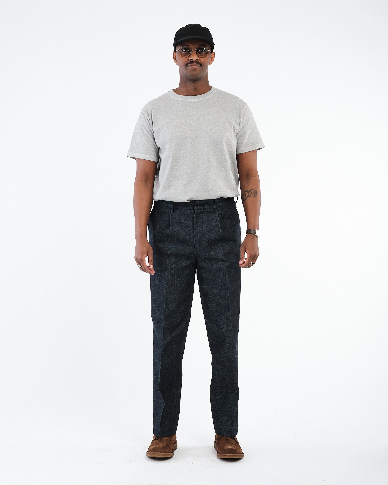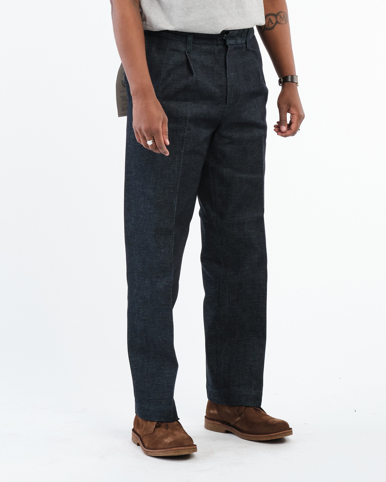 Présentation du Sugar & co. Pantalon de papa dans un riche Indigo teinte. Ces pantalons sont un modèle phare de Sugar & Co., présentant le dévouement de la marque à la qualité et à la conception intemporelle. Fabriqué au Japon à partir de coton 100% américain, le tissu offre une texture robuste mais sèche qui devient plus confortable avec l'usure. La couleur indigo profonde, obtenue à l'aide de fils avec une variation significative, assure des caractéristiques de décoloration et de vieillissement uniques, permettant au pantalon de développer une patine personnalisée au fil du temps.