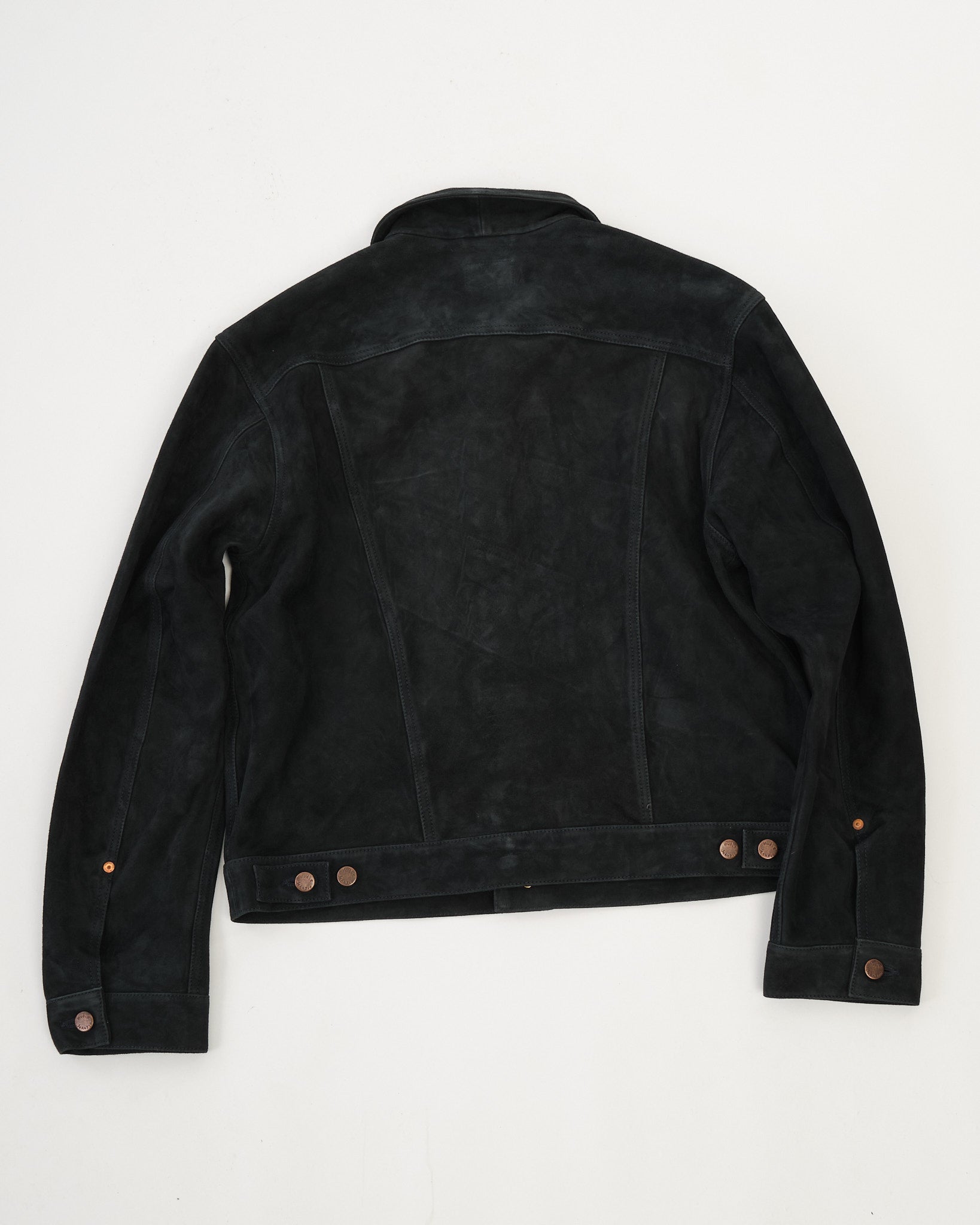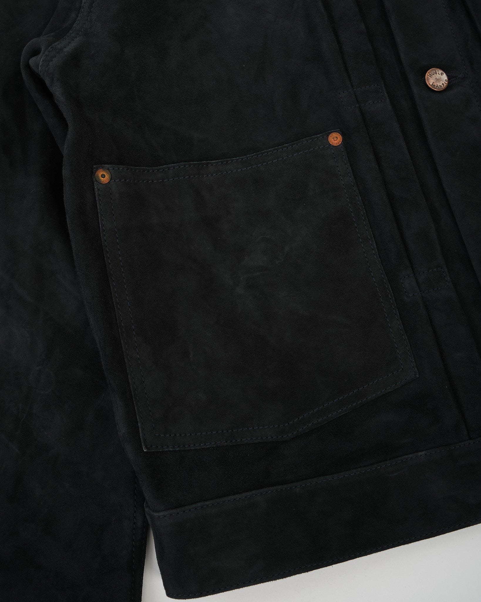 1. Veste style denim classique réimaginée en daim de chèvre luxueux.