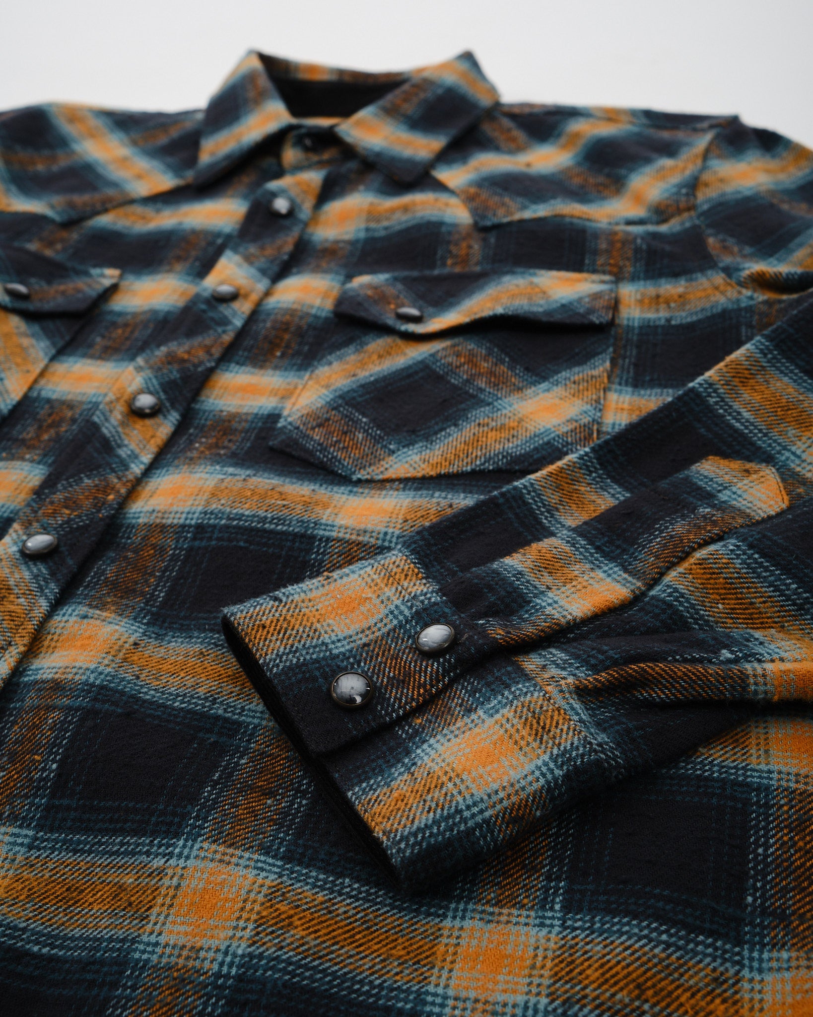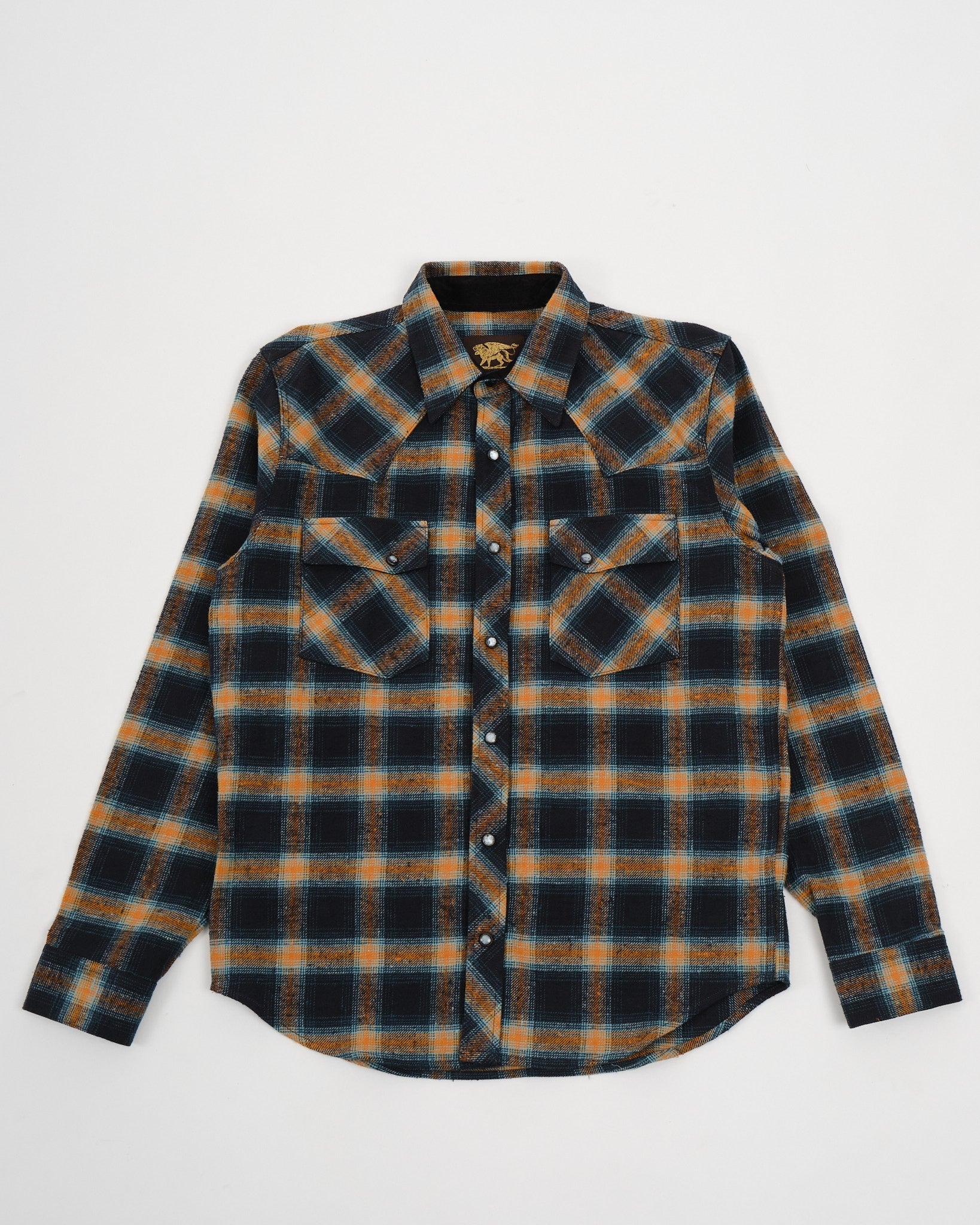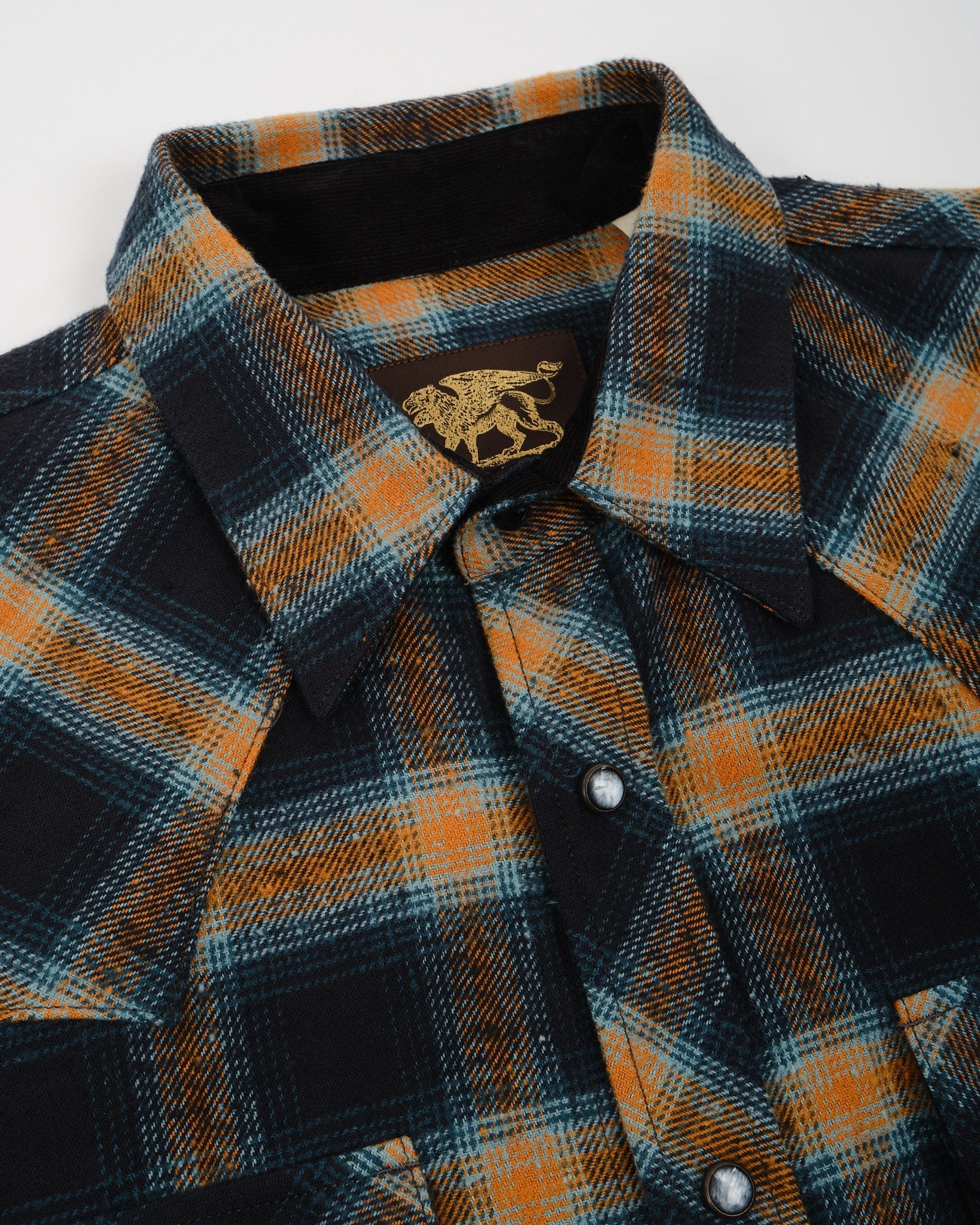 Dawson Flannel Black / Etrol / Rust Check à partir de jeans Indigofera.