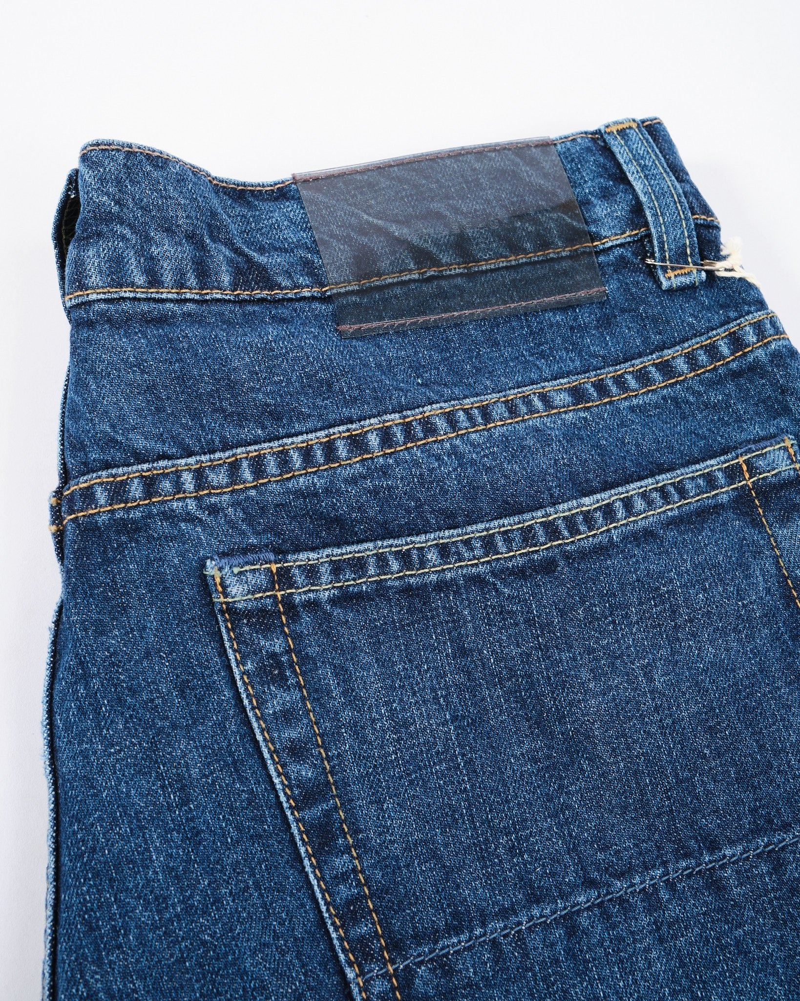 Comporte des éléments pratiques comme des poches arrière renforcées, des rivets en laiton et une fermeture éclair.