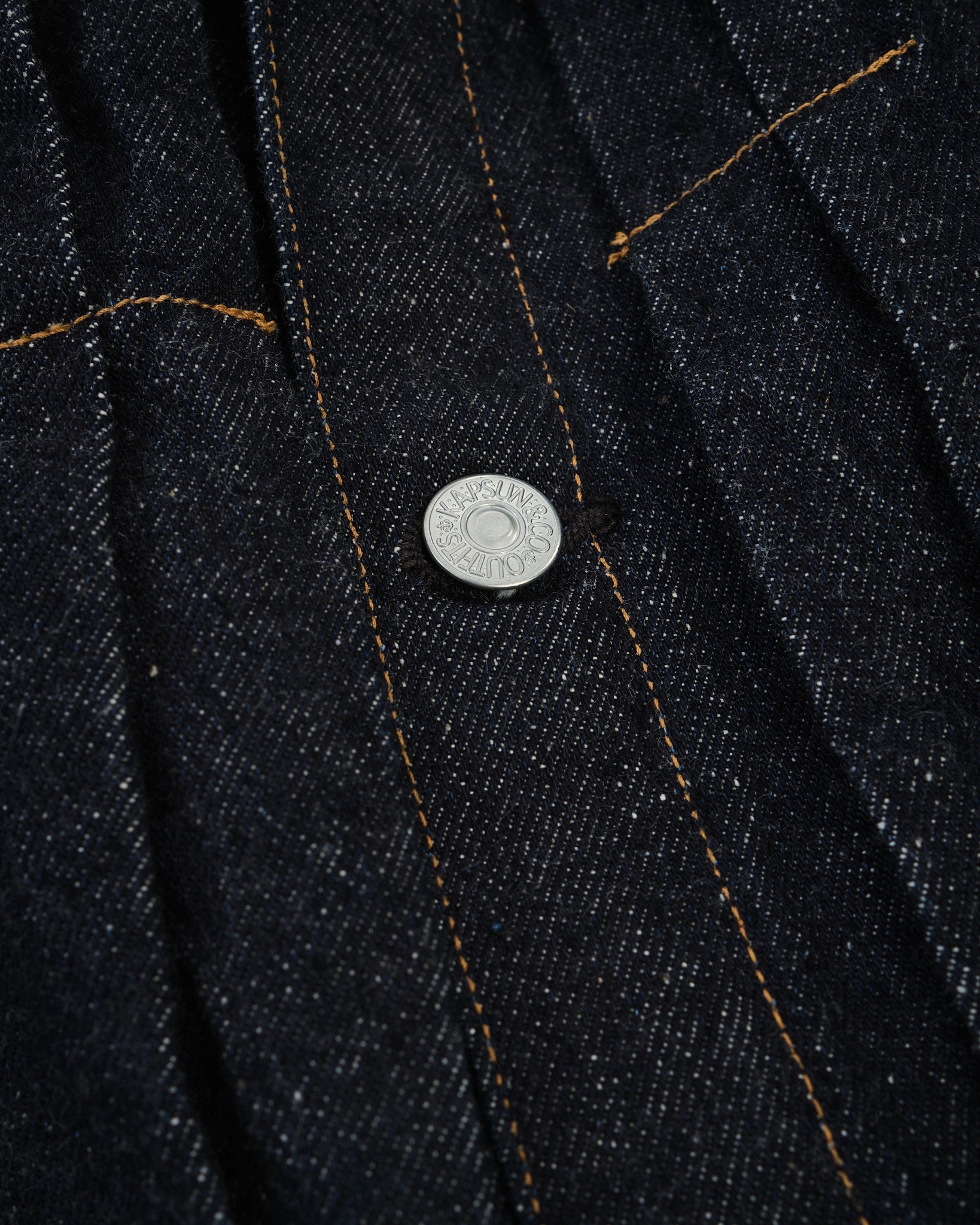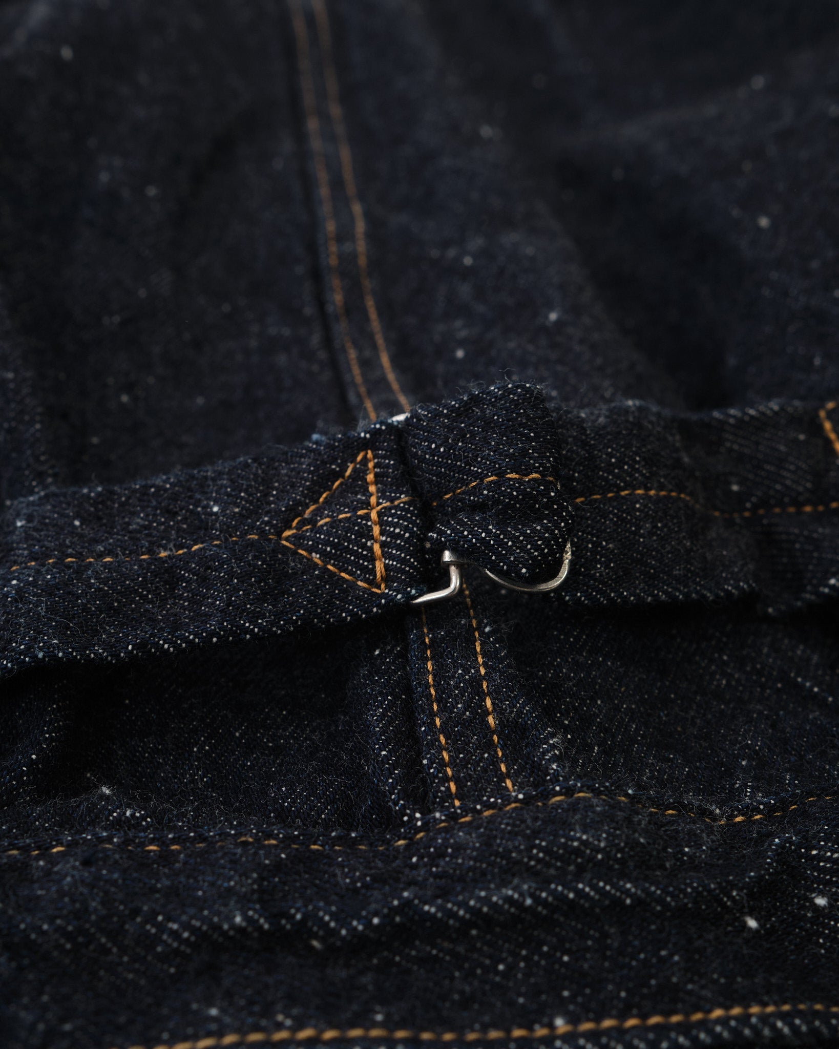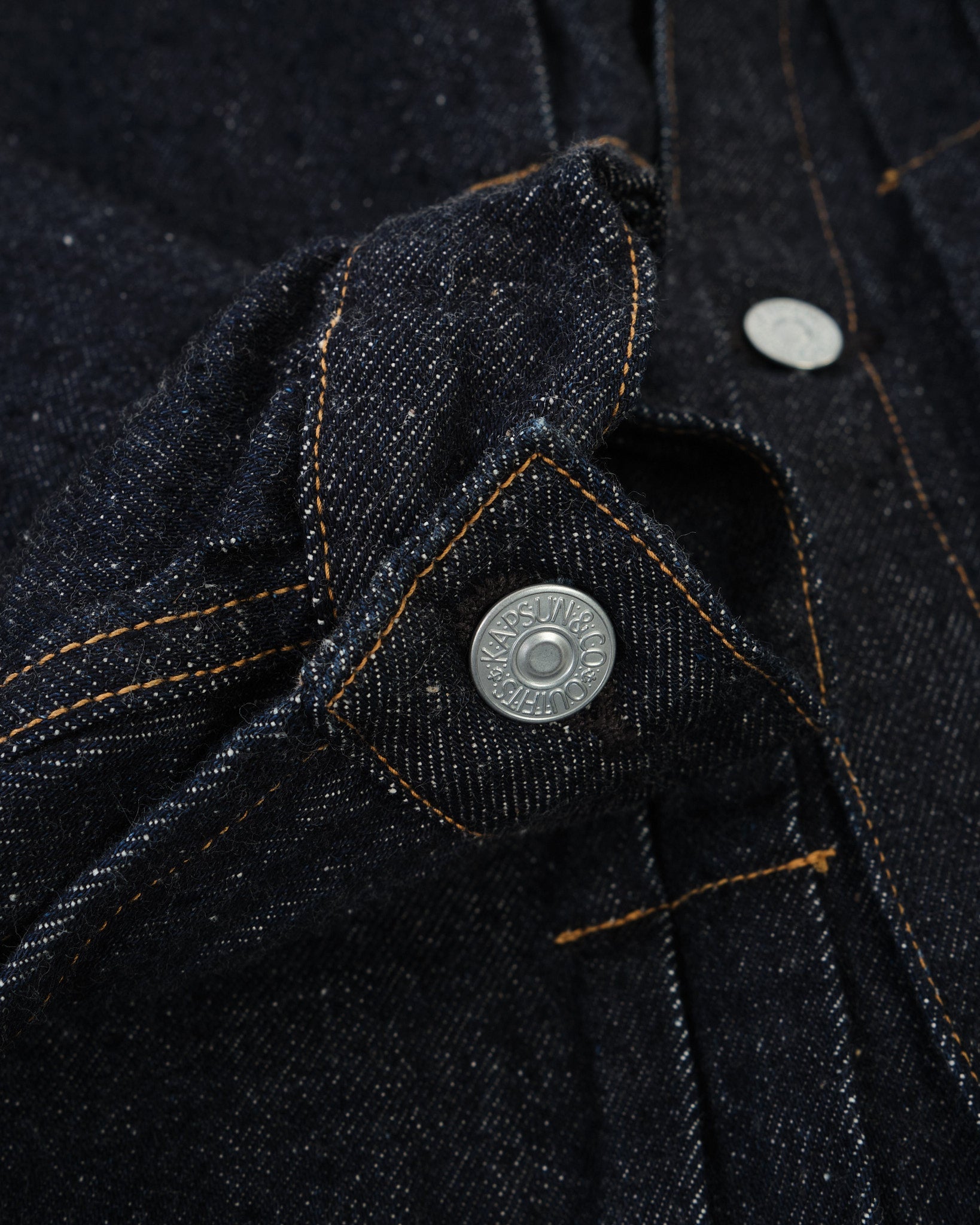 Le Kaptain Sunshine Denim Tracker 1P Jacket (KS25FJK25) dans Indigo est un mélange parfait de artisanat vintage et la durabilité moderne. À partir de 13,5 onces de lim, cette veste est teinte avec pur indigo et incorpore NEP naturel en utilisant de haute qualité Coton de San Joaquin, provenant d'une zone de production de coton de riz établie de longue date.