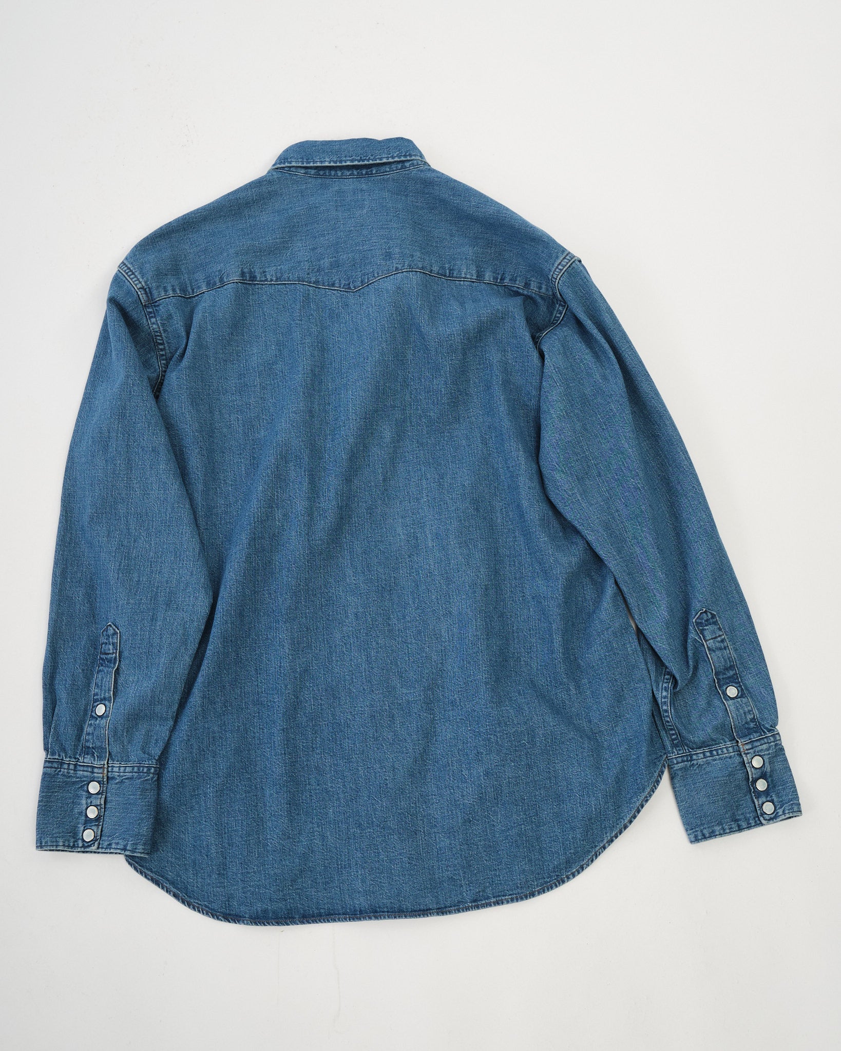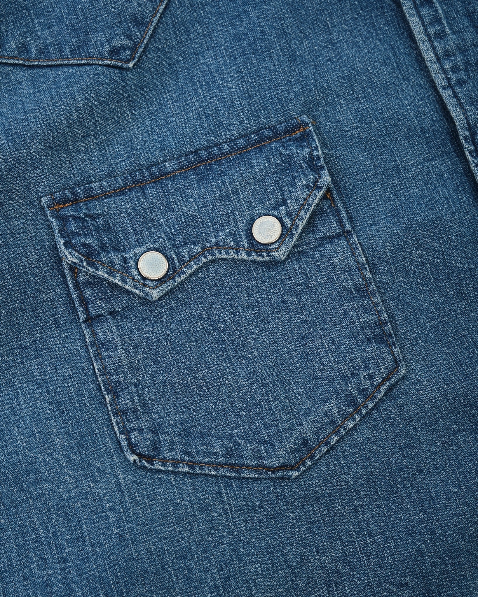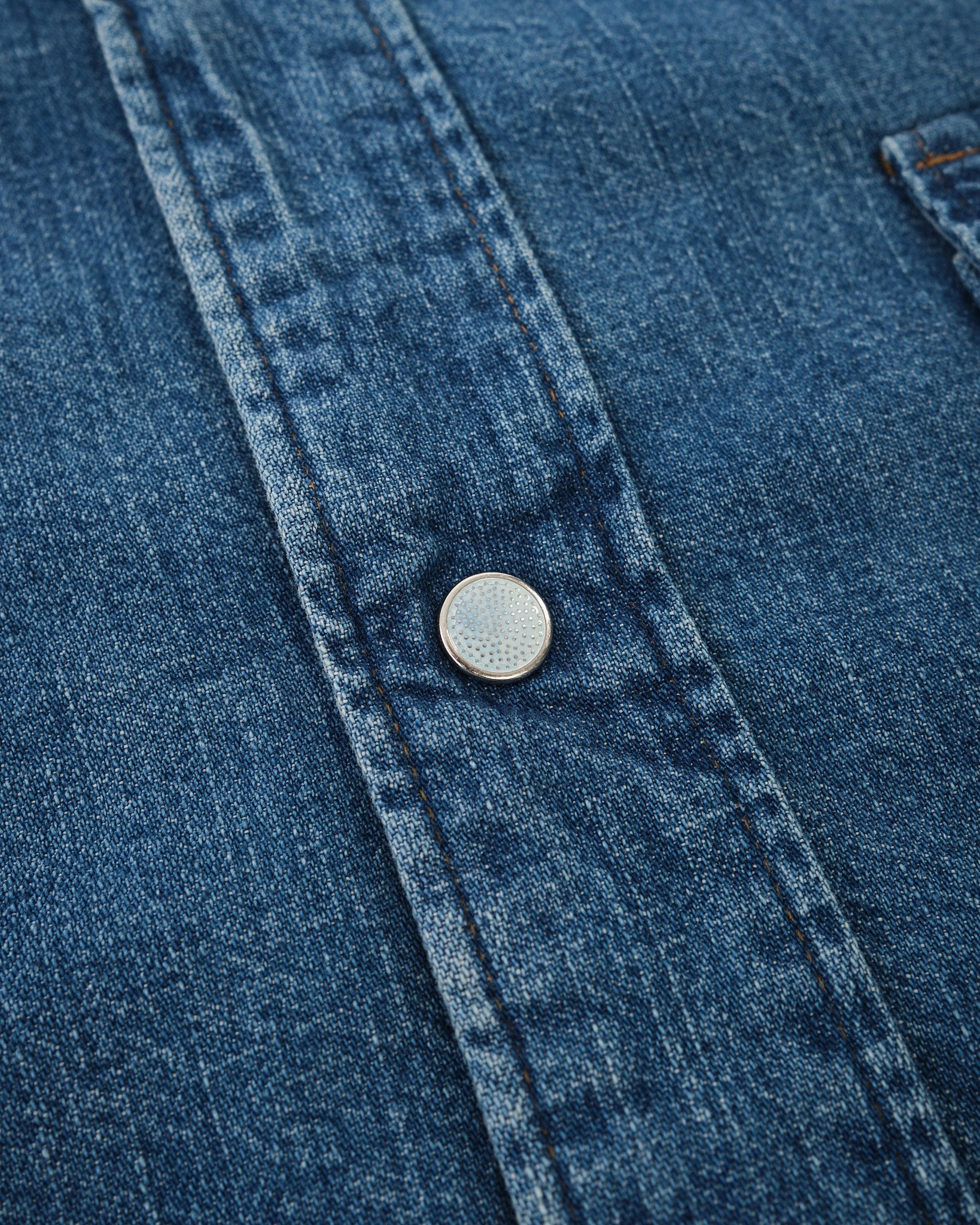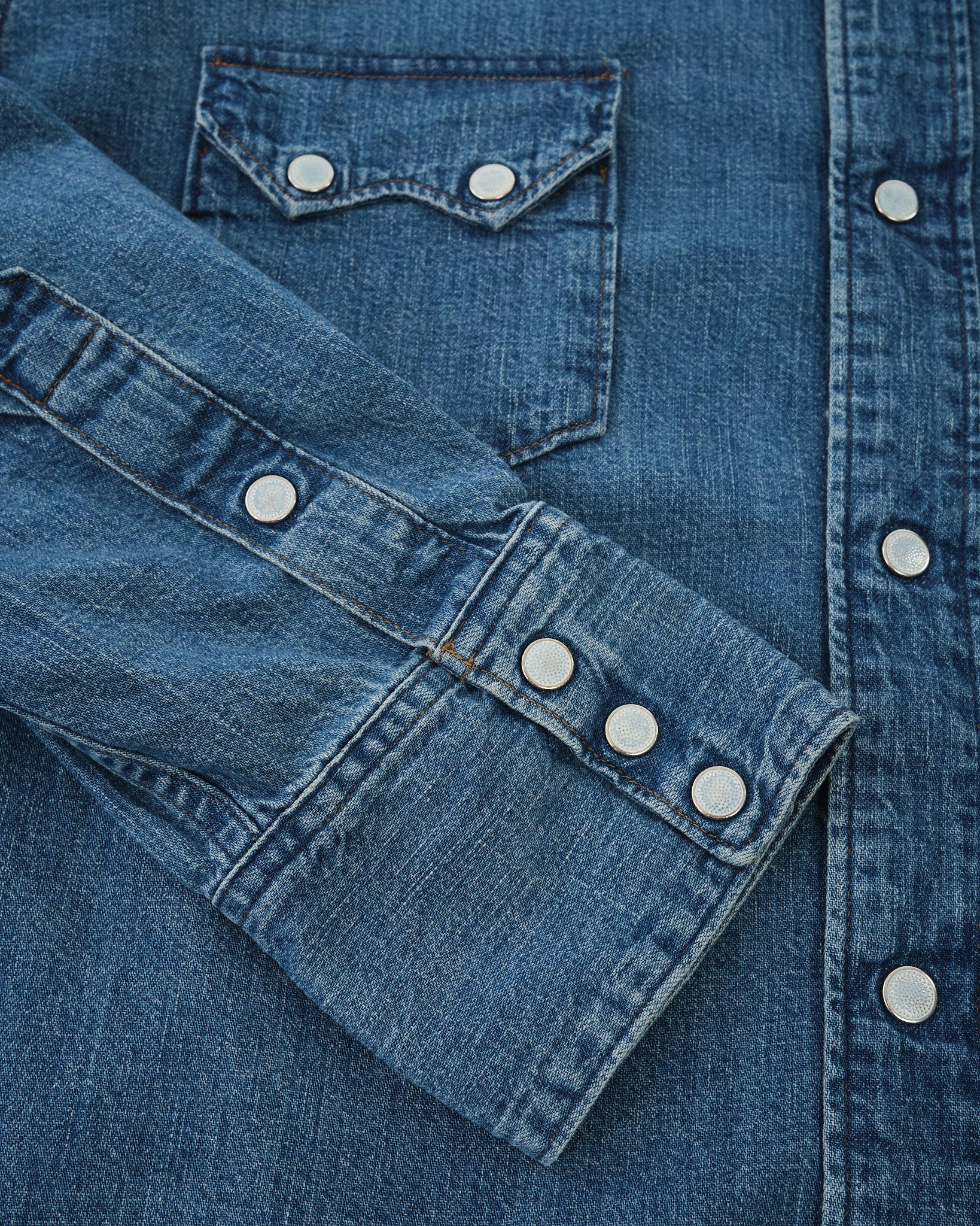 Denim japonais premium pour la durabilité et le confort Finition Used Wash pour un aspect naturellement porté Coupe régulière offrant confort et liberté de mouvement Fermetures à boutons-pression avec un empiècement pointu pour un style western authentique Deux poches poitrine avec rabats à boutons-pression pour la praticité Poignets à boutons-pression pour un confort ajustable Coutures renforcées pour une durabilité accrue Ourlet courbé pour une silhouette équilibrée Branding orSlow subtil pour une esthétique discrète Conçu et fabriqué au Japon Code Produit : 01-8124-95