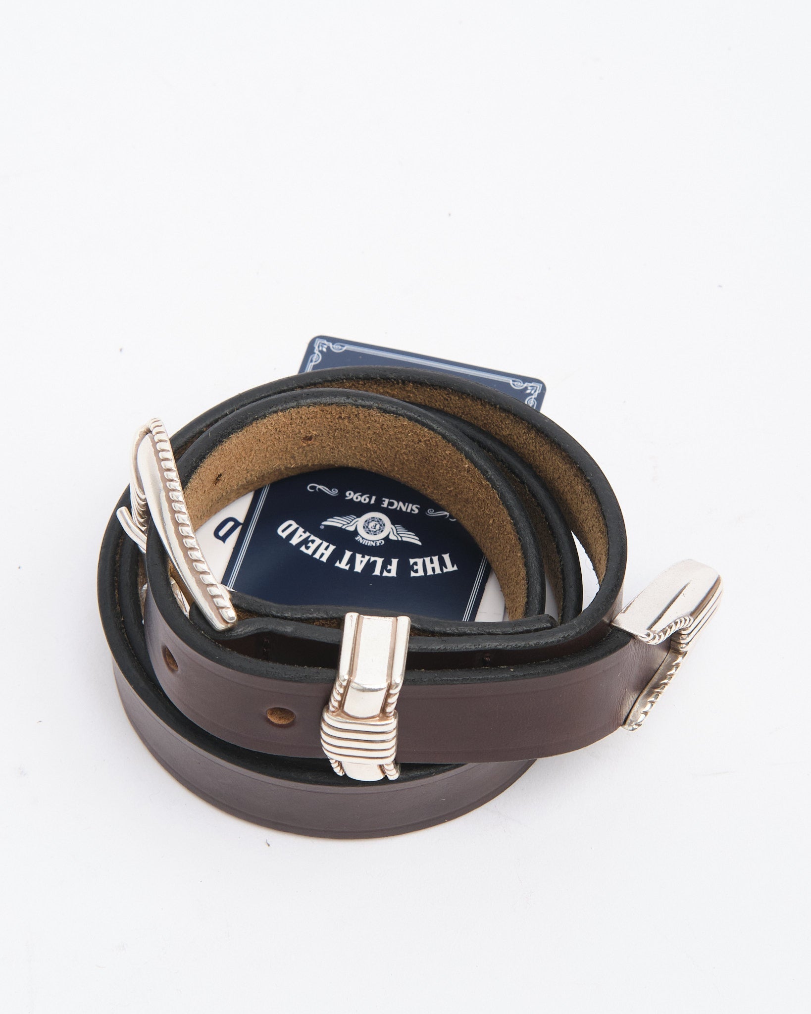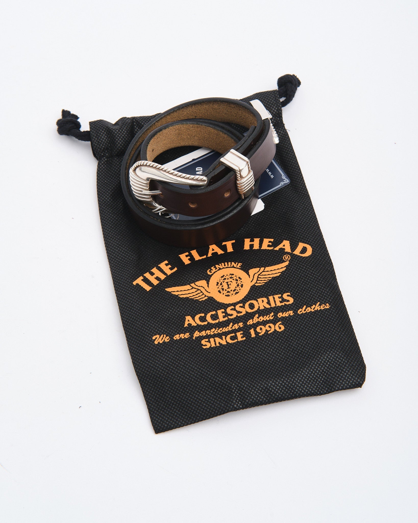 Fabriqué au Japon, cette ceinture présente La maîtrise de la tête de la tête plate, livrer esthétique occidentale intemporelle combinée à l'artisanat de haut niveau.