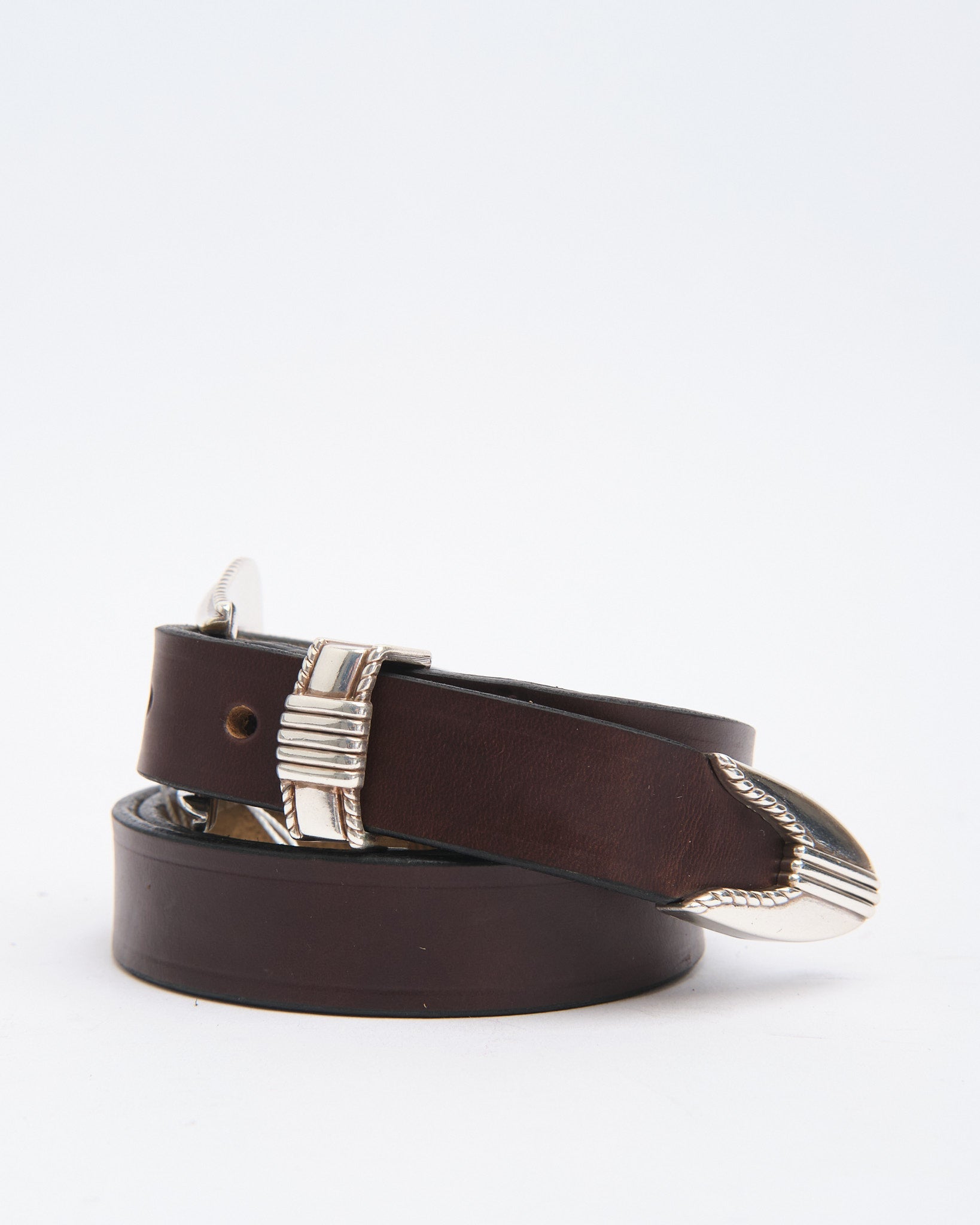 FN-BE-L006 3 Piece Chromexel Western Belt Brown