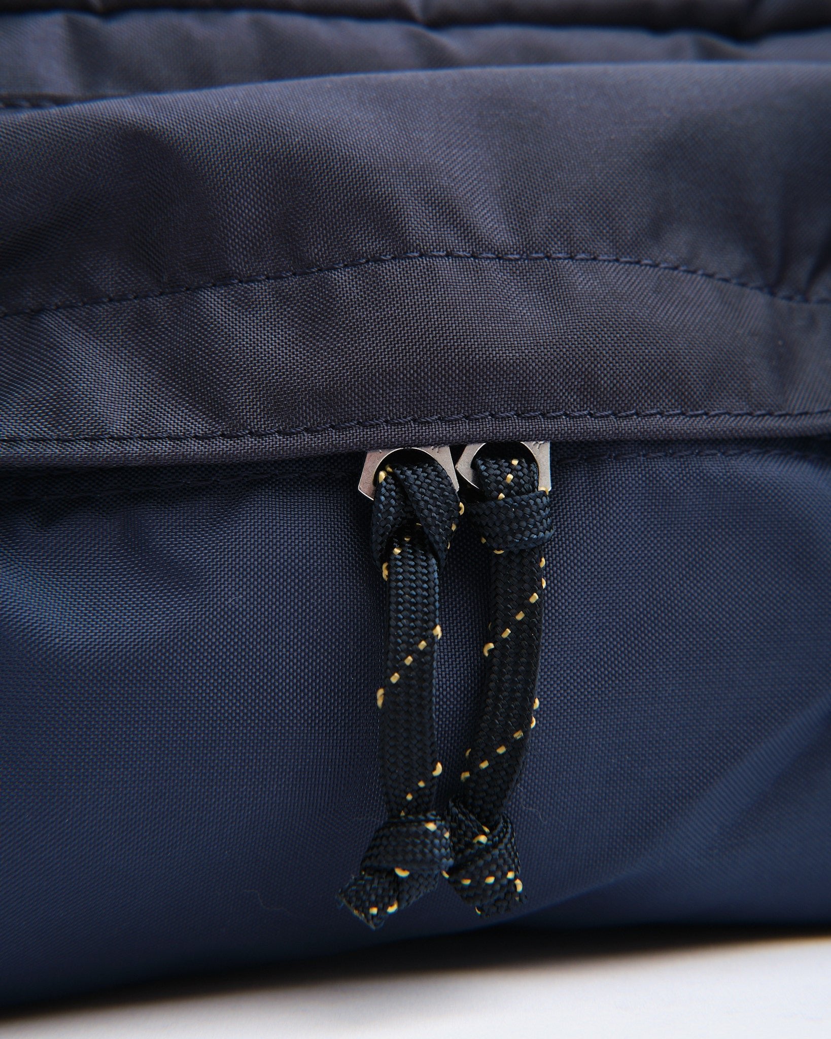 Fabriqué à partir de tissu de qualité industrielle tissé avec 210 Denier 6 Nylon Strong File, qui était à l'origine utilisé pour les bateaux en caoutchouc, le sac assure une durabilité élevée. L'intérieur est bordé de Couleur d'urgence orange, inspiré par les vestes militaires, et est matelassé avec nylon ripstop pour plus de force.
