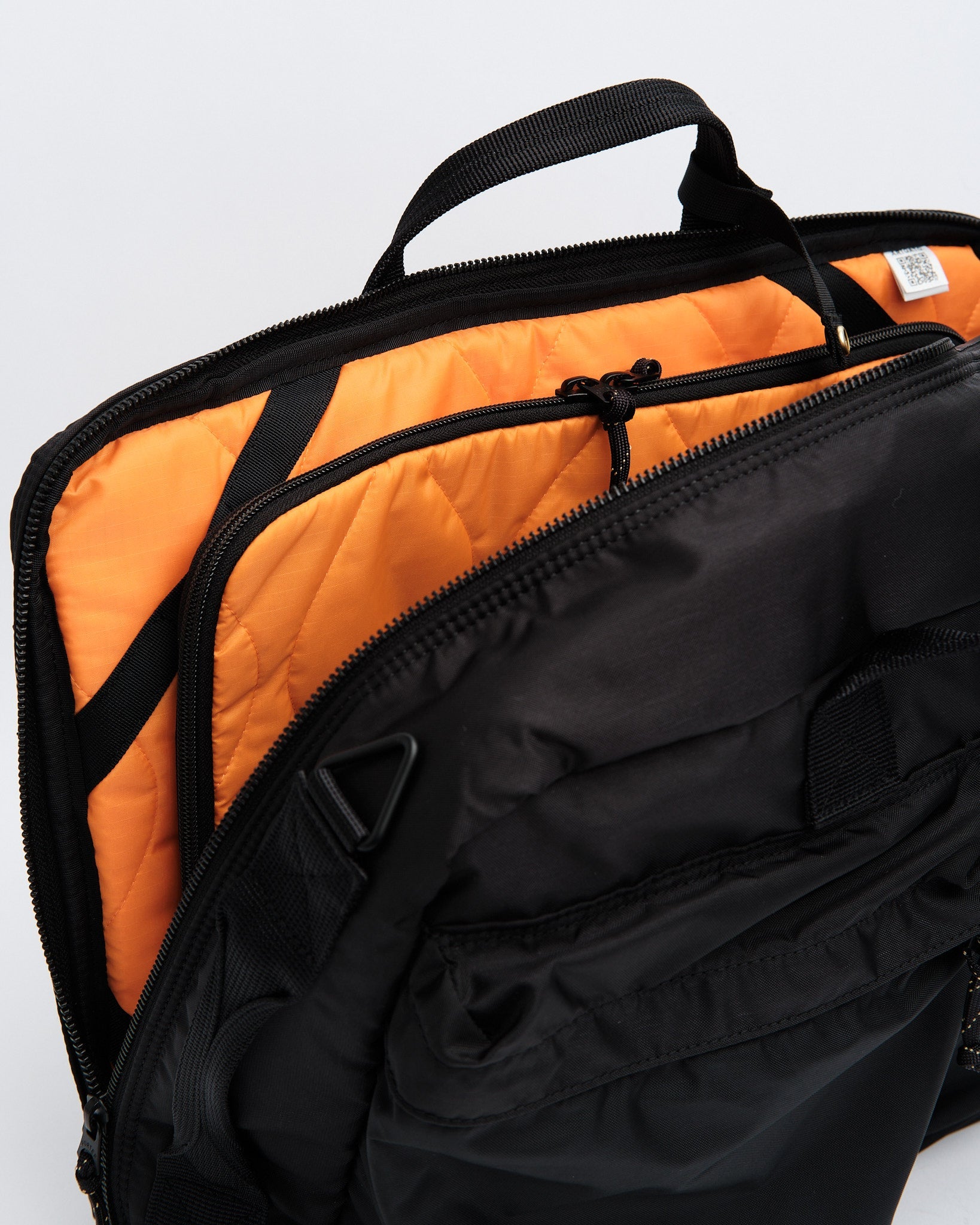Le PORTER BY YOSHIDA Porte-documents 3 Voies fait partie de la série PORTER FORCE, inspirée par l'esthétique militaire et les différences de couleur accidentelles trouvées dans les biens militaires. Une caractéristique notable de ce design est la variation subtile de couleur entre le tissu de la poche avant et le corps principal du sac, créant l'apparence d'utiliser différents lots de tissus. Cette série célèbre les schémas de couleurs irréguliers trouvés dans les vêtements et accessoires militaires.