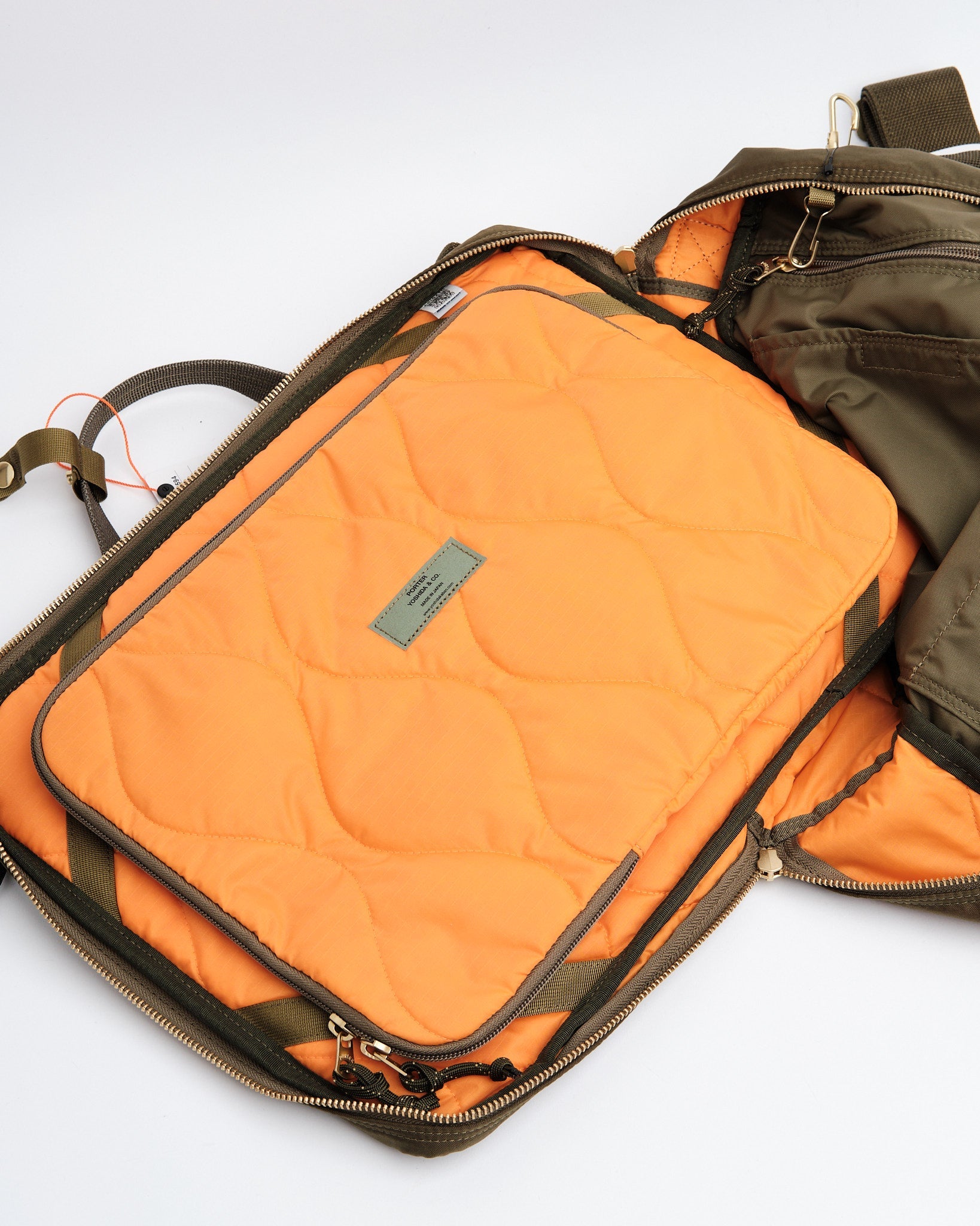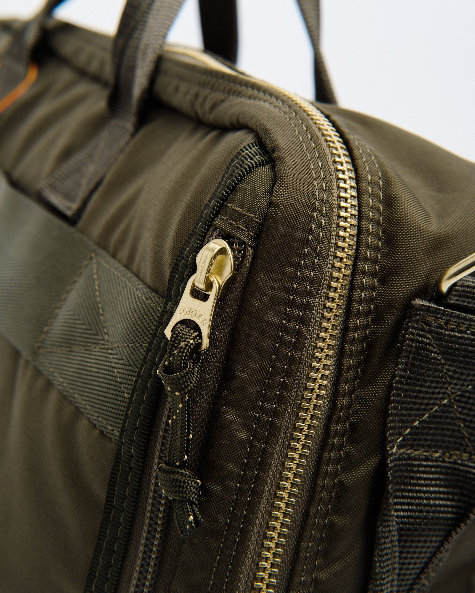 Le PORTER BY YOSHIDA Porte-documents 3 Voies Force fait partie de la série PORTER FORCE, inspirée par l'esthétique militaire et les différences de couleur accidentelles trouvées dans les biens militaires. Une caractéristique notable de ce design est la variation subtile de couleur entre le tissu de la poche avant et le corps principal du sac, créant l'apparence d'utiliser différents lots de tissu. Cette série célèbre les schémas de couleur irréguliers trouvés dans les vêtements et accessoires militaires.