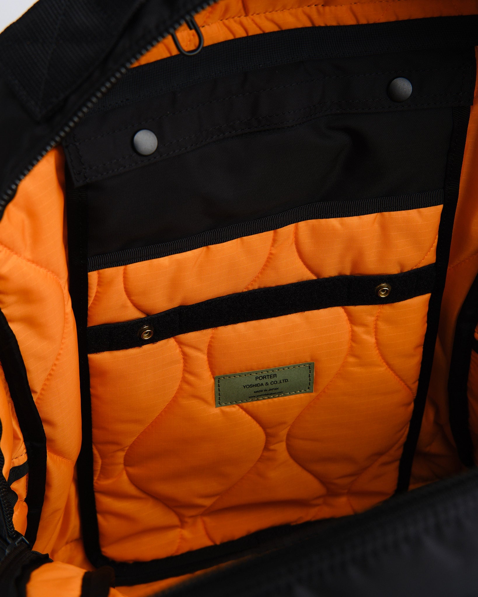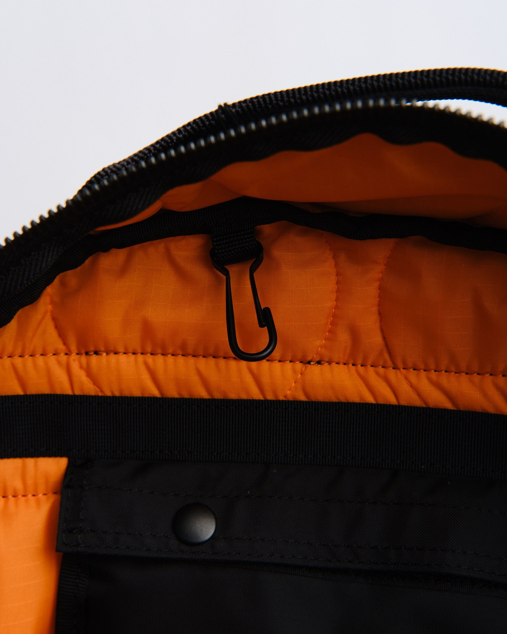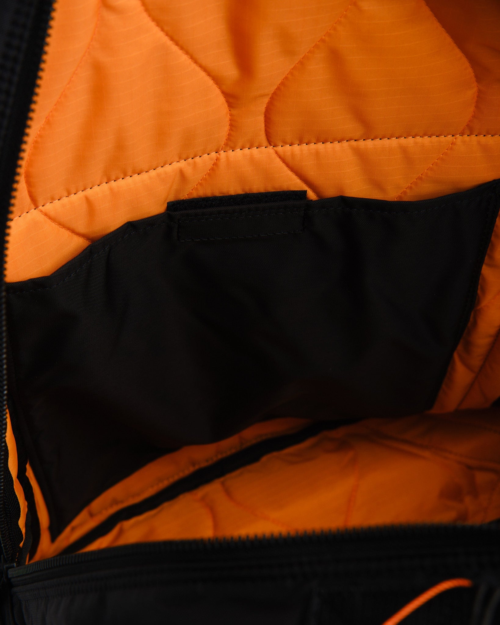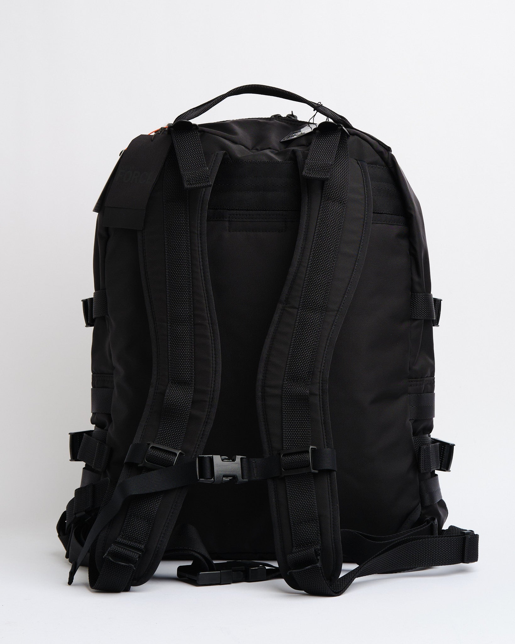 Le matériau extérieur du Sac à dos de force est fabriqué à partir d'un tissu industriel à haute durabilité, tissé avec 210 Denier 6 Nylon Strong File, utilisé à l'origine dans des bateaux en caoutchouc et conçu pour être résistant à la teinture. Ce matériau robuste garantit que le sac est à la fois dur et polyvalent. Pour plus d'authenticité, l'intérieur du sac présente Couleur d'urgence orange, inspiré par la doublure des vestes militaires et matelassée nylon ripstop pour la durabilité.