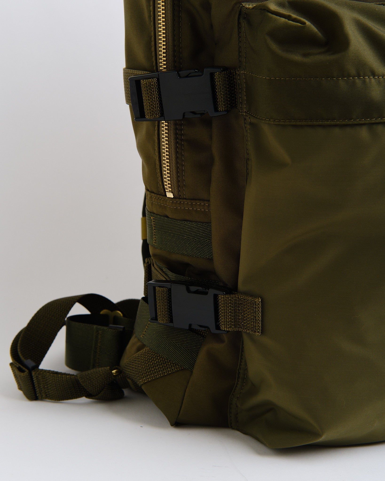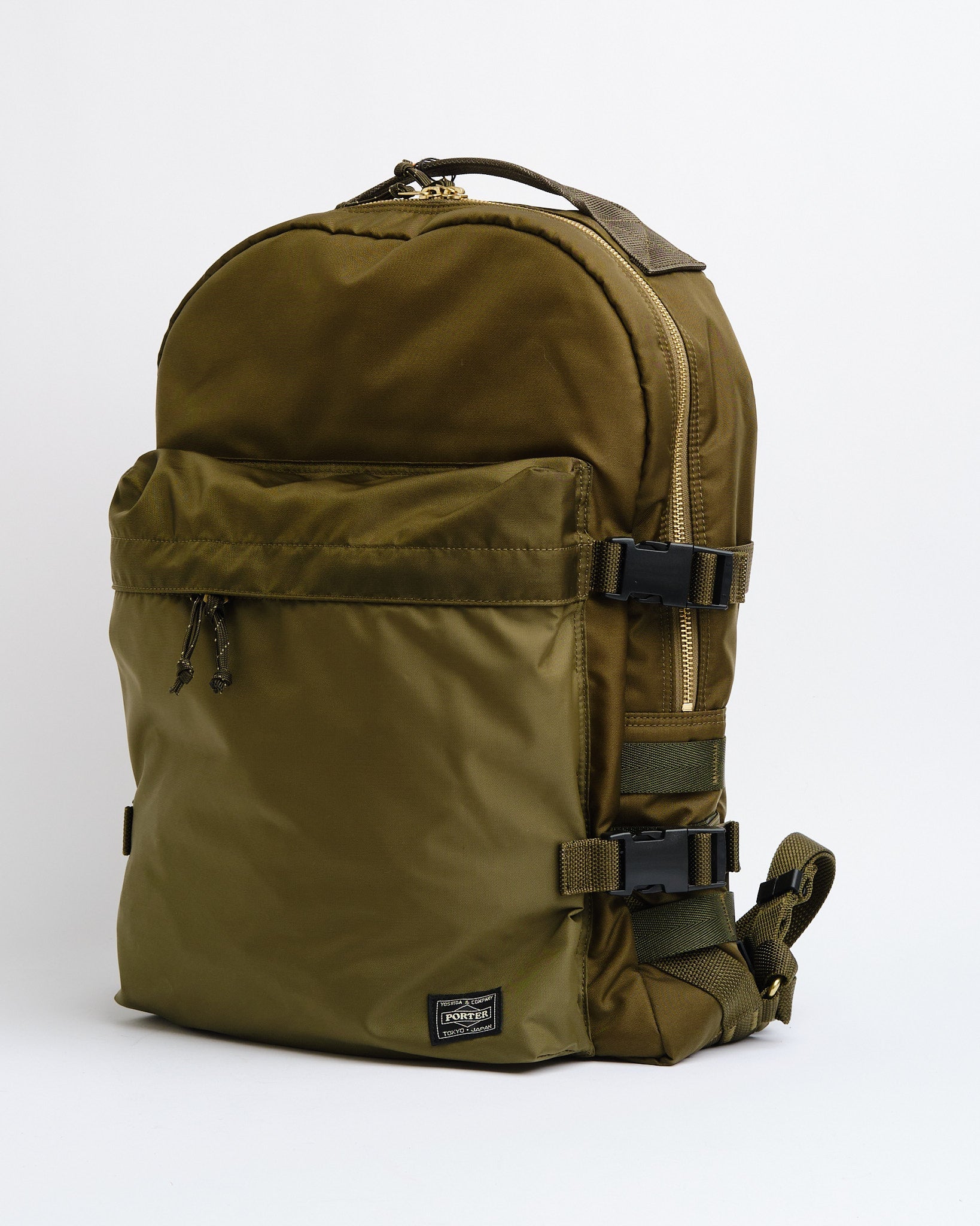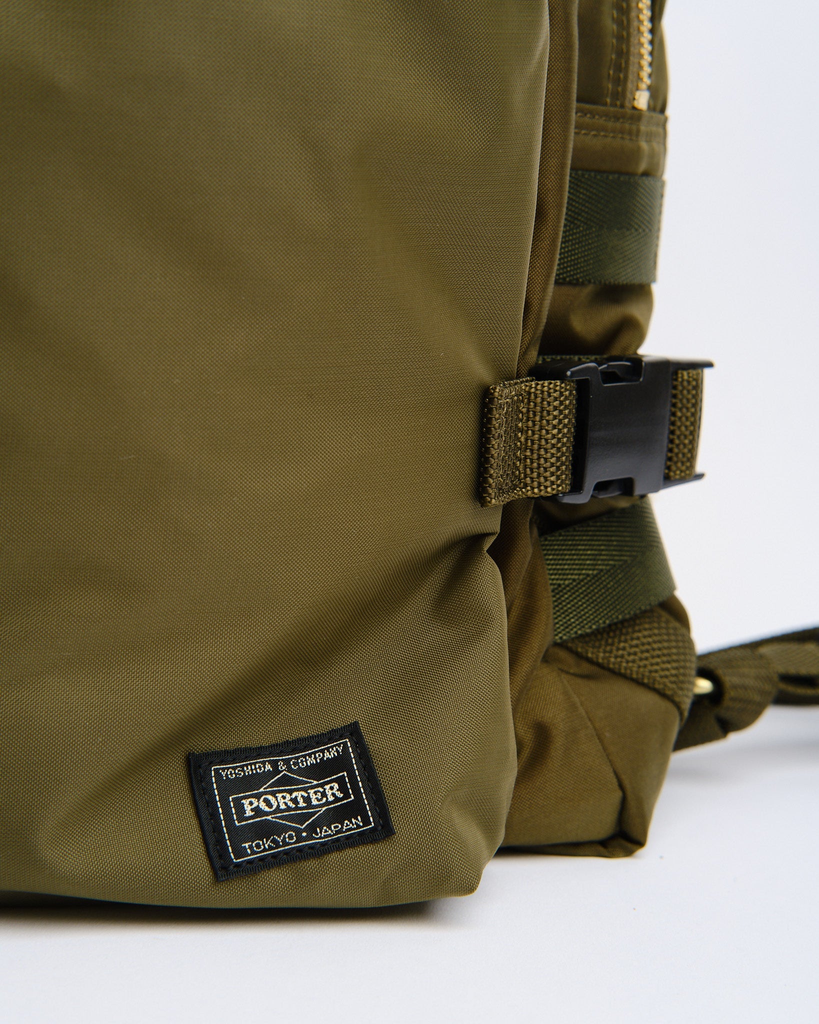 Le Porter par Yoshida Force Daypack fait partie du Porteur Série, inspirée par l'esthétique militaire et les différences de couleurs accidentelles trouvées dans les biens militaires. Une caractéristique notable de cette conception est la variation de couleur subtile entre le tissu de poche avant et le corps principal, créant l'apparition d'utiliser différents lots de tissu. Cette série célèbre les schémas de couleurs irréguliers trouvés dans les vêtements et accessoires militaires.