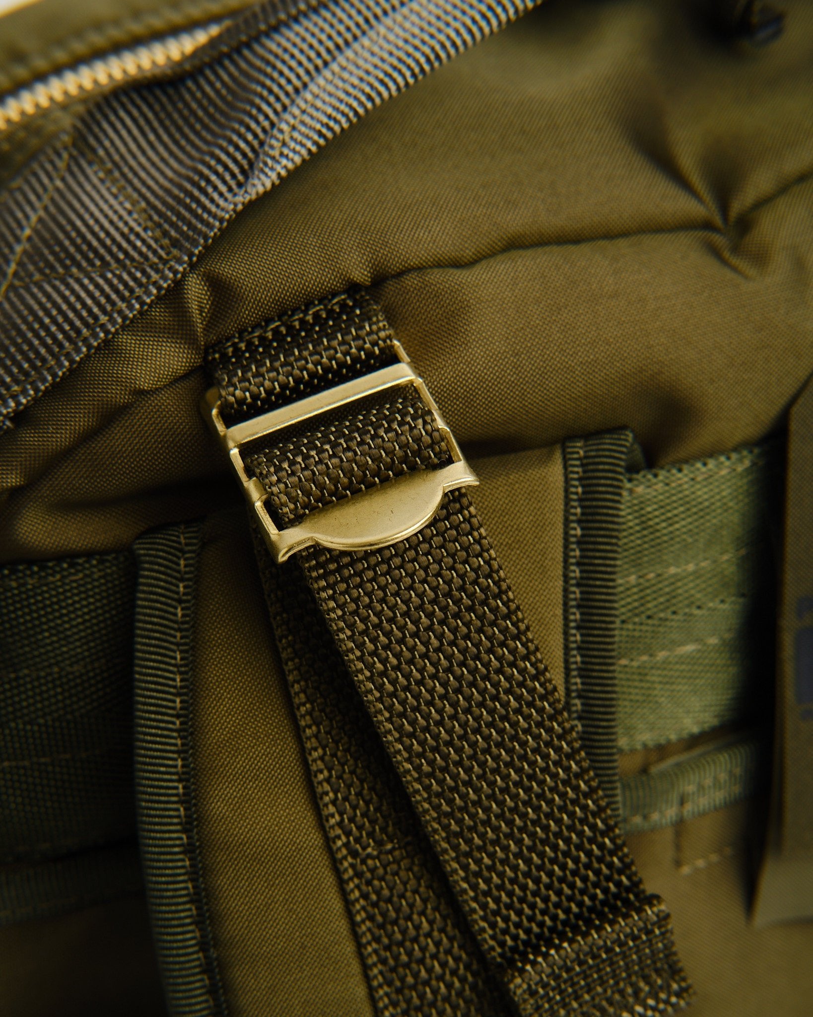Incorporer jusqu'à Quatre types différents de ruban en nylon Dans les domaines clés, le sac atteint une atmosphère militaire authentique. De plus, la poche intérieure est amovible et peut servir de poche autonome.