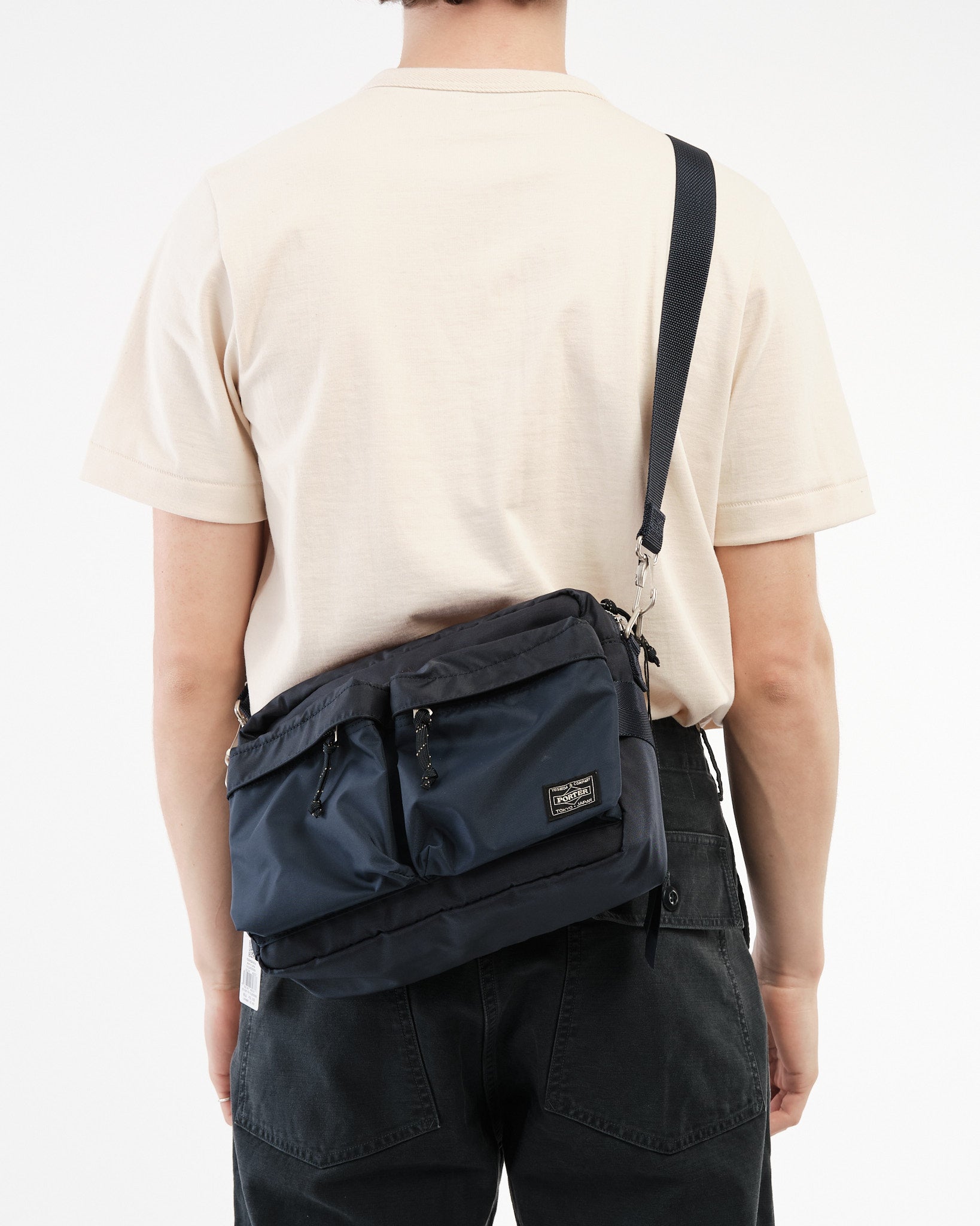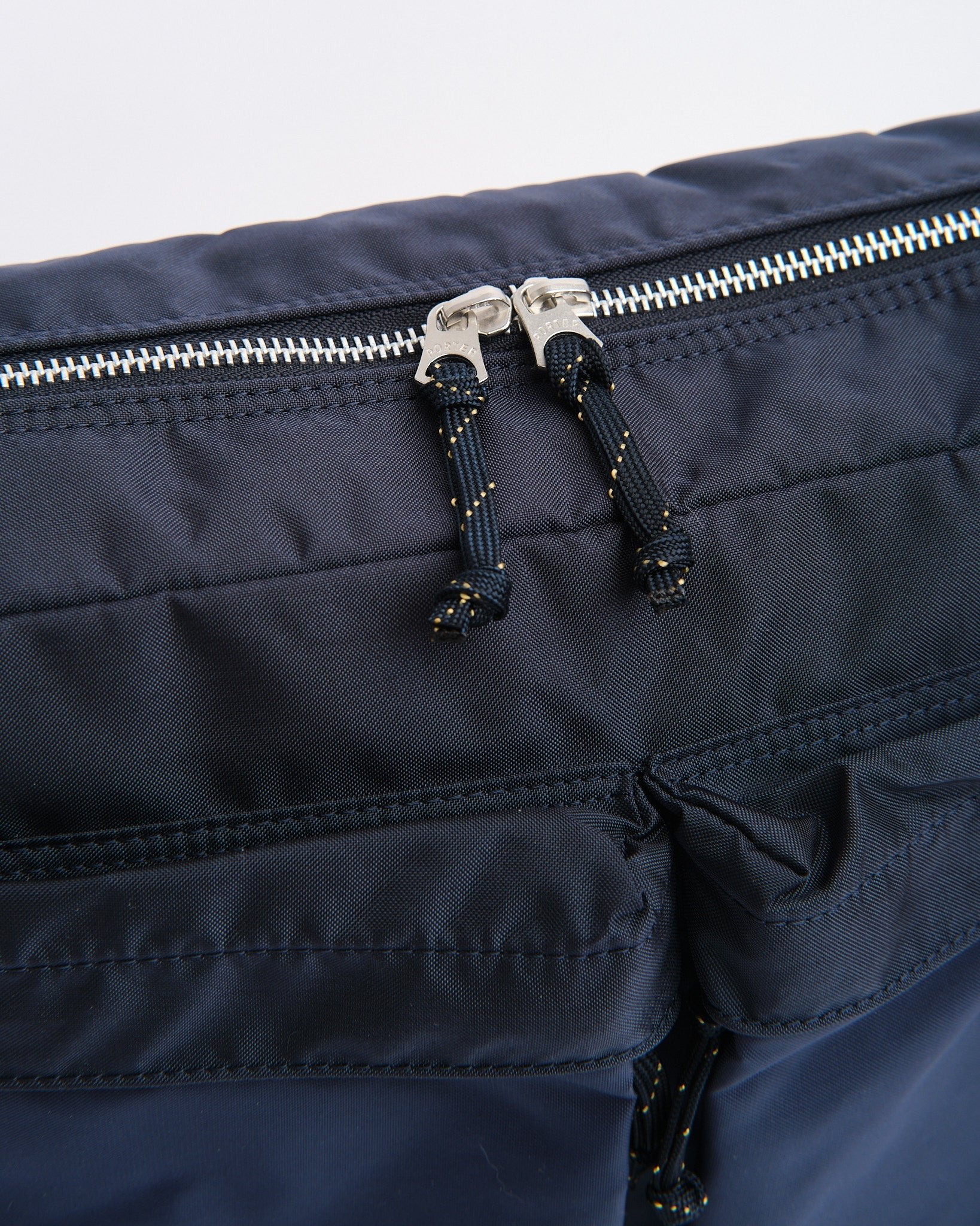 Le Porter par Yoshida Force Bag de force fait partie du Porteur Série, qui s'inspire de l'esthétique militaire et des différences de couleurs accidentelles trouvées dans les biens militaires. Une caractéristique proéminente de cette conception est la variation de couleur subtile entre le tissu de la poche avant et le corps principal du sac, ce qui lui fait apparaître comme si différents lots de tissu étaient utilisés. Cette série célèbre ces schémas de couleurs irréguliers, couramment vus dans l'usure militaire et les accessoires.