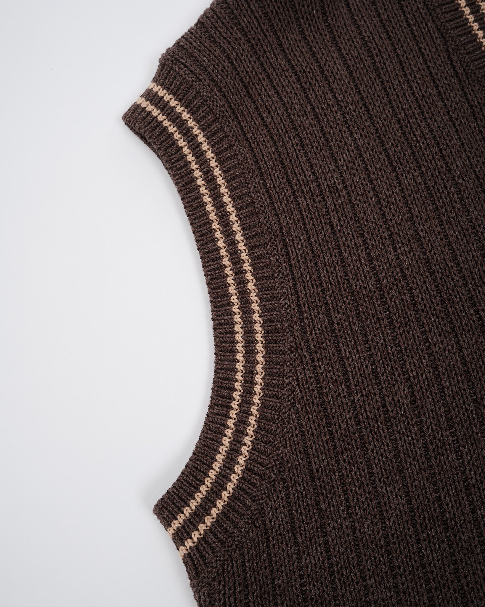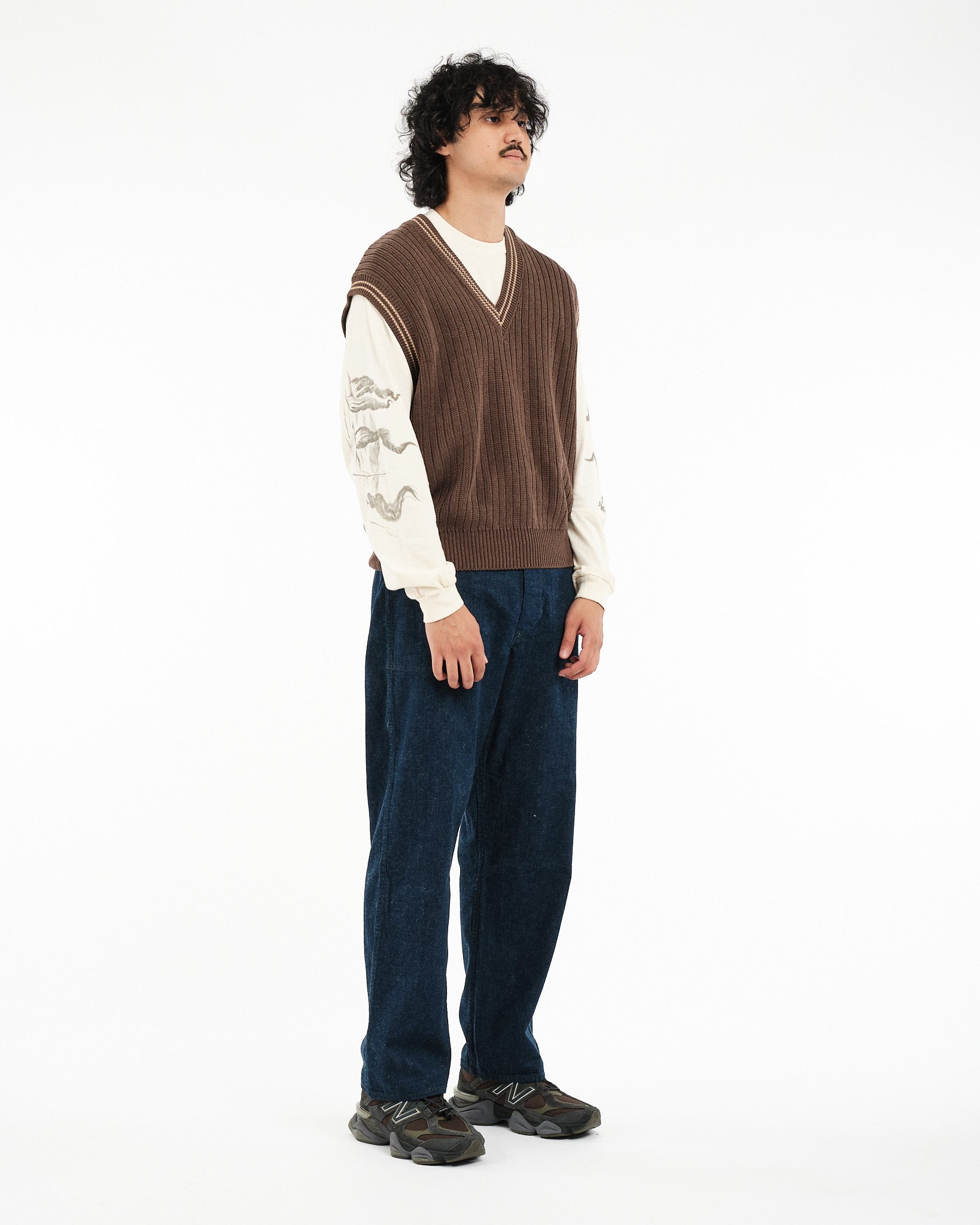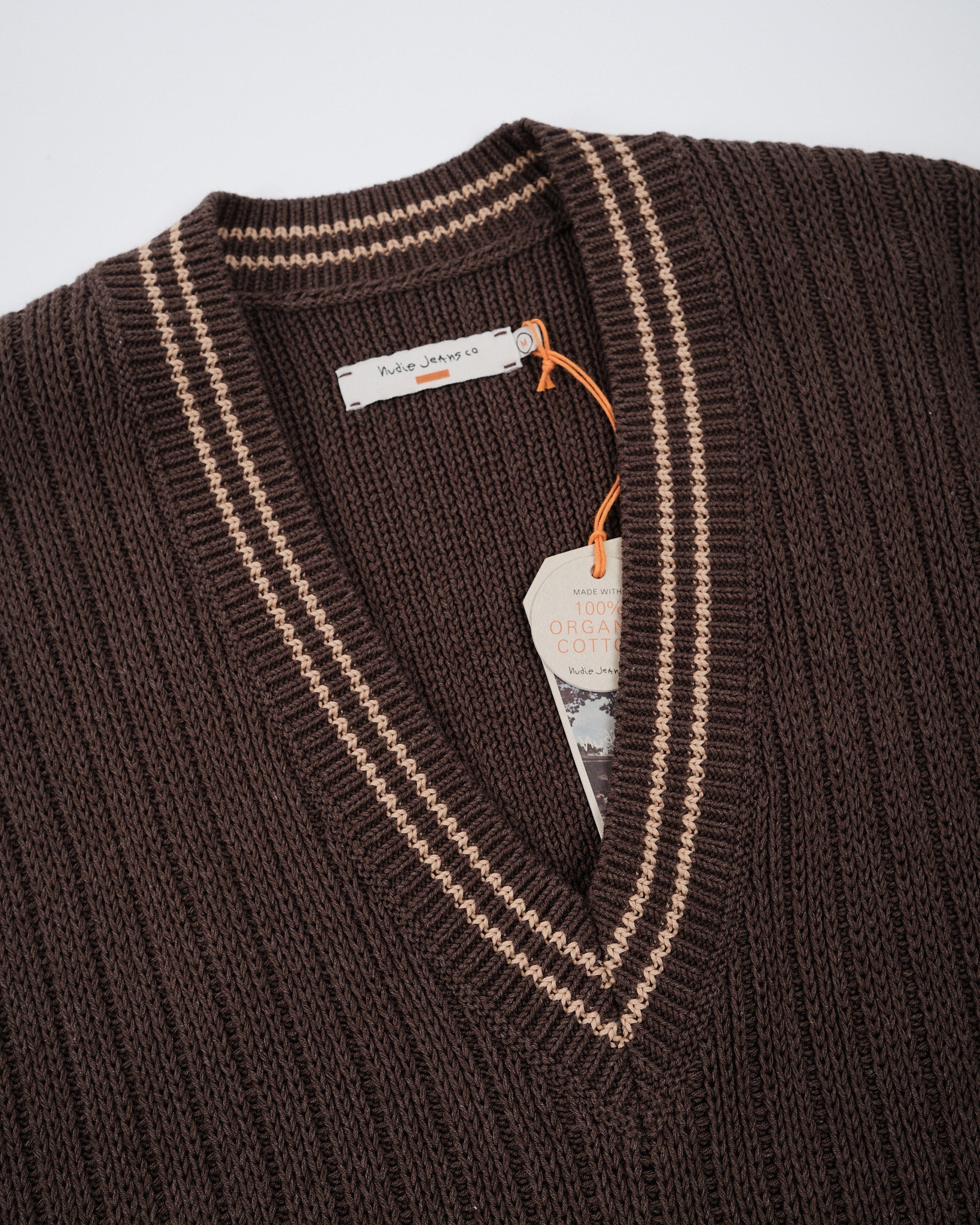 Offrez-vous à un confort intemporel avec le gilet tricoté Sverre, par Nudie Jeans Co. conçu pour une apparence encore polie. Ce gilet à col en V est fabriqué à partir de coton biologique de poids présentant un large tricot nervuré qui offre un mélange de texture et de confort. La touche finale comprend des poignets de côtes à rayures élégamment rayés en mélangeant le charme avec une adhérence contemporaine.