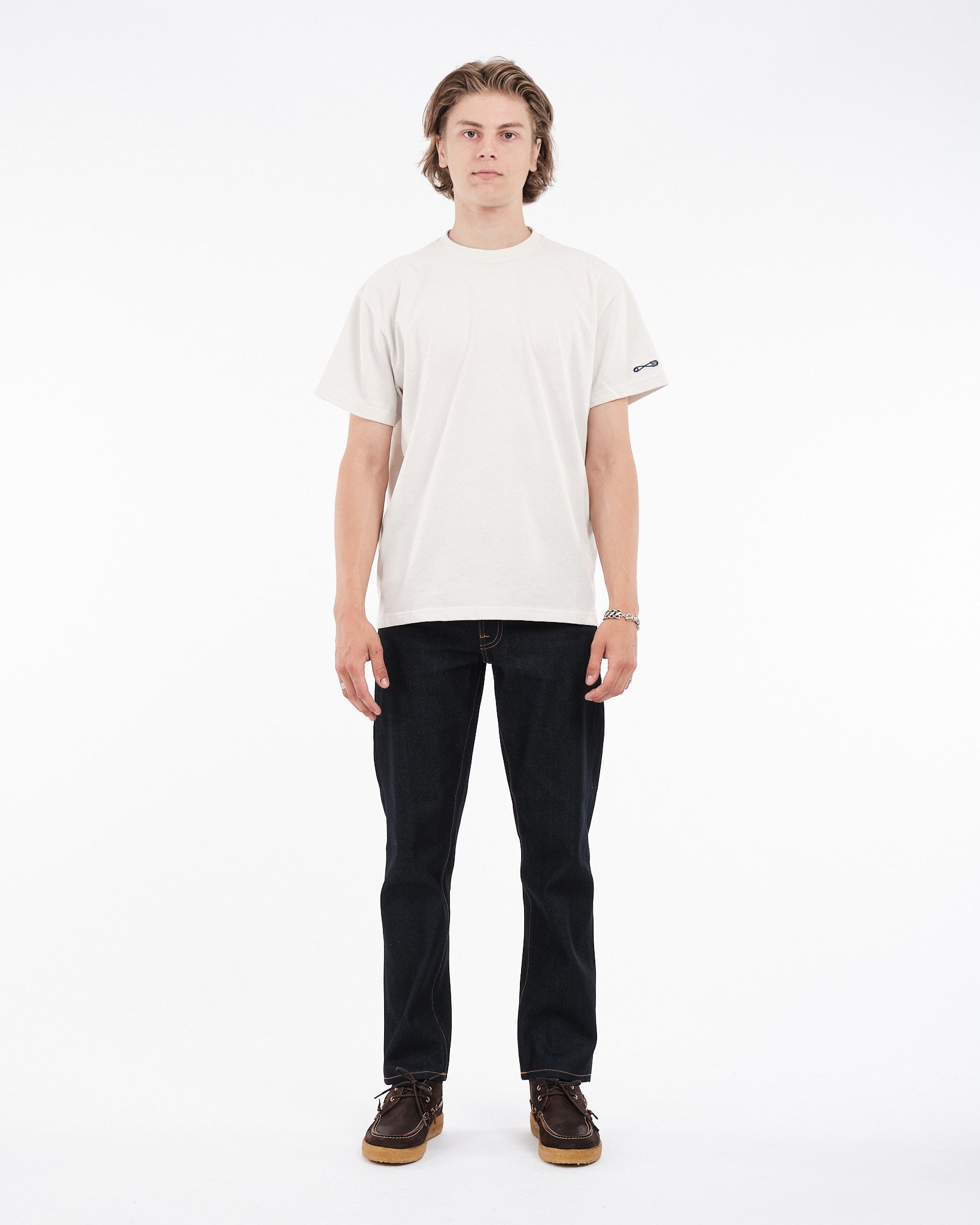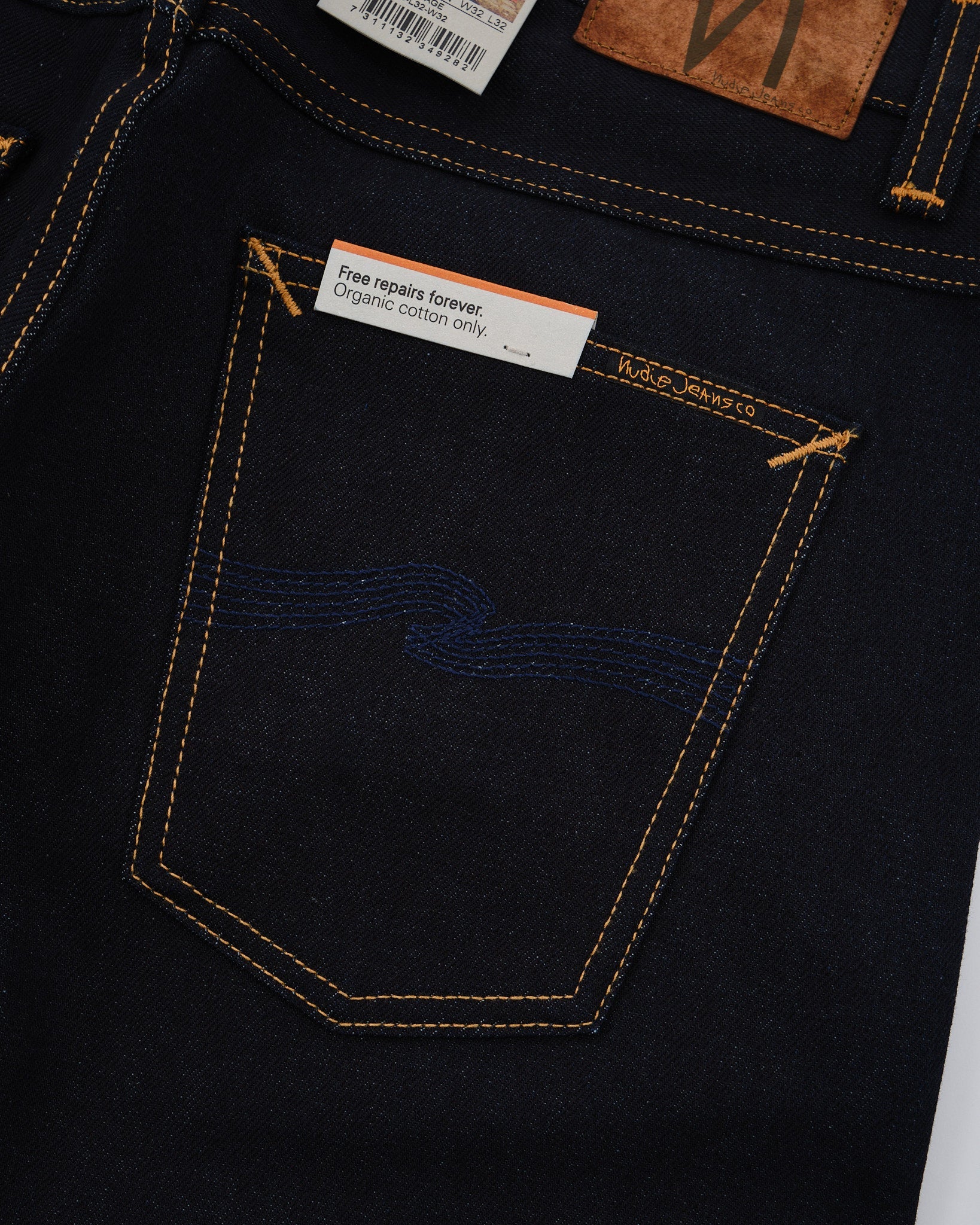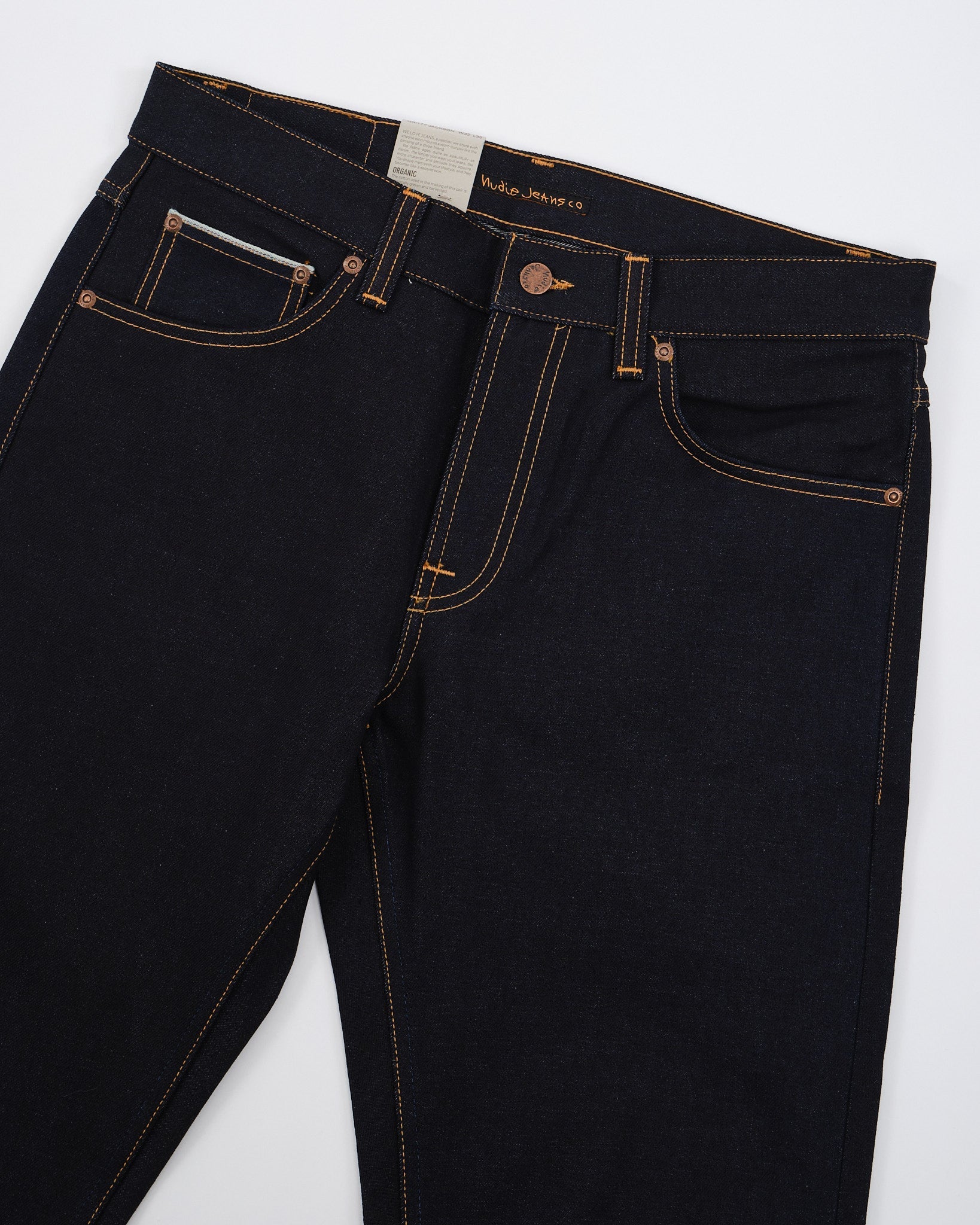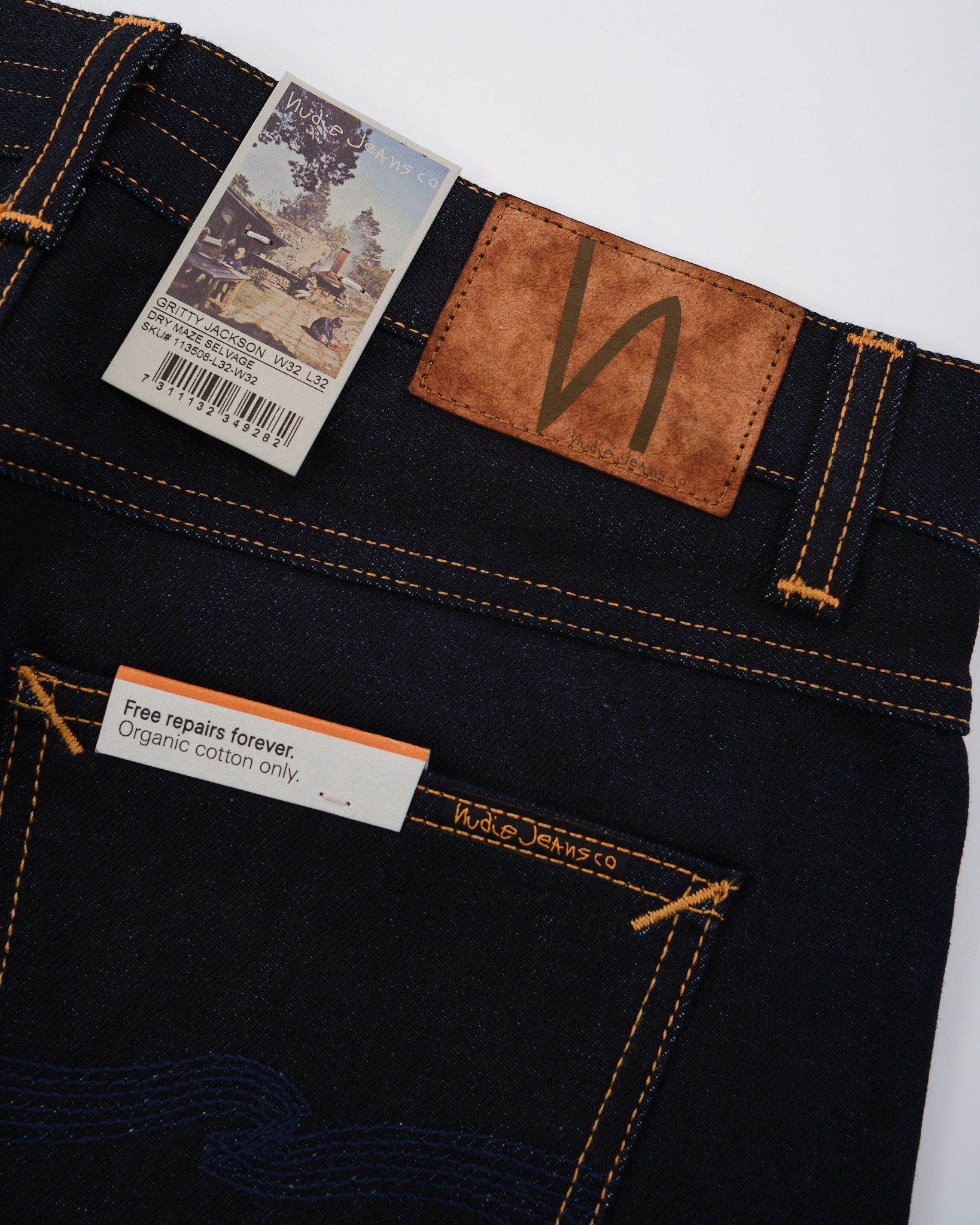Améliorez votre collection de denim avec le Nudie Jeans Grande-Jackson dans le lien sec. Fabriqué à partir de coton 100%, ce denim rigide turc de 14,25 oz est doté d'une riche teinte indigo sombre avec une texture lisse et un motif diagonal cohérent. La silhouette de montée moyenne et de jambe droite offre un style durable et une facilité. Les caractéristiques notables incluent les coutures de poche de la Marine, le fil de bronzage sur toutes les autres coutures, les accents en laiton, une fermeture à glissière et une étiquette Jacron. Avec l'usure, le denim acquiert une profondeur à mesure que la surface s'estompe tout en conservant ses nuances plus sombres. Embrassez une apparence vécue, à chaque utilisation.