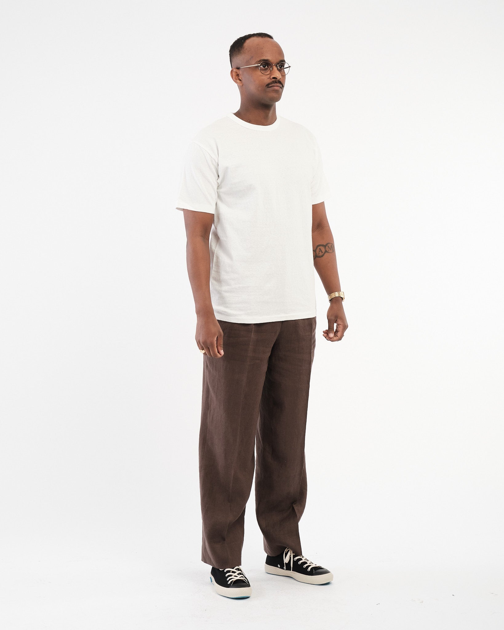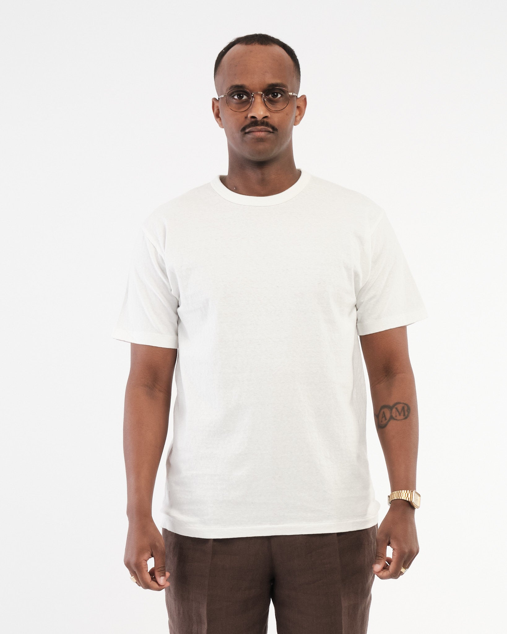 Présentation du T-shirt à manches courtes Haleiwa en blanc cassé de Sunray Sportswear, un clin d'œil aux styles classiques des années 50. Ce t-shirt fabriqué au Japon présente une coupe décontractée et régulière, un col traditionnel, un design côtelé et des tissus. Réalisé sur des machines à tricoter circulaires antiques, nos t-shirts offrent une construction unique sans couture latérale. Chaque t-shirt est un travail d'amour, nécessitant plus de 1,5 heure de fabrication minutieuse, garantissant un vêtement qui maintient sa forme et son confort. Découvrez le mélange de style intemporel, de qualité résiliente et d'attrait traditionnel de Sunray Sportswear.