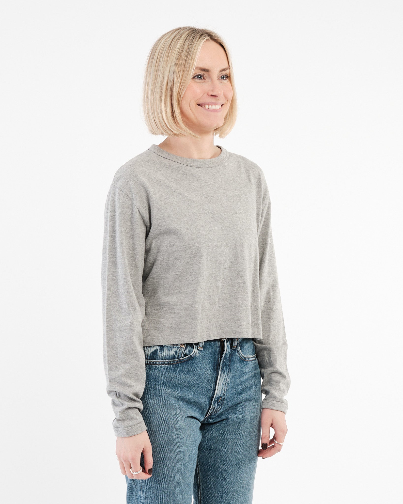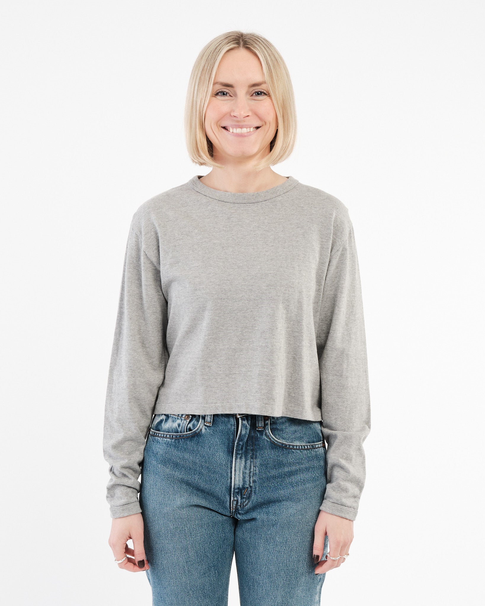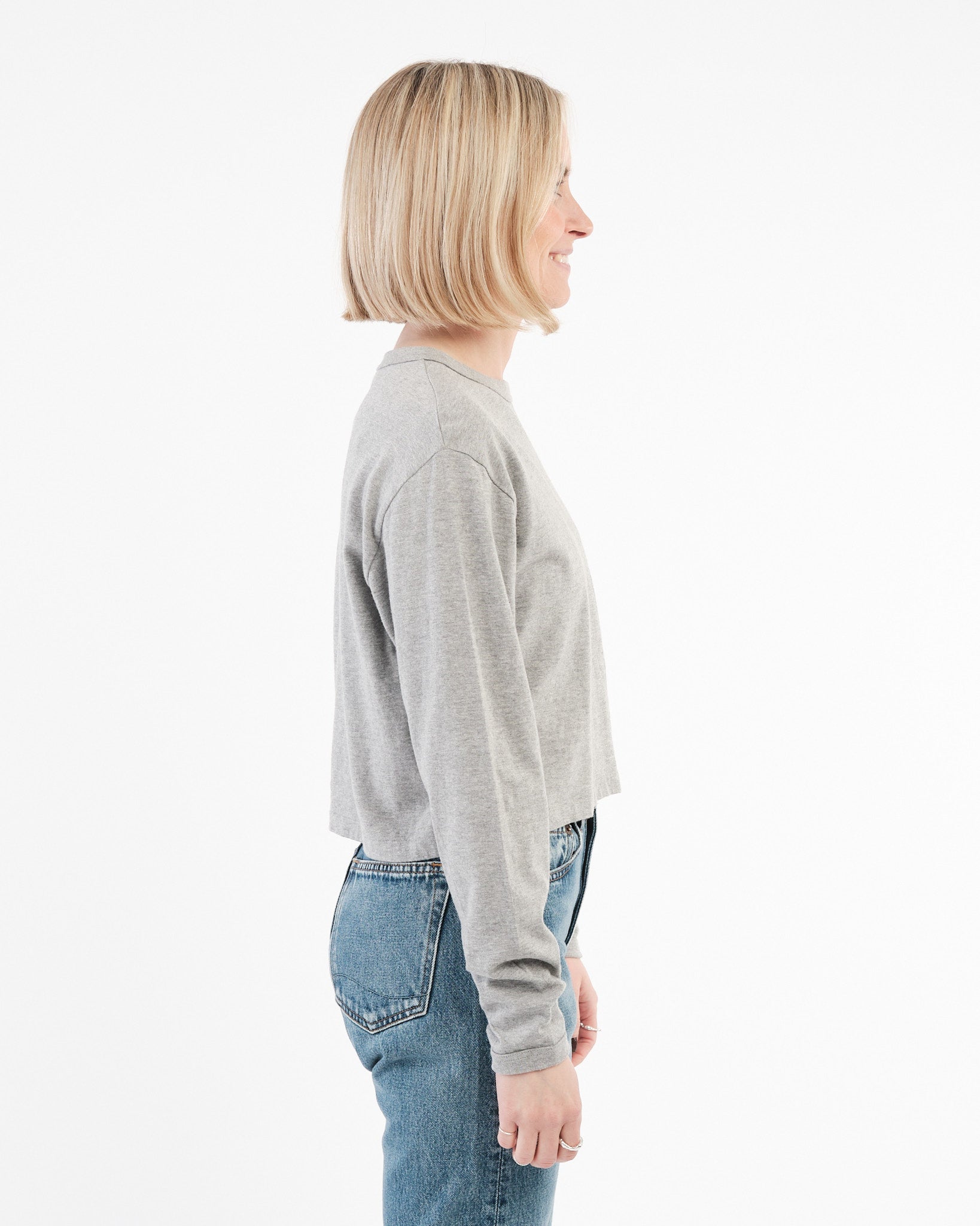 Hi'aka ls T-shirt au large de Hambledon Gray de Sunray Spirit. Les t-shirts Sunray ont un ajustement traditionnel inspiré de la sensation des années 50. Longueur détendue et recadrée avec un ajustement régulier. Le collier, la conception des côtes et les tissus sont également traditionnels. 260 g. Fait au Japon. Le Hi'aka LS est une version à manches longues du t-shirt classique, nouveau pour l'automne / hiver 2022.