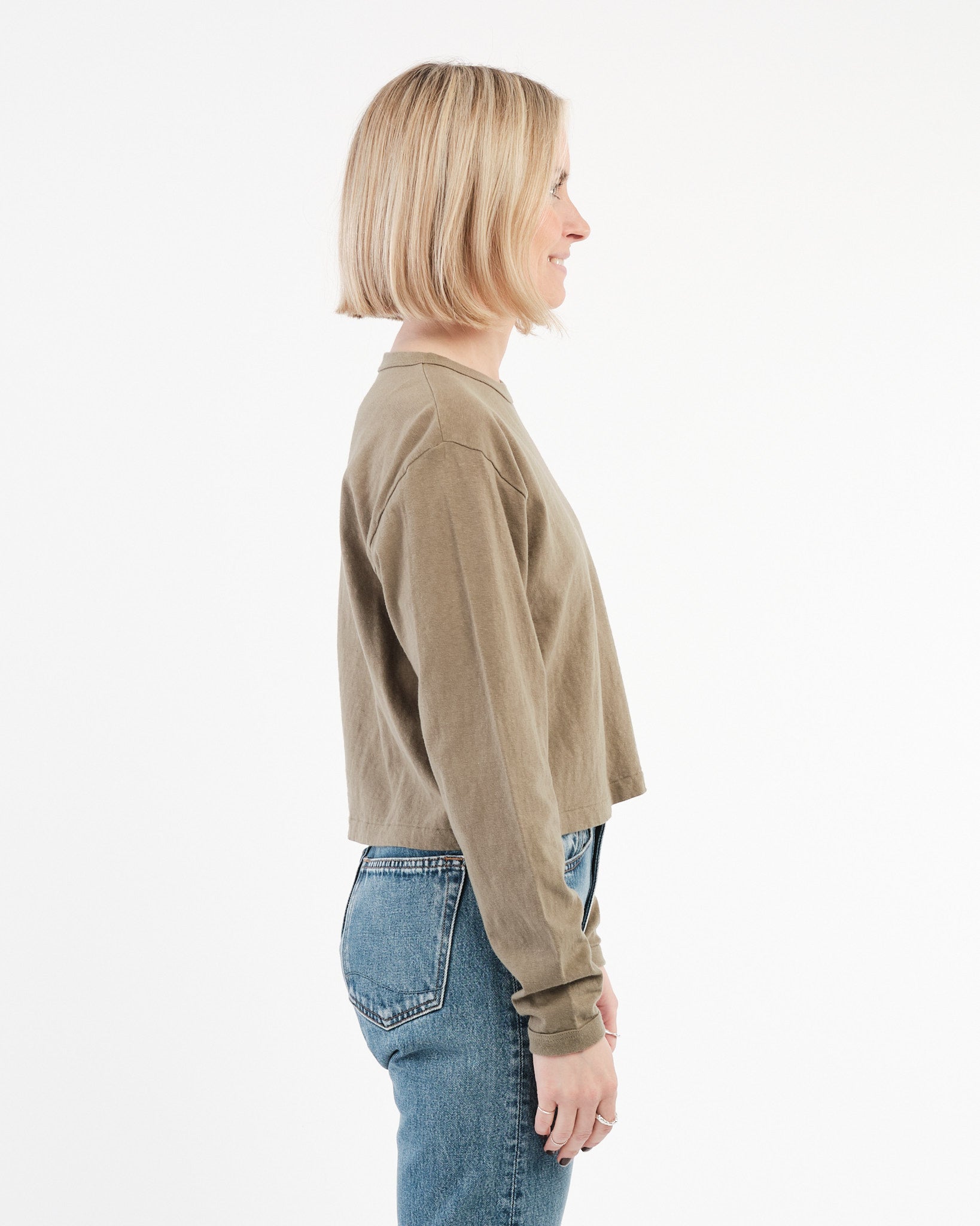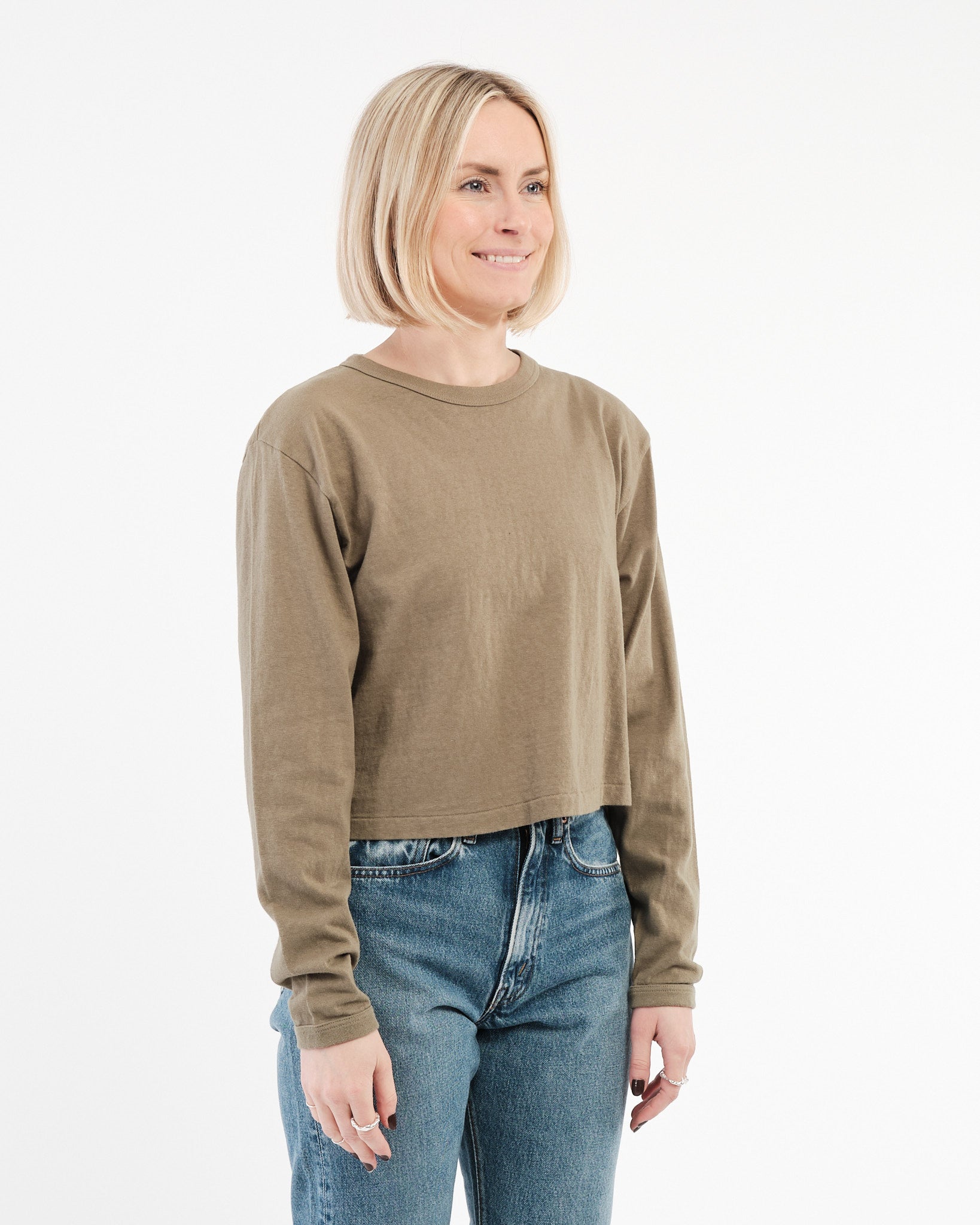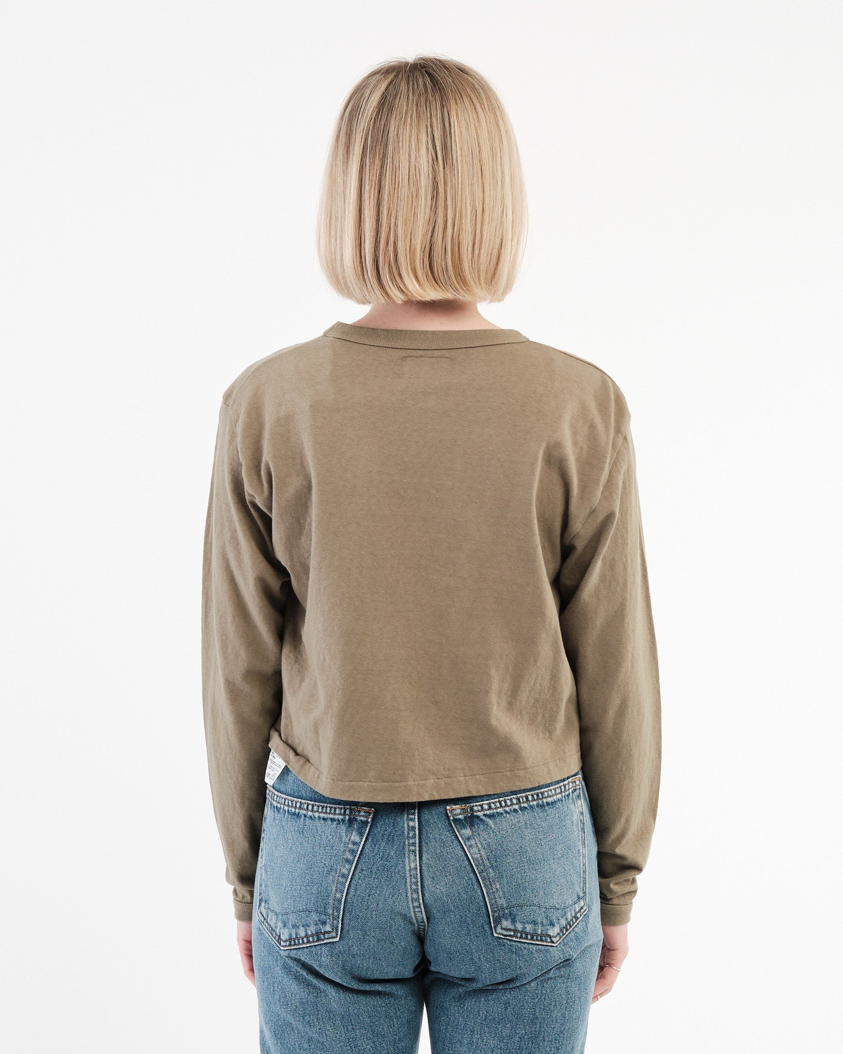 Hi'aka ls T-shirt Off de la lichen profond vert de Sunray Spirit. Les t-shirts Sunray ont un ajustement traditionnel inspiré de la sensation des années 50. Longueur détendue et recadrée avec un ajustement régulier. Le collier, la conception des côtes et les tissus sont également traditionnels. 260 g. Fait au Japon. Le Hi'aka LS est une version à manches longues du t-shirt classique, nouveau pour l'automne / hiver 2022.