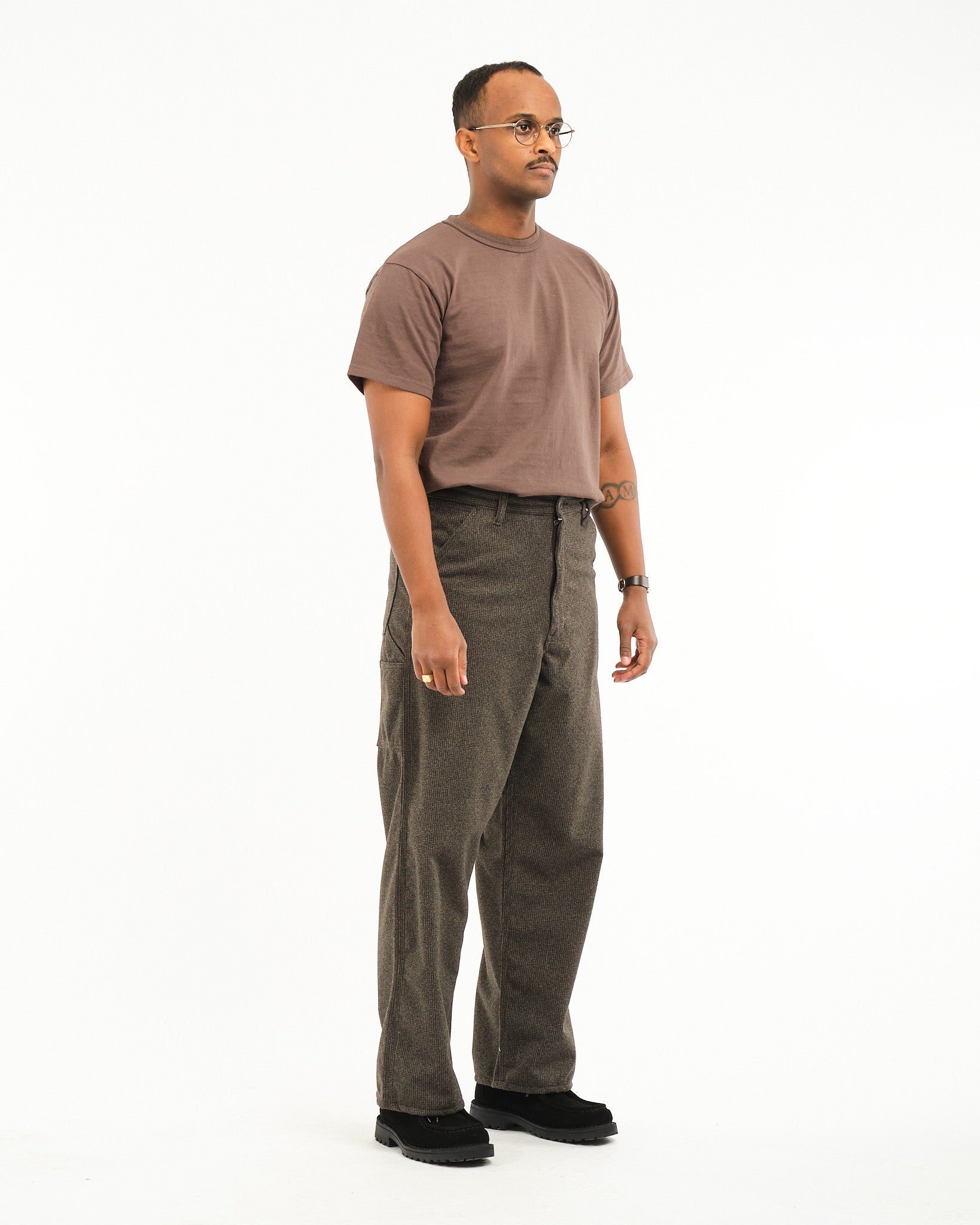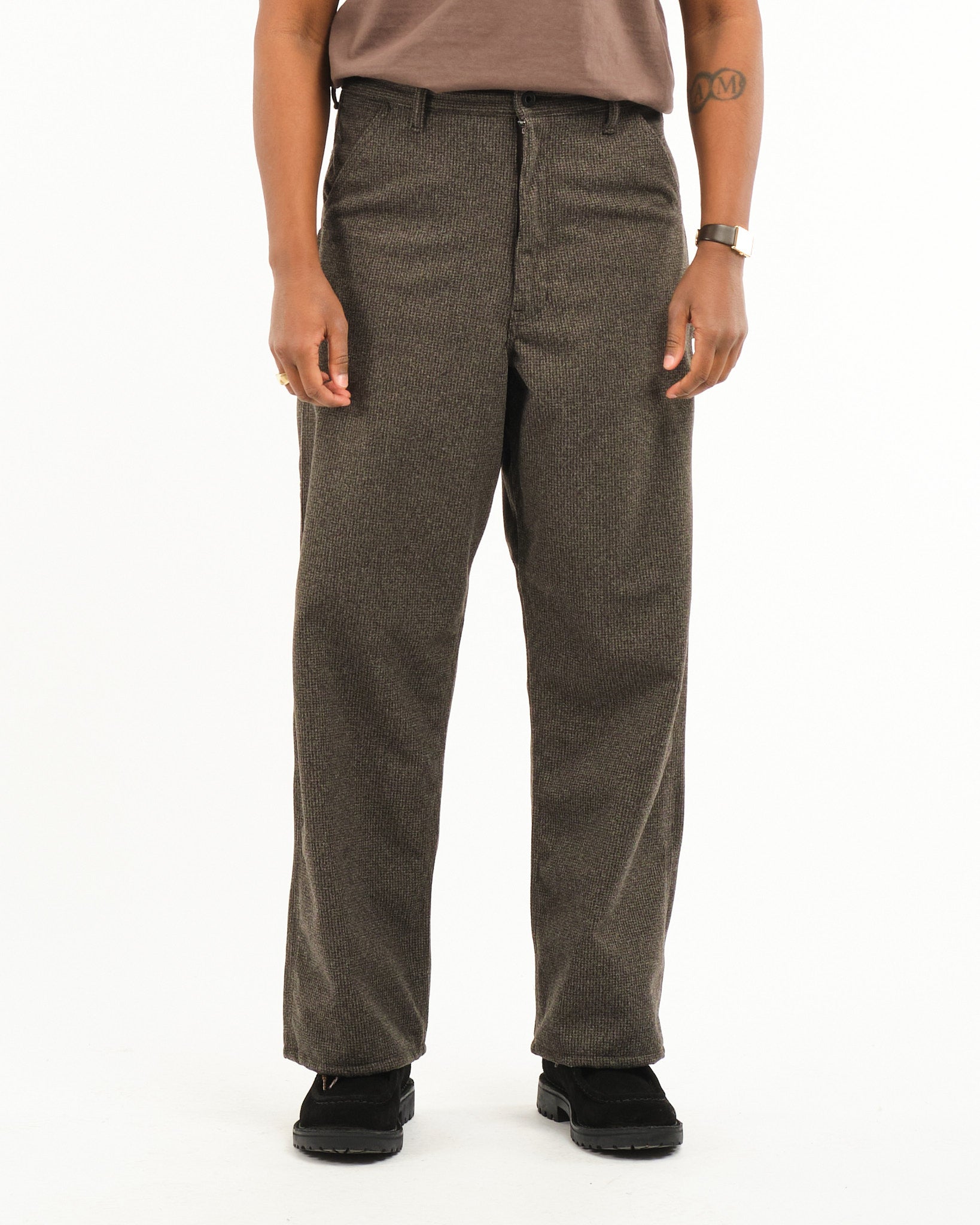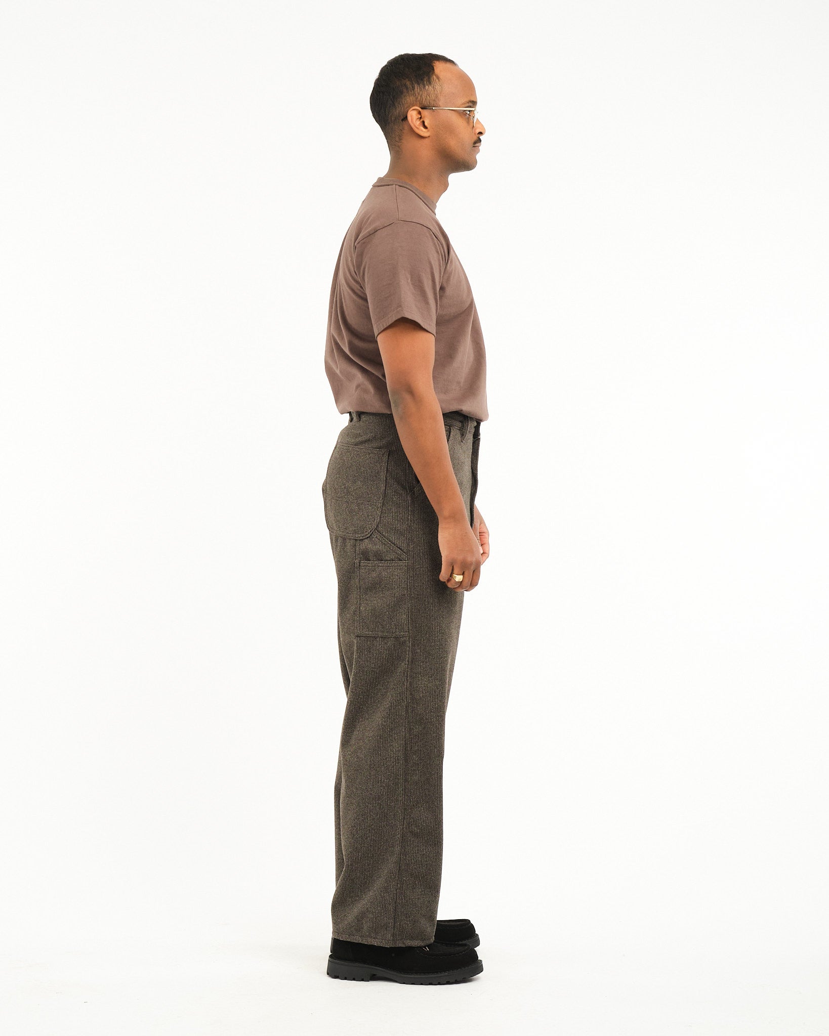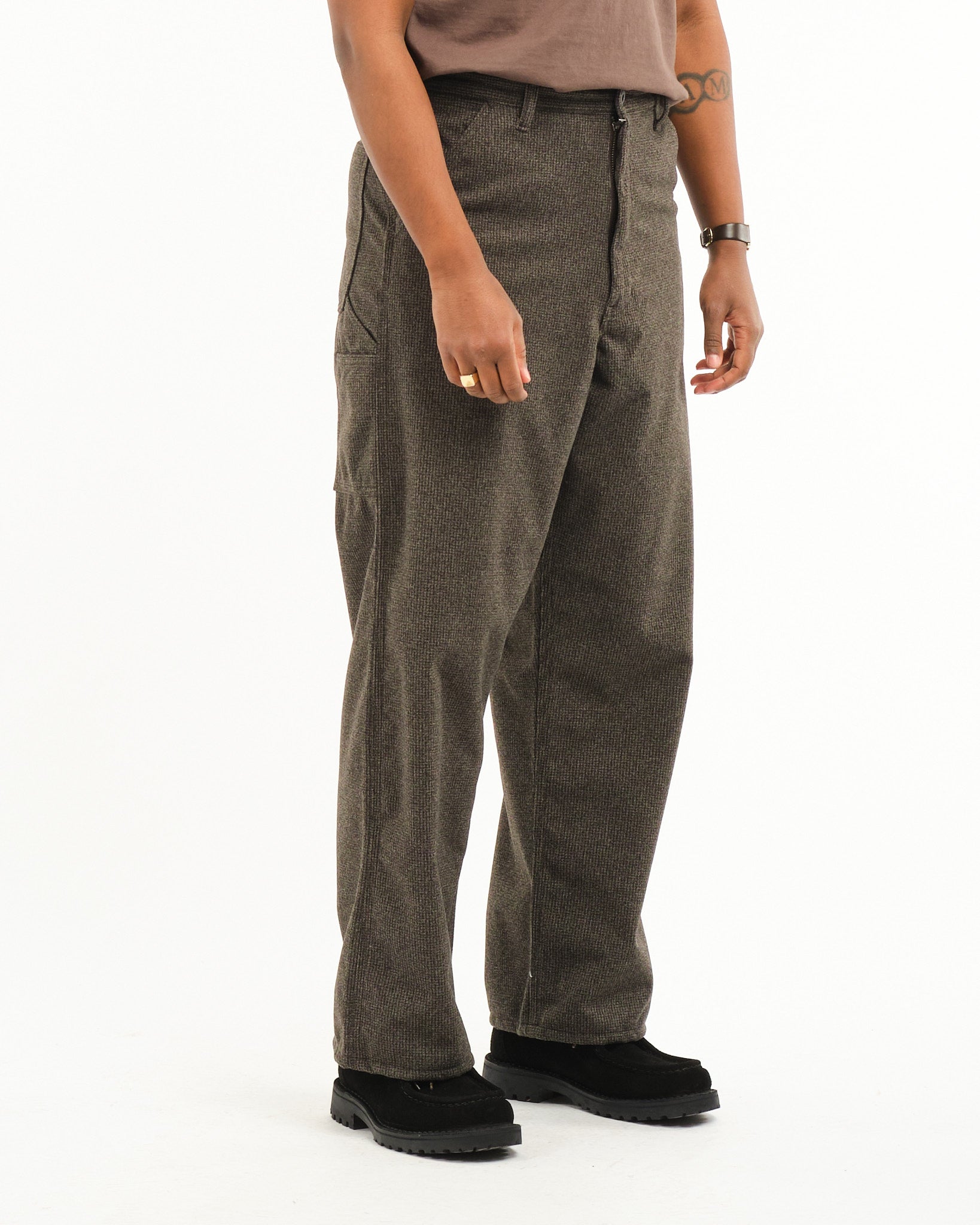 Houndstooth Dad's Fit Painter Pants Brown