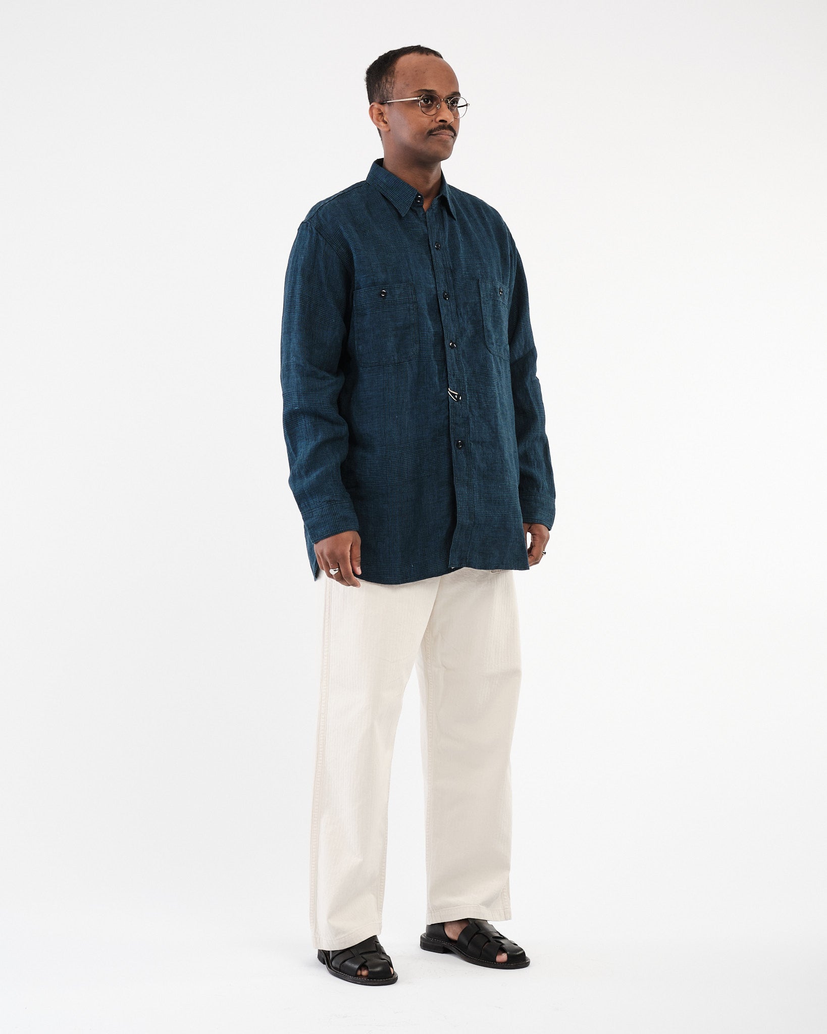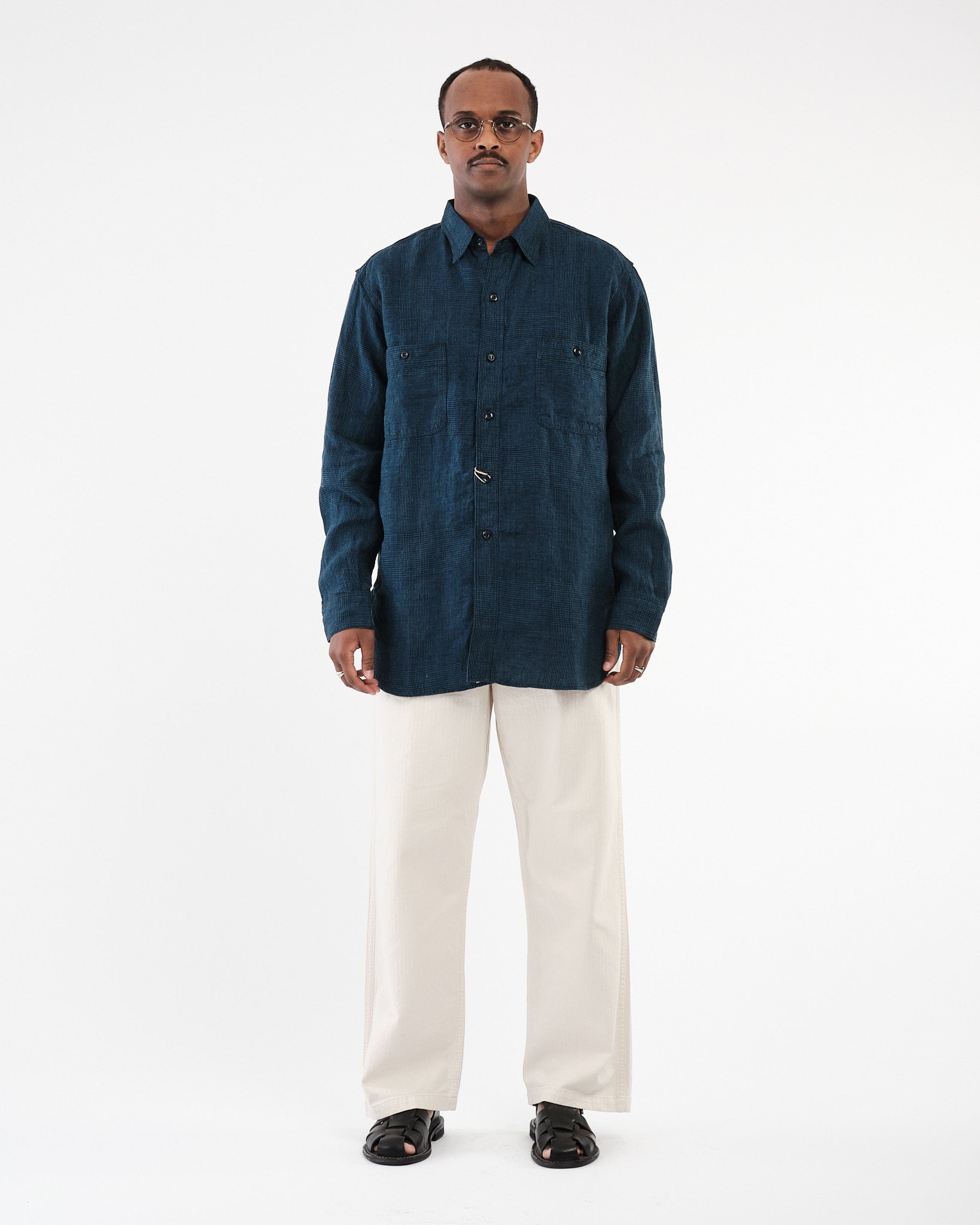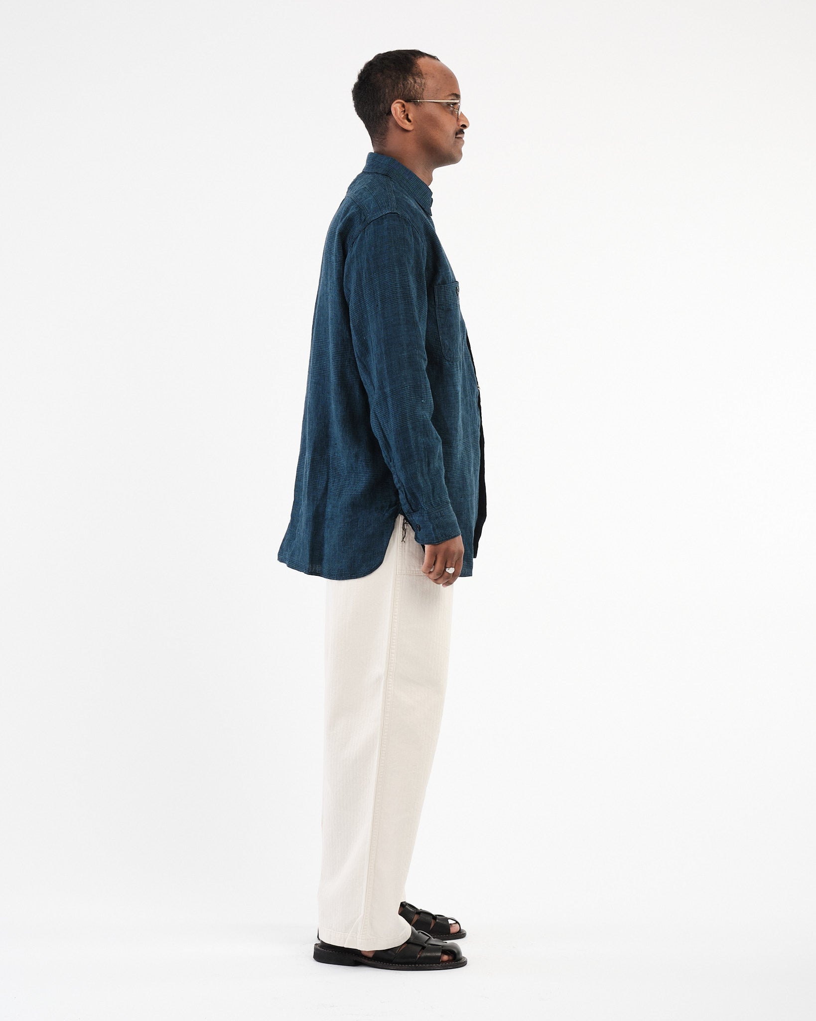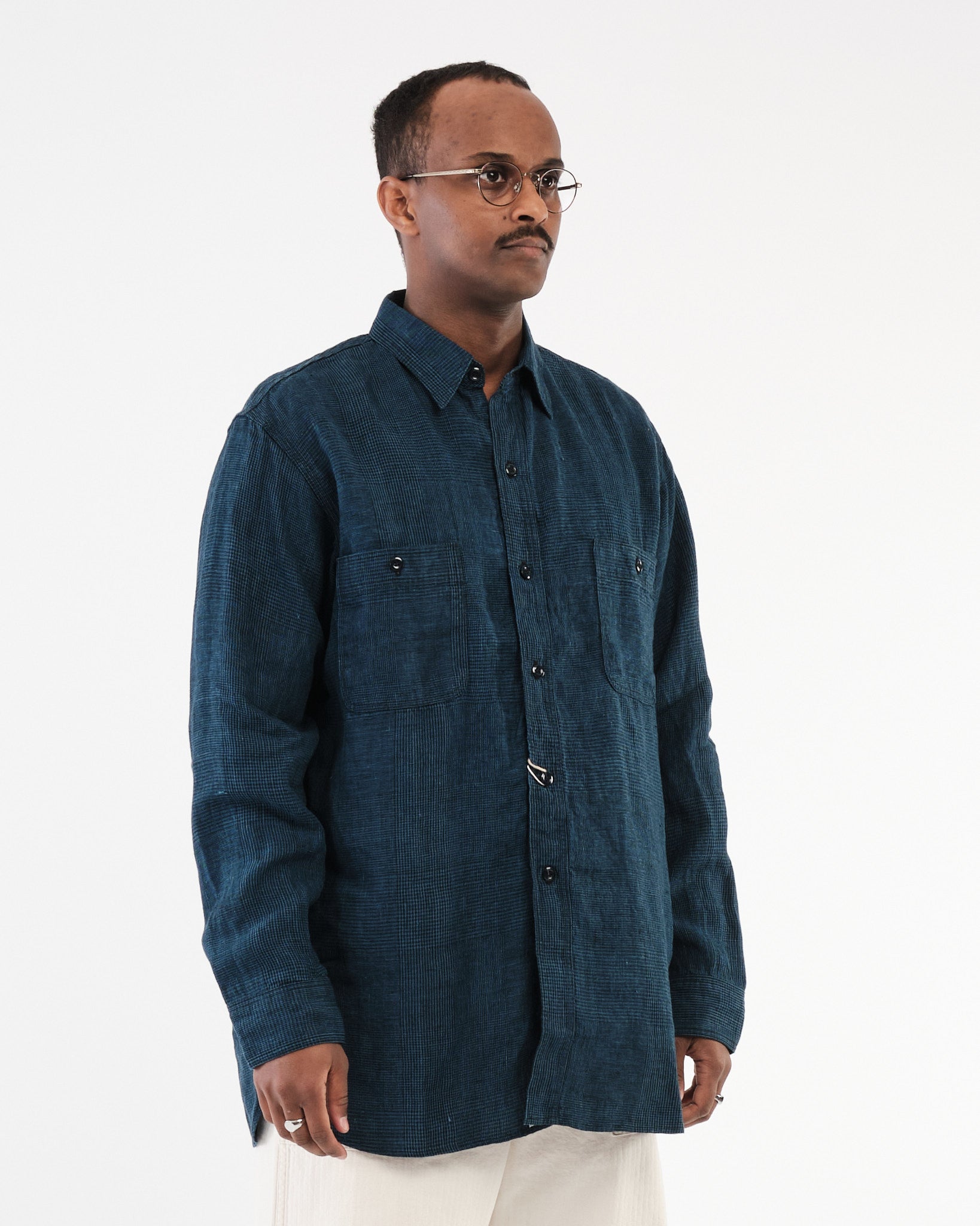 Le chemise de travail en lin orslow indigo dans Chèque indigo Mélange l'esthétique traditionnelle des vêtements de travail avec le confort moderne. Fait à partir d'un mélange de coton en lin premium, cette chemise offre respirabilité, durabilité et polyvalence toute l'année.