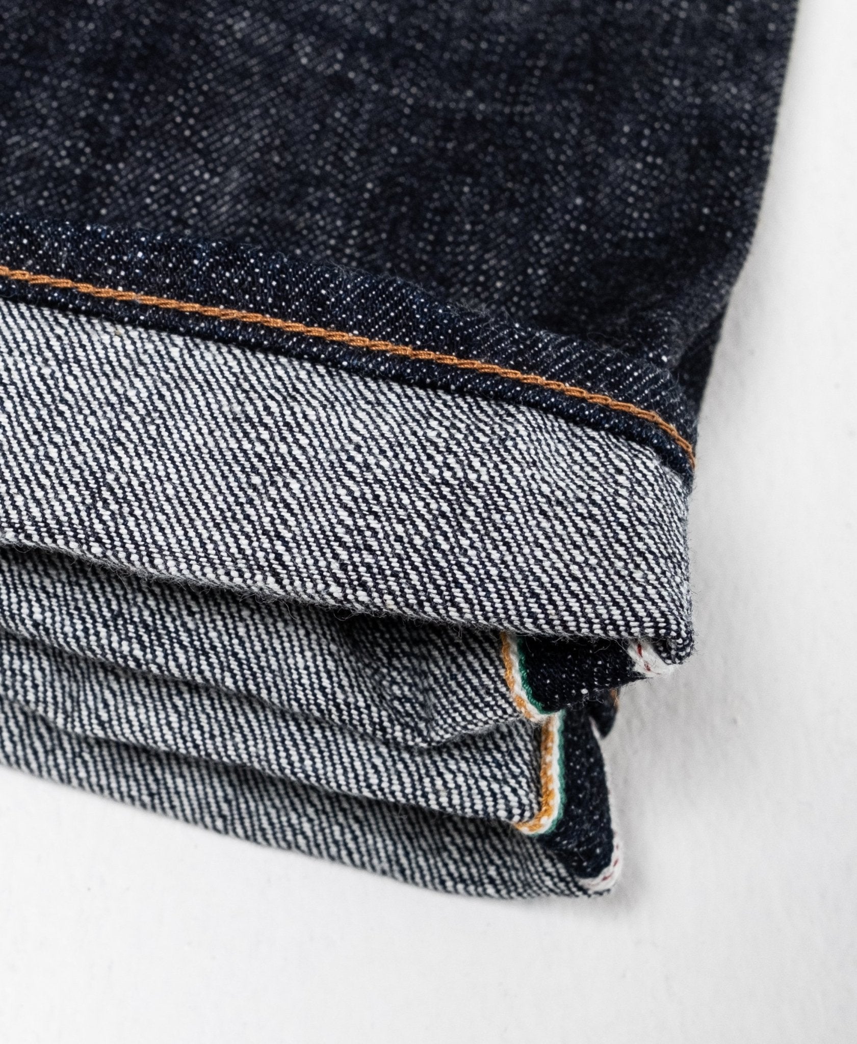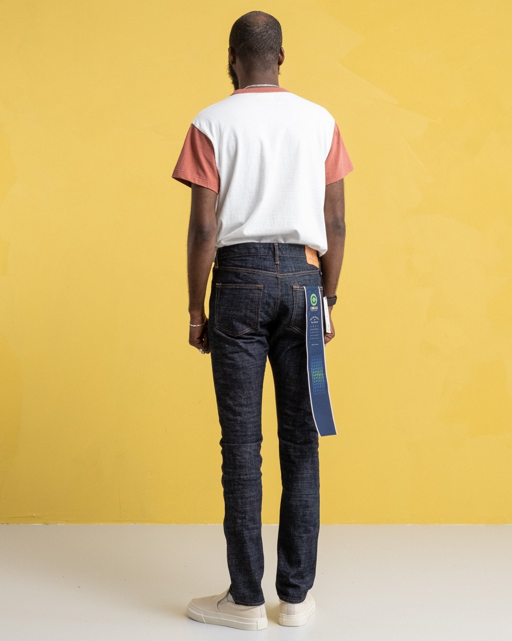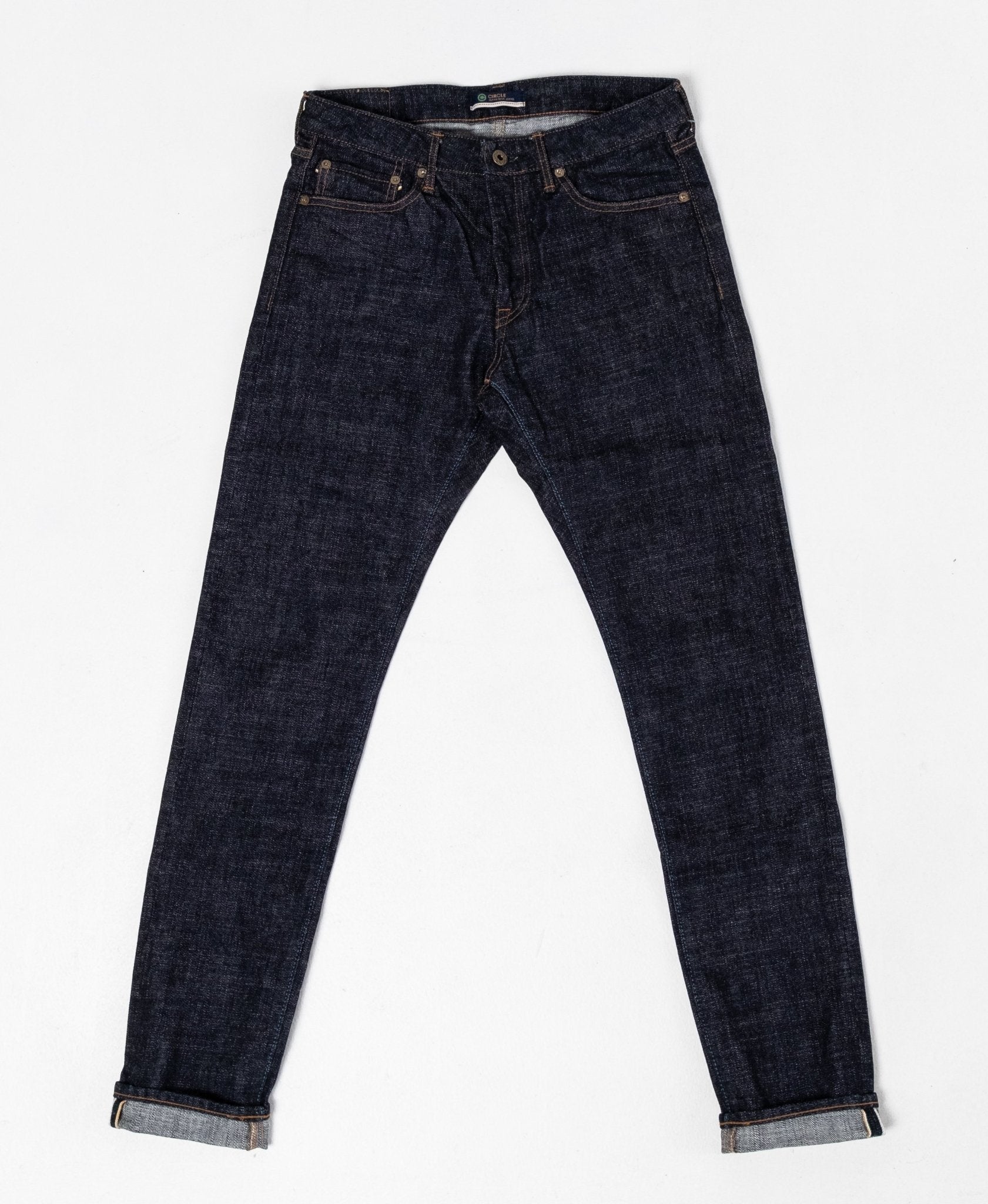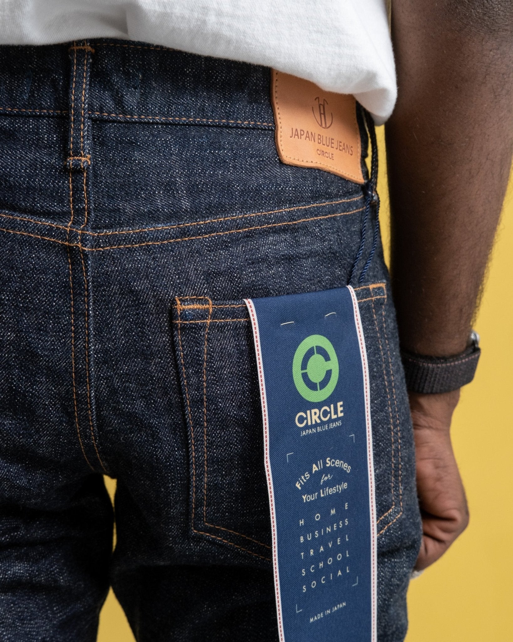 J266 Circle 16,5 Jeans effilés oz du Japon Blue Jeans. Une silhouette effilée moderne avec une silhouette maigre des genoux aux ourlets. Le denim de selvage vintage de l'once lourd est fait d'un coton naturel à partir de Côte d'Ivoire. En la coudant avec une touche faible dans une machine, le produit terminé finit comme un denim fait à la main. Le matériau est un peu rude au début, mais il sera progressivement plus fluide en le portant pendant un certain temps. Fait au Japon.