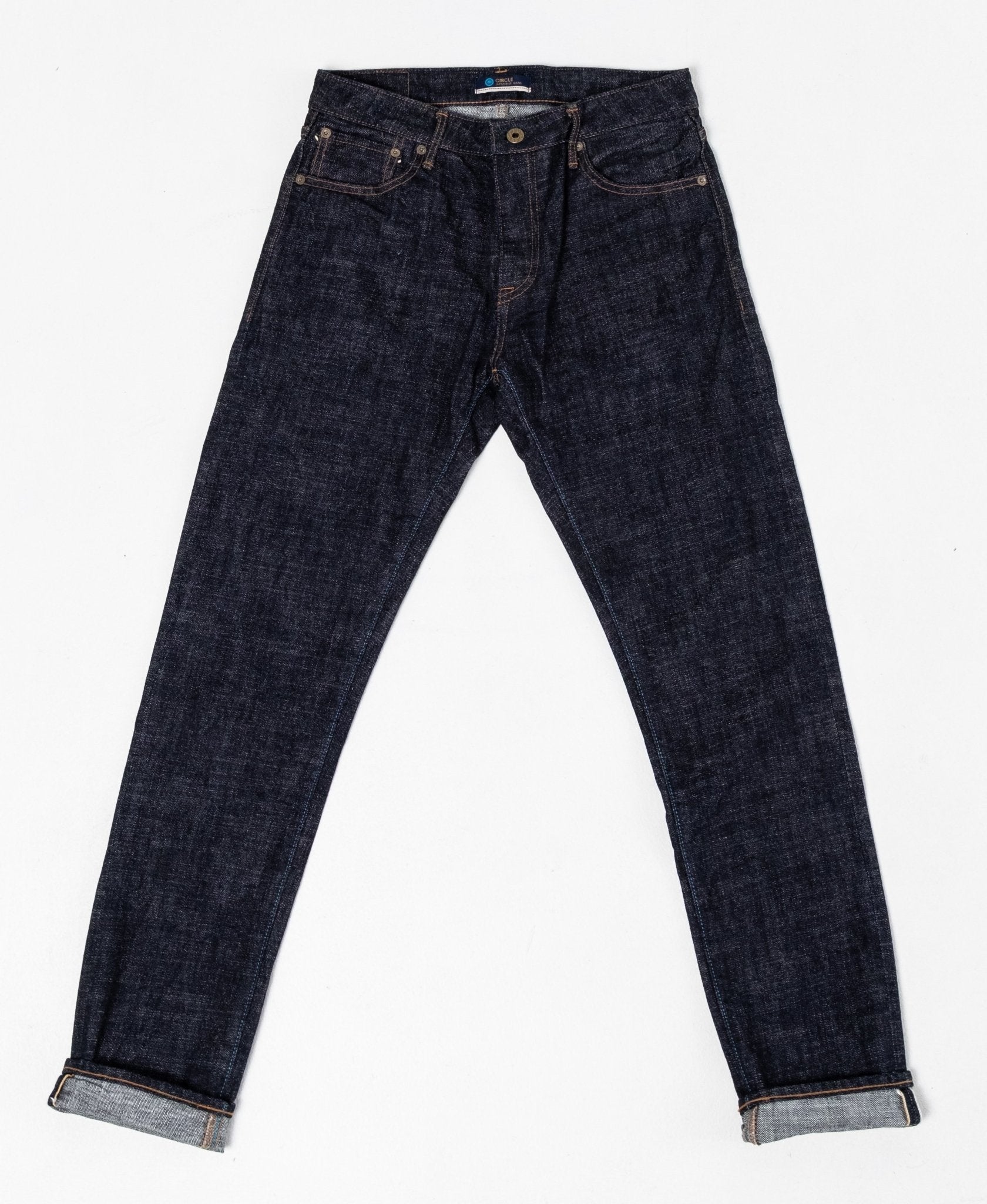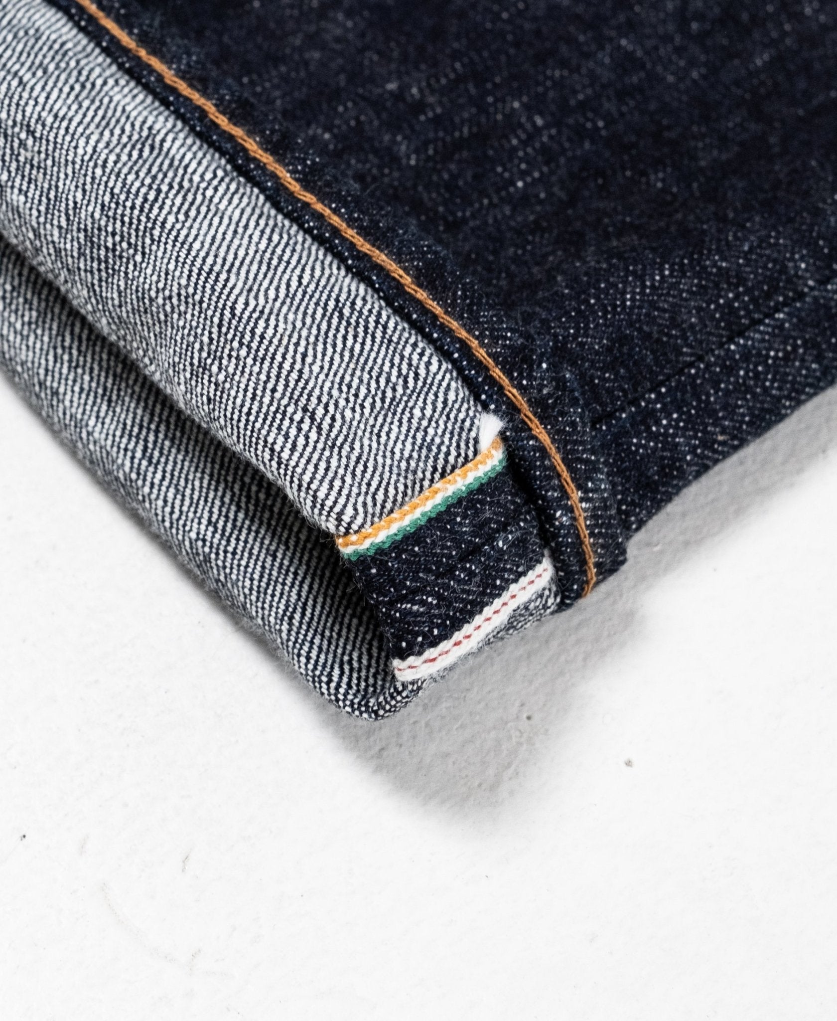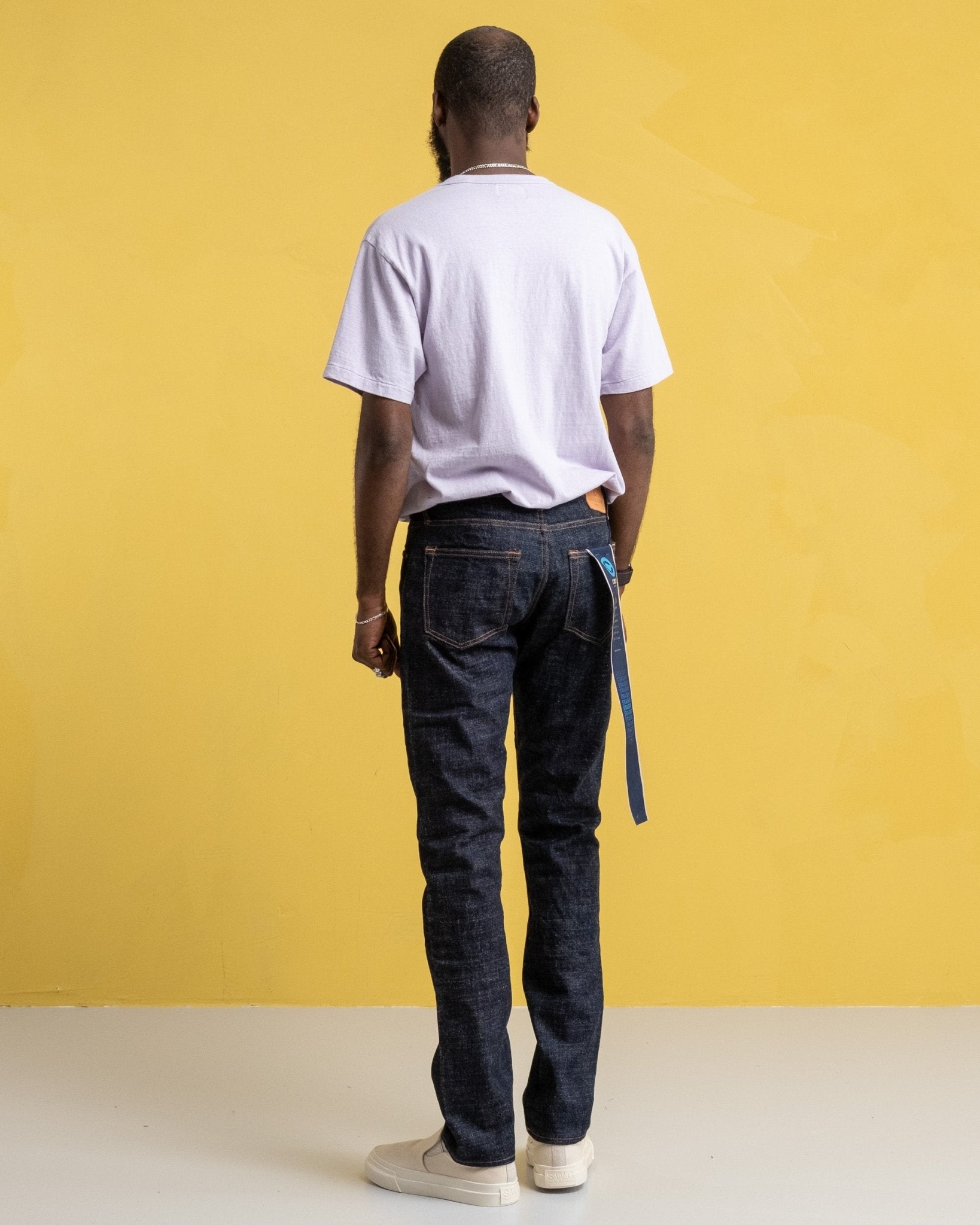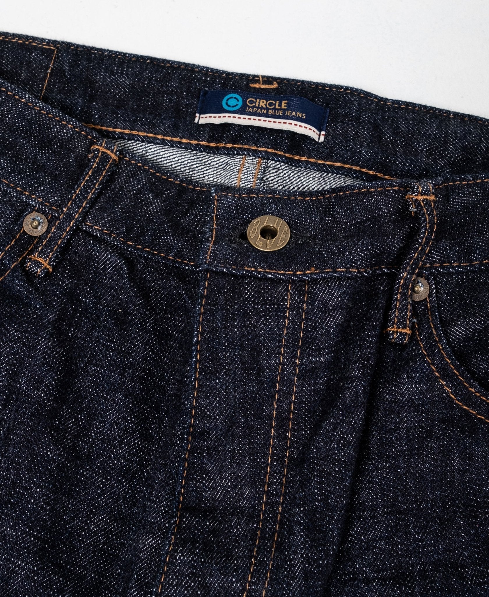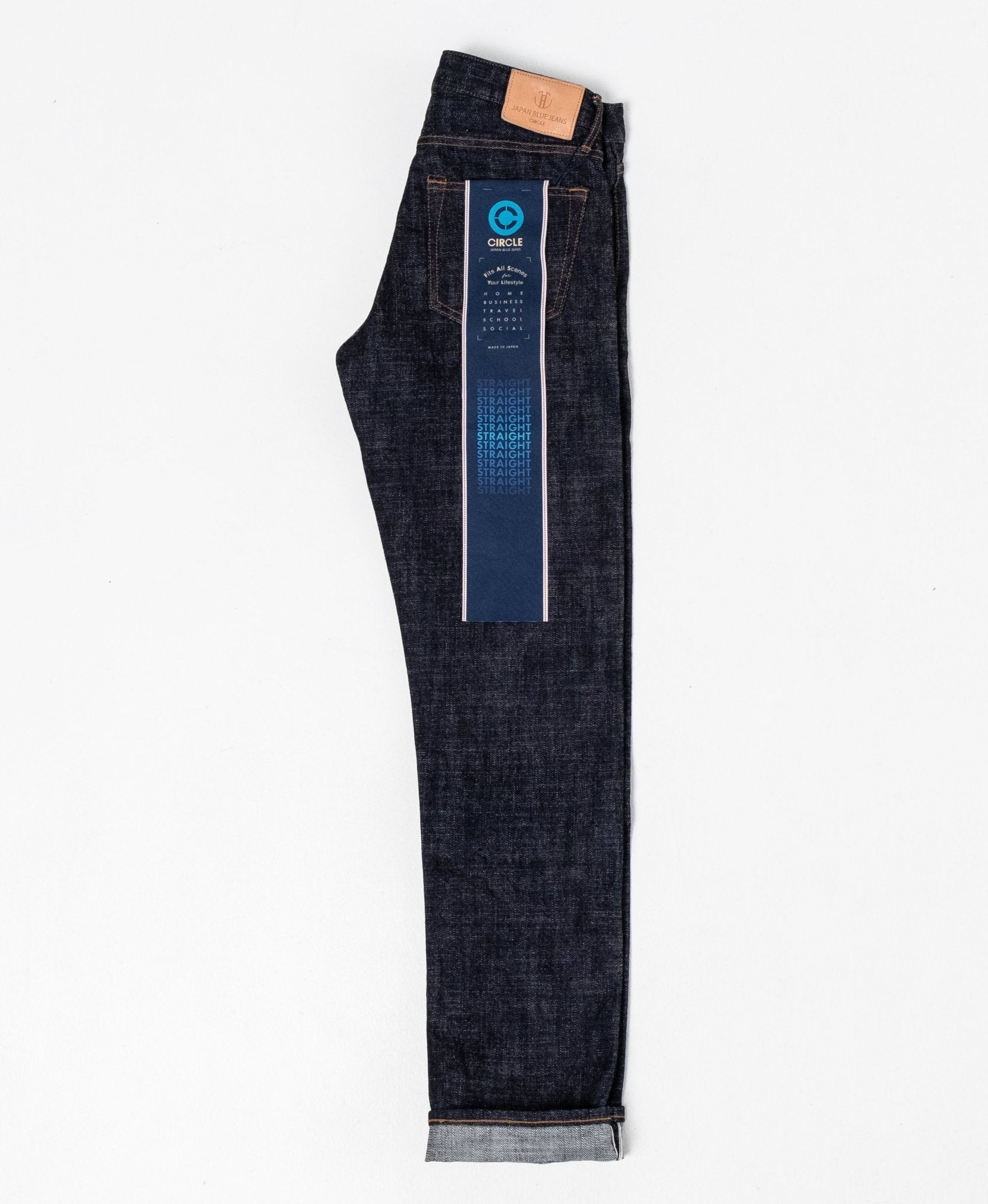J366 Circle 16,5 oz Jeans droits du Japon Blue Jeans. Il atterrit quelque part entre mince et détendu. Il a un peu d'espace autour des cuisses et un beau cône du genou vers le bas. Le denim de selvage vintage de l'once lourd est fait d'un coton naturel à partir de Côte d'Ivoire. En la coudant avec une touche faible dans une machine, le produit terminé finit comme un denim fait à la main. Le matériau est un peu rude au début, mais il sera progressivement plus fluide en le portant pendant un certain temps. Fait au Japon.