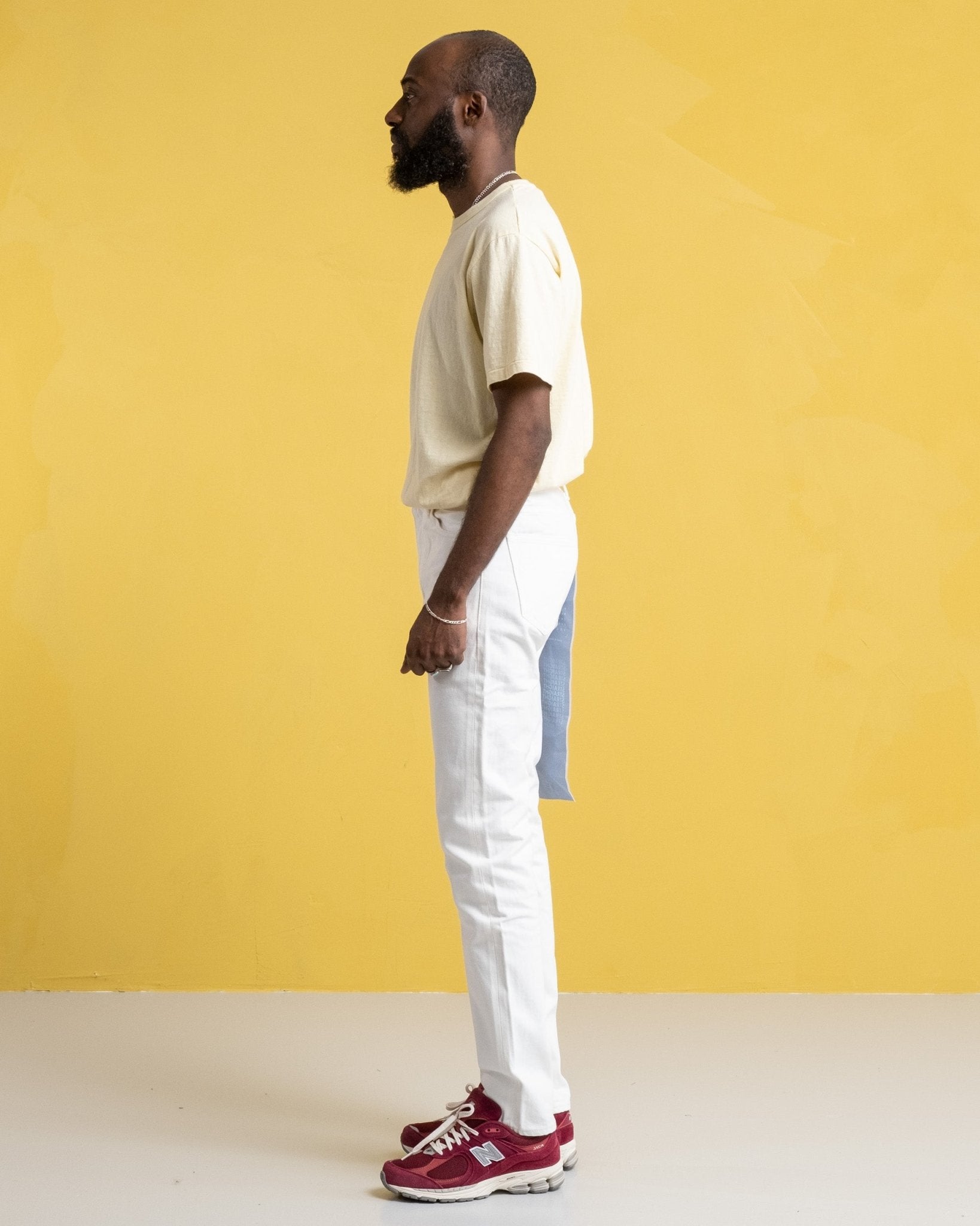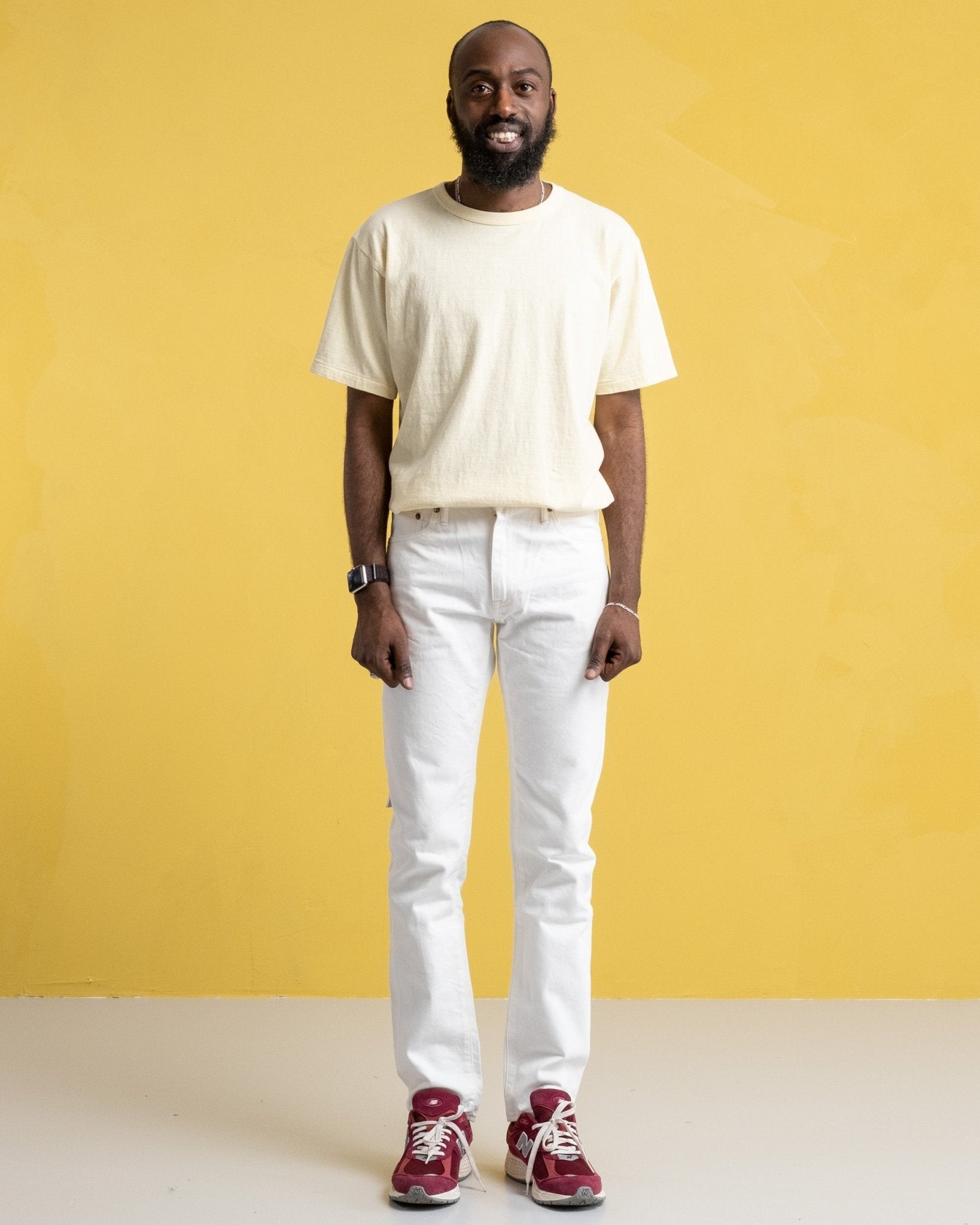 Ludjero mesure 179 cm de haut, mince et porte une taille 29/32.