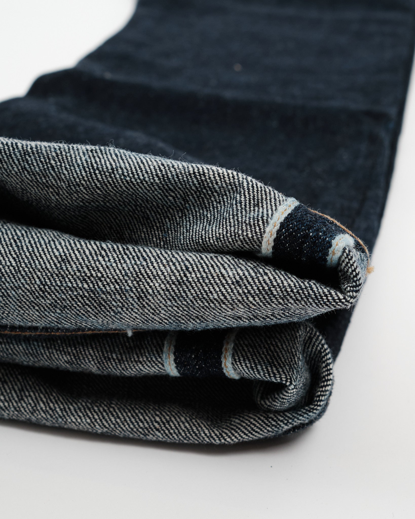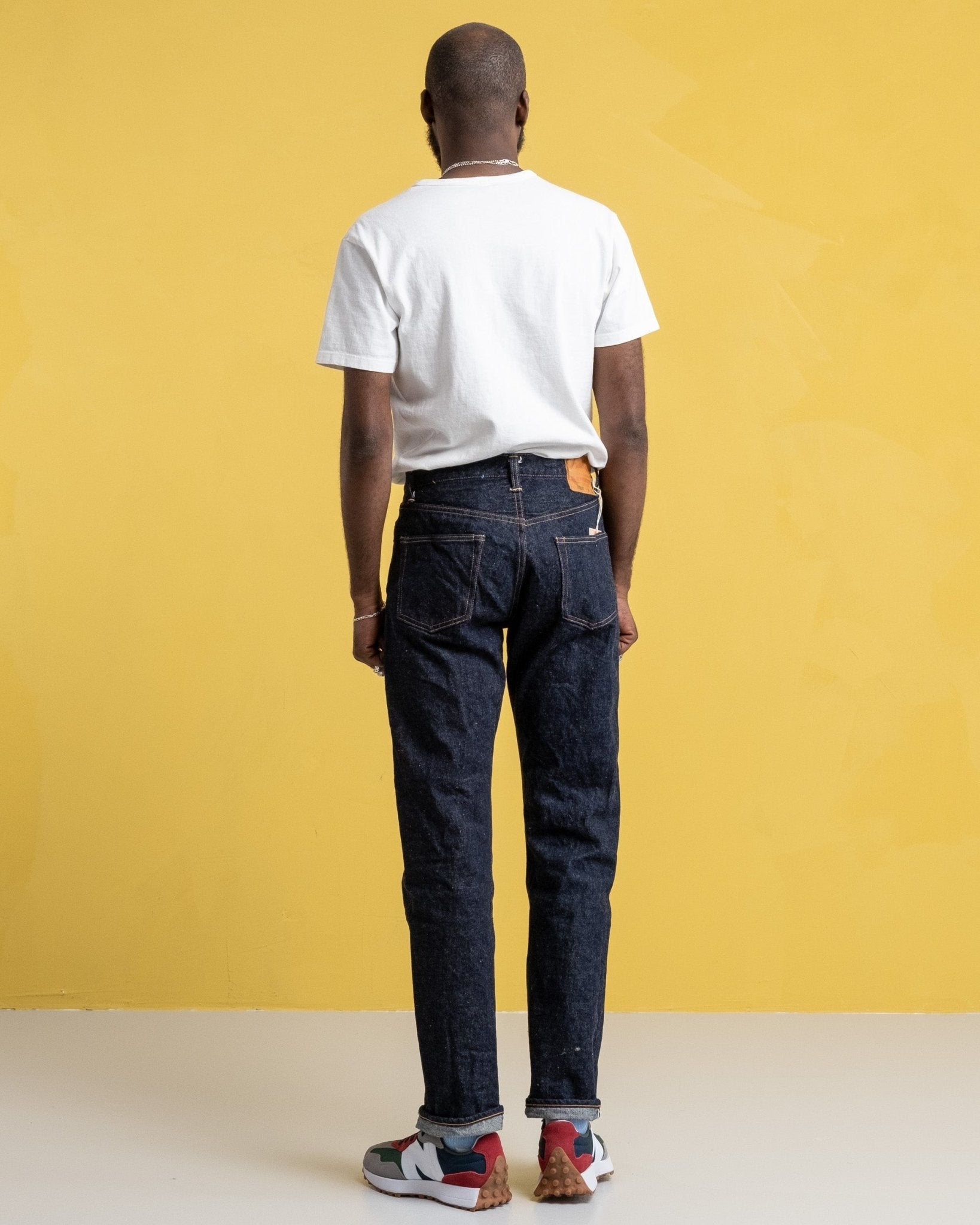 Esthétique Authentique : La ligne de selvedge jaune est un cachet d'authenticité de Warehouse, tandis que la couleur indigo profond promet des délavages frappants au fil du temps.