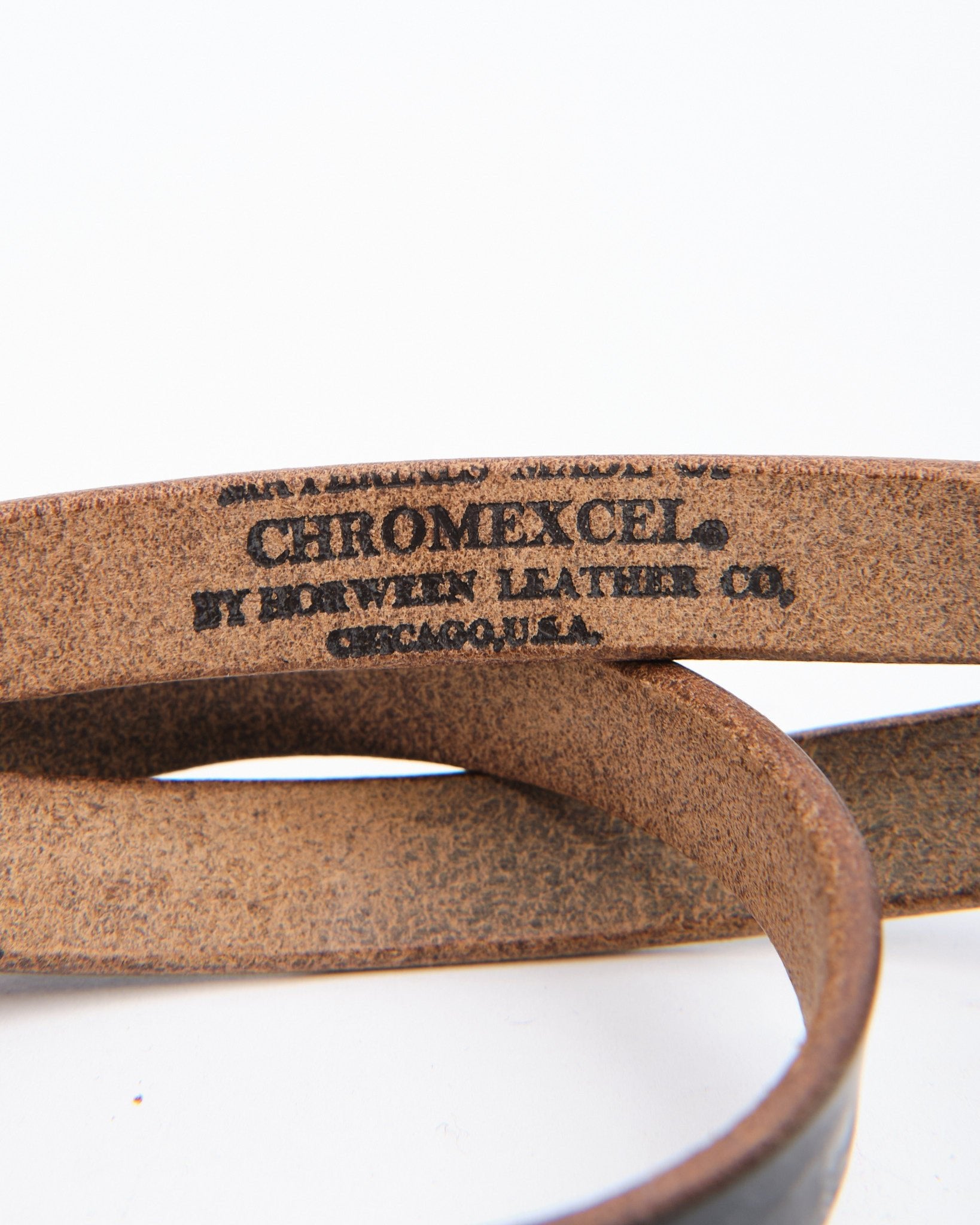 Designed to accompany JELADO’s Hoghead Wabash Trousers but versatile enough for denim or chinos, this collaborative belt with Button Works is packed with classical workwear details. At its core is Horween Chromexcel® leather, famous for its rich oils, brown-core aging, and deep patina that develops over years of use.