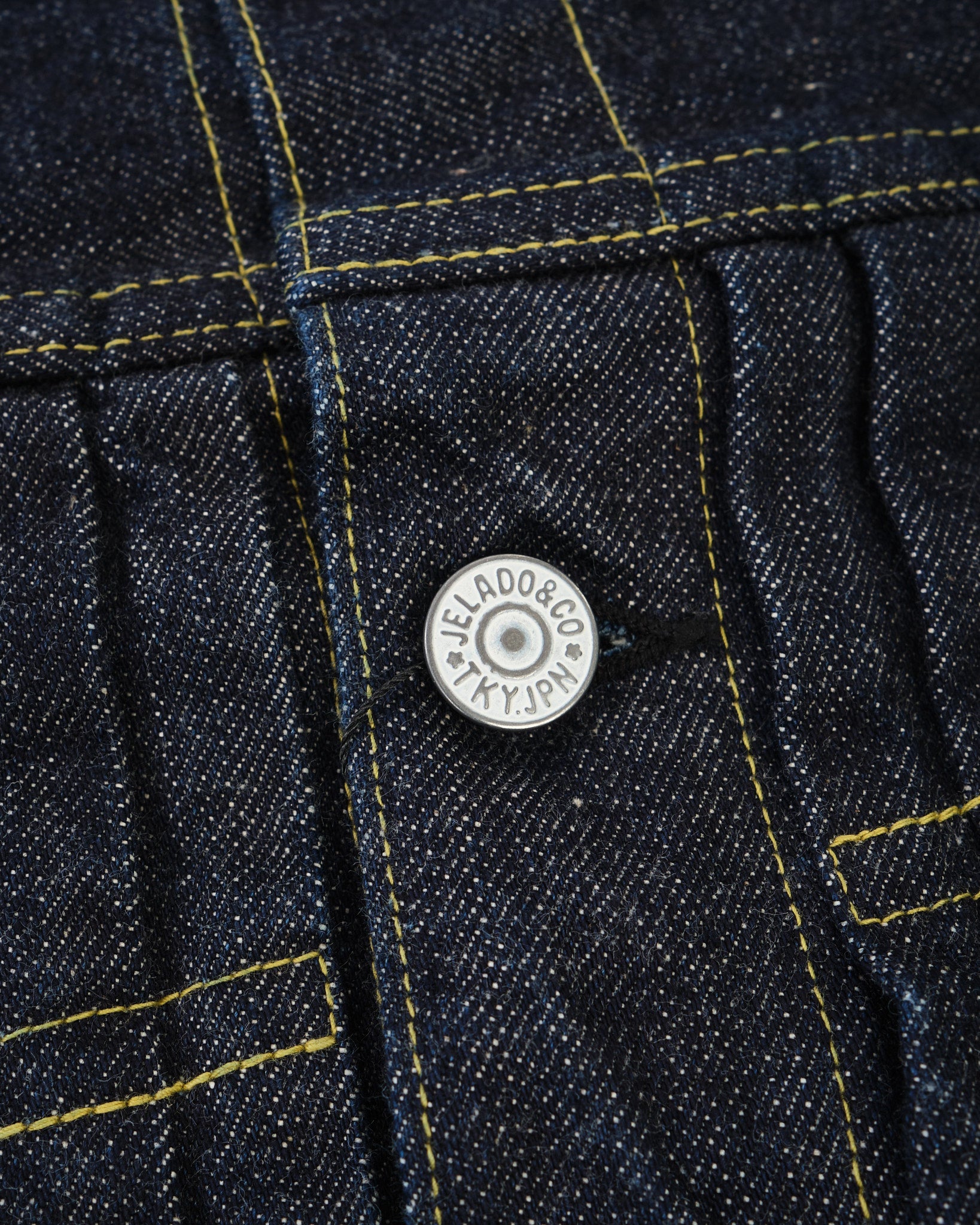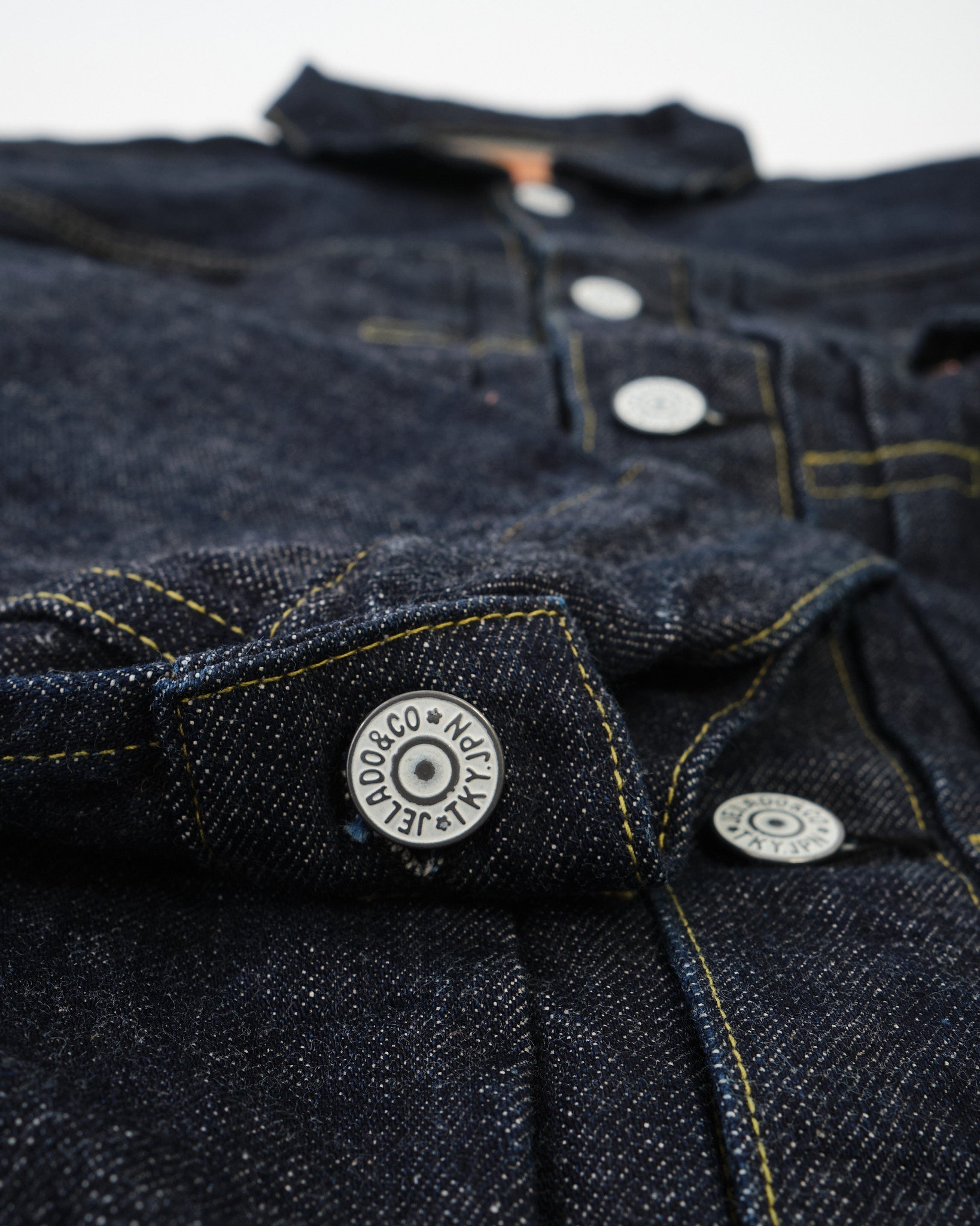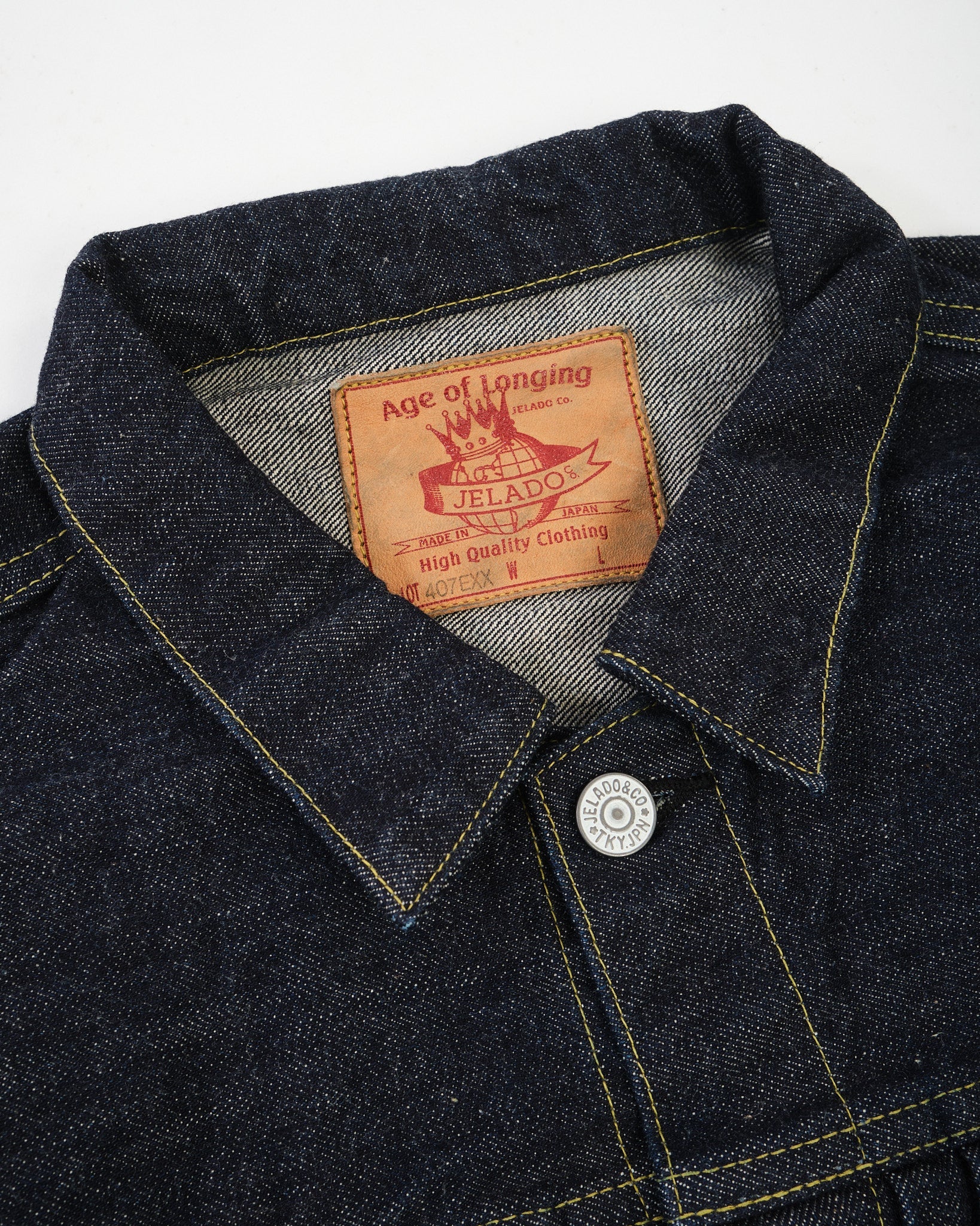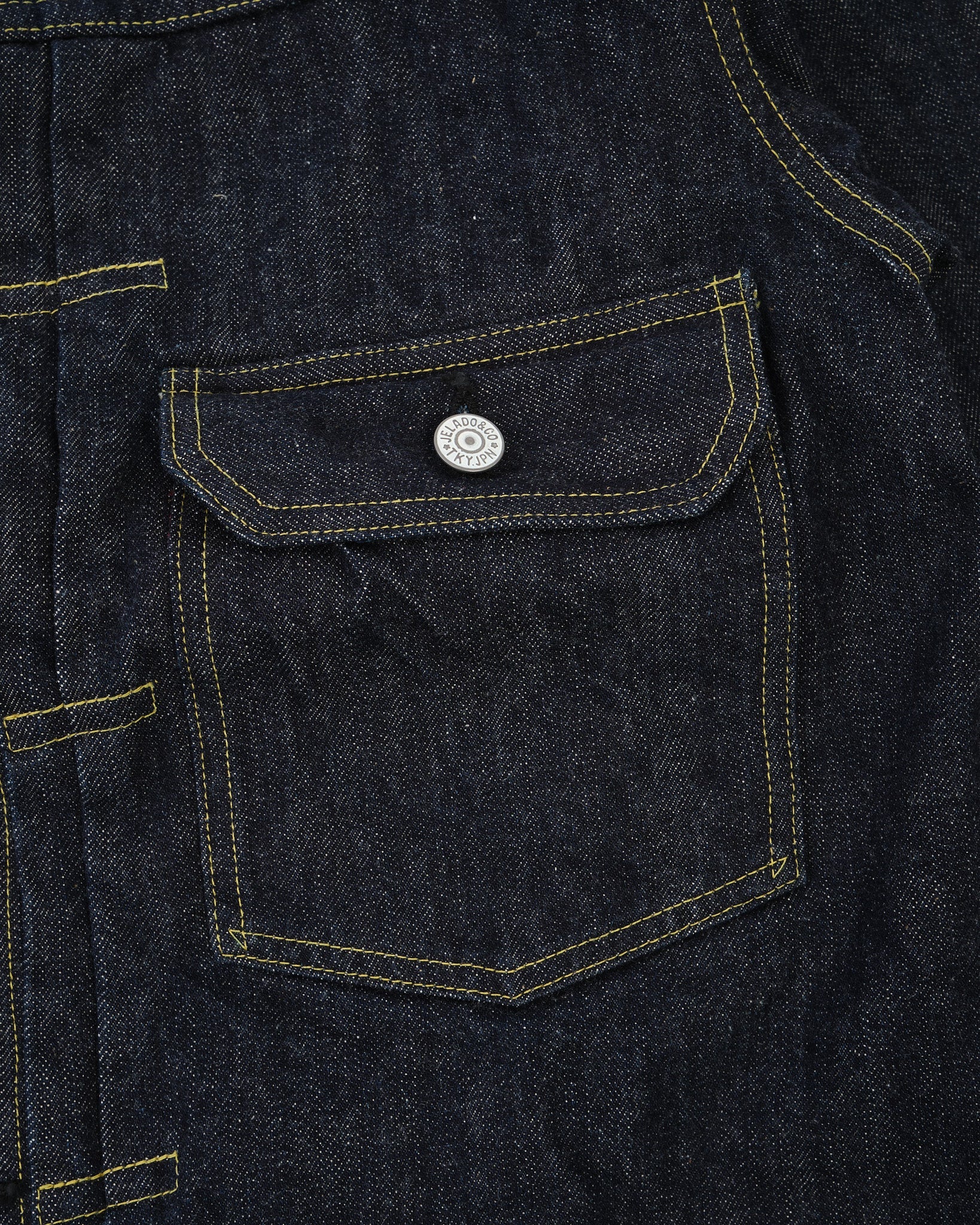 Le JP94407E 407Exx Jacket Denim Est-ce que Jelado est le premier Veste en jean du 1er type, fabriqué avec Lastesort Black Tag Denim pour une sensation encore plus sauvage et plus vintage. Ce Tissu de la liaison de 15 oz a été méticuleusement analysé et reconstruit à partir de Deadstock XX Denim, offrant une vision unique de l'artisanat en denim de l'ère précoce.