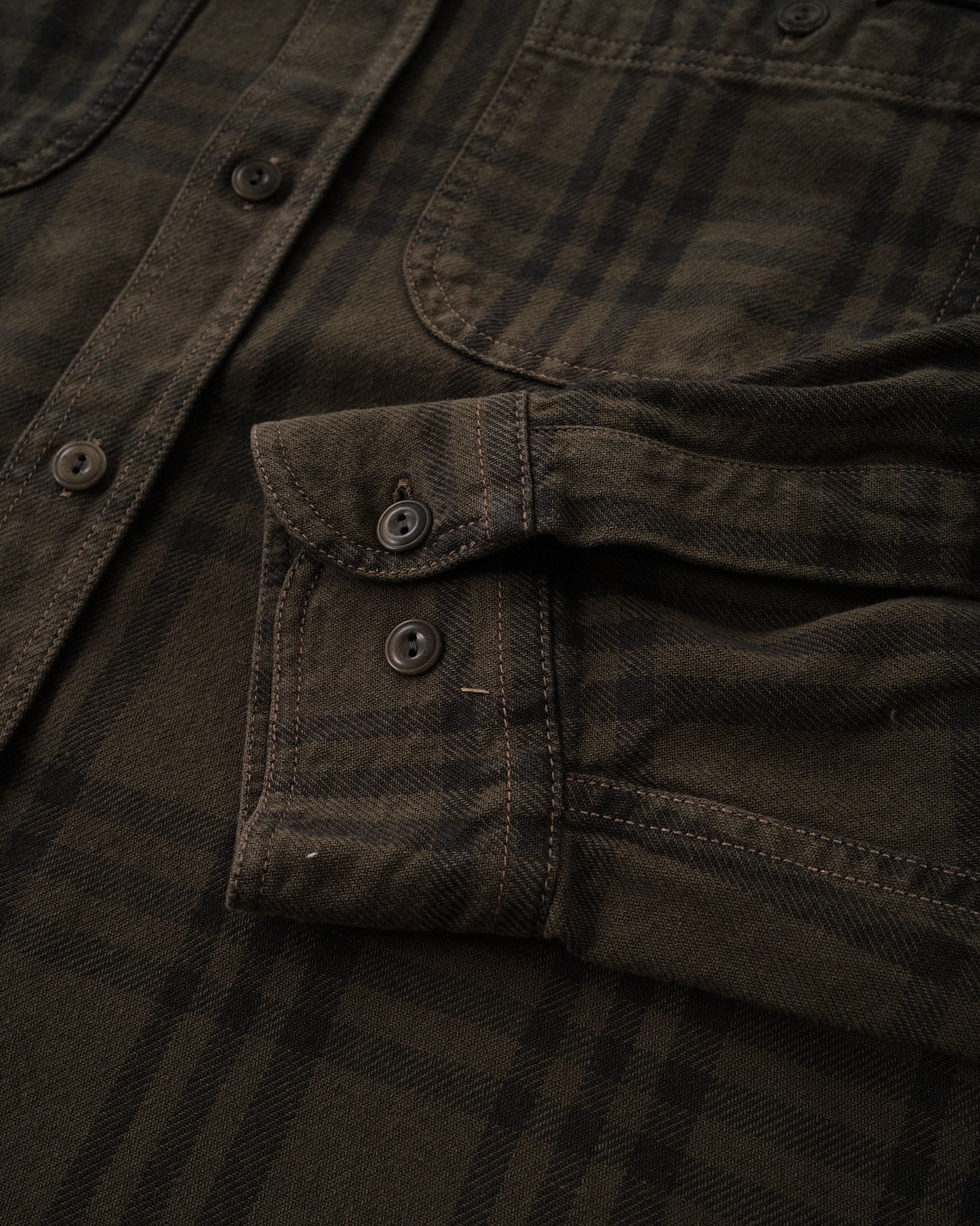 3. Base vert olive terreux avec un motif à carreaux vert foncé pour un look intemporel.