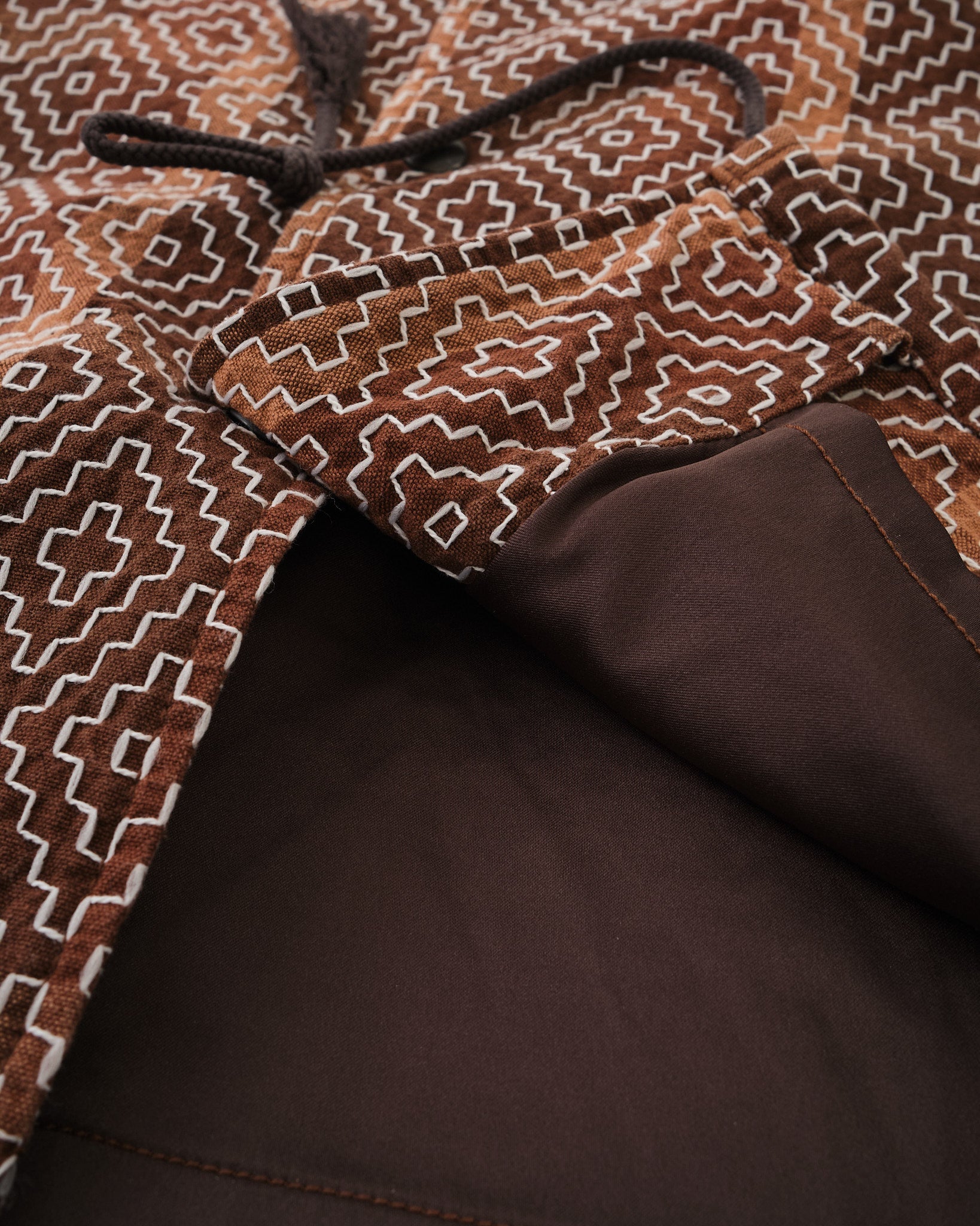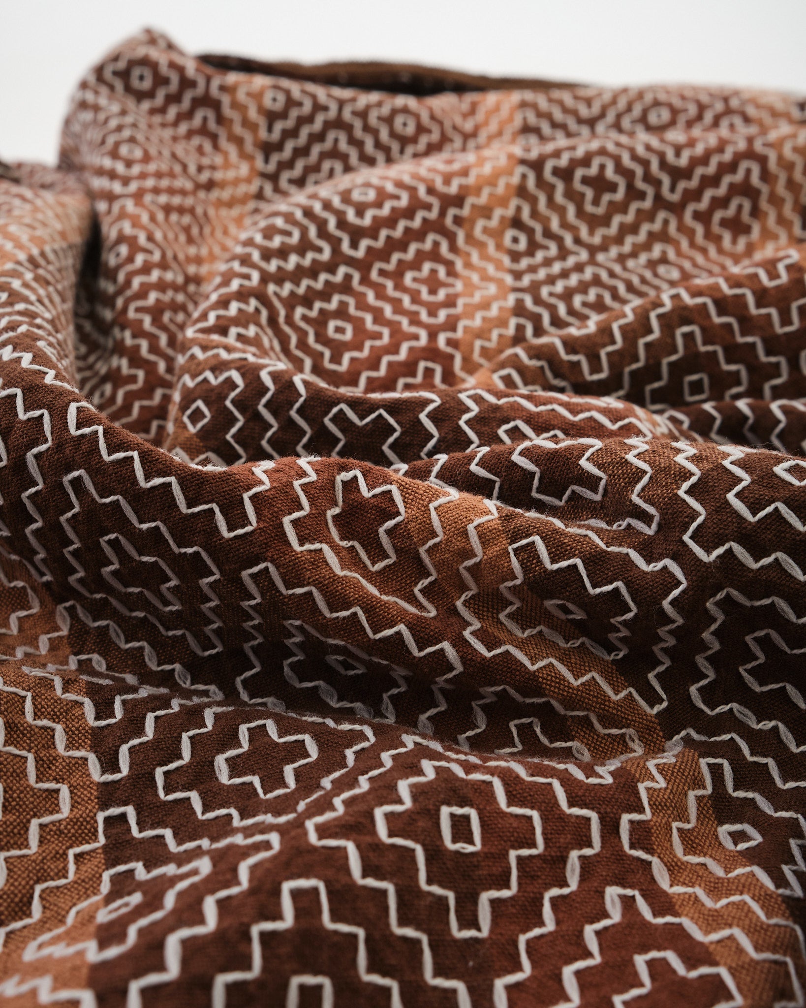 • Teinture Kakishibu : Motif à carreaux traditionnel teint avec du tannin de kaki