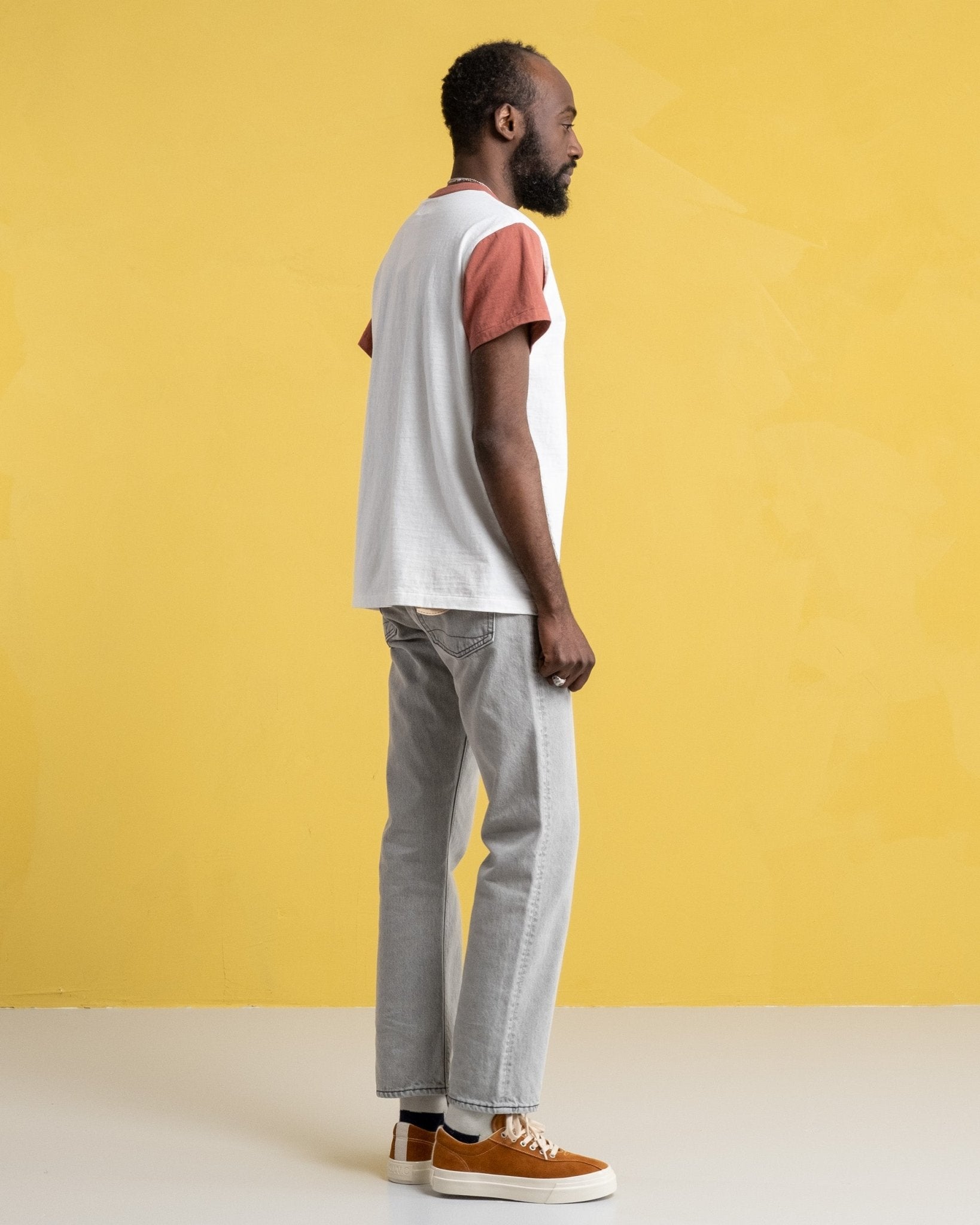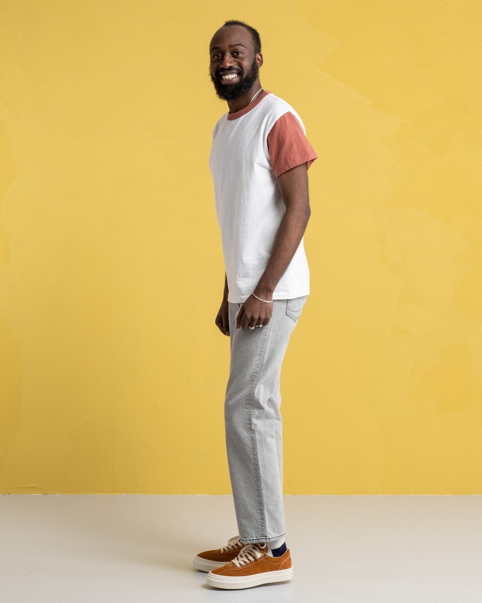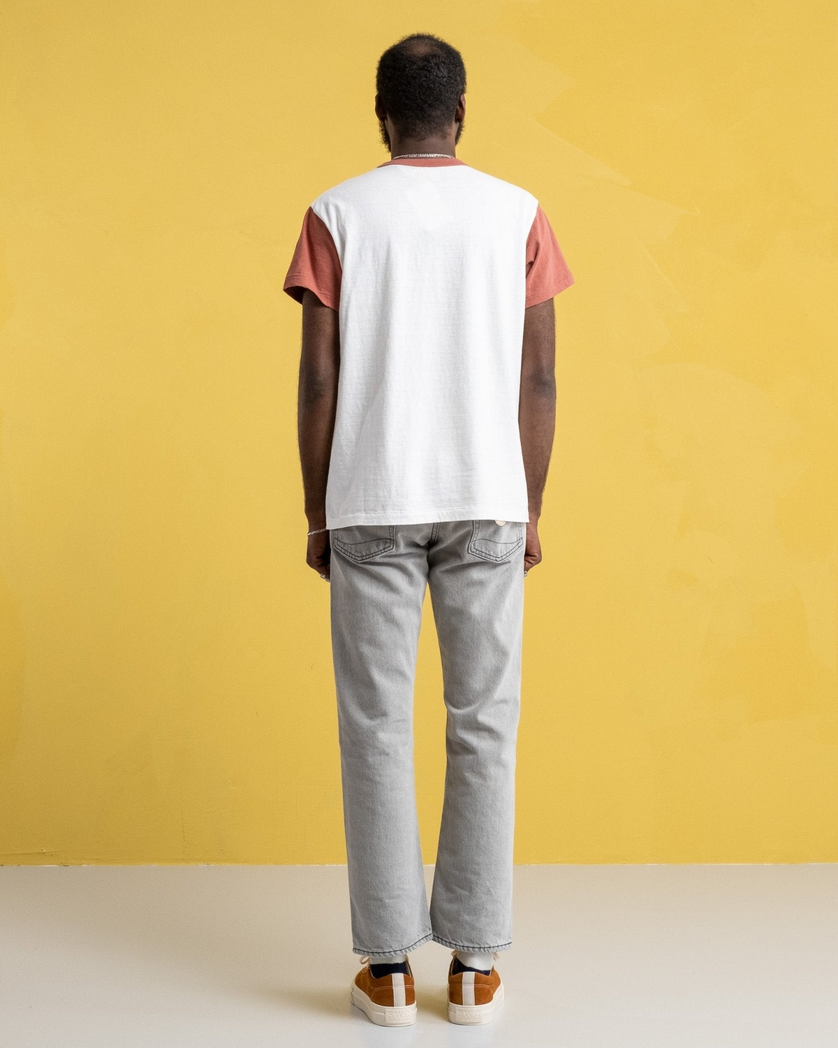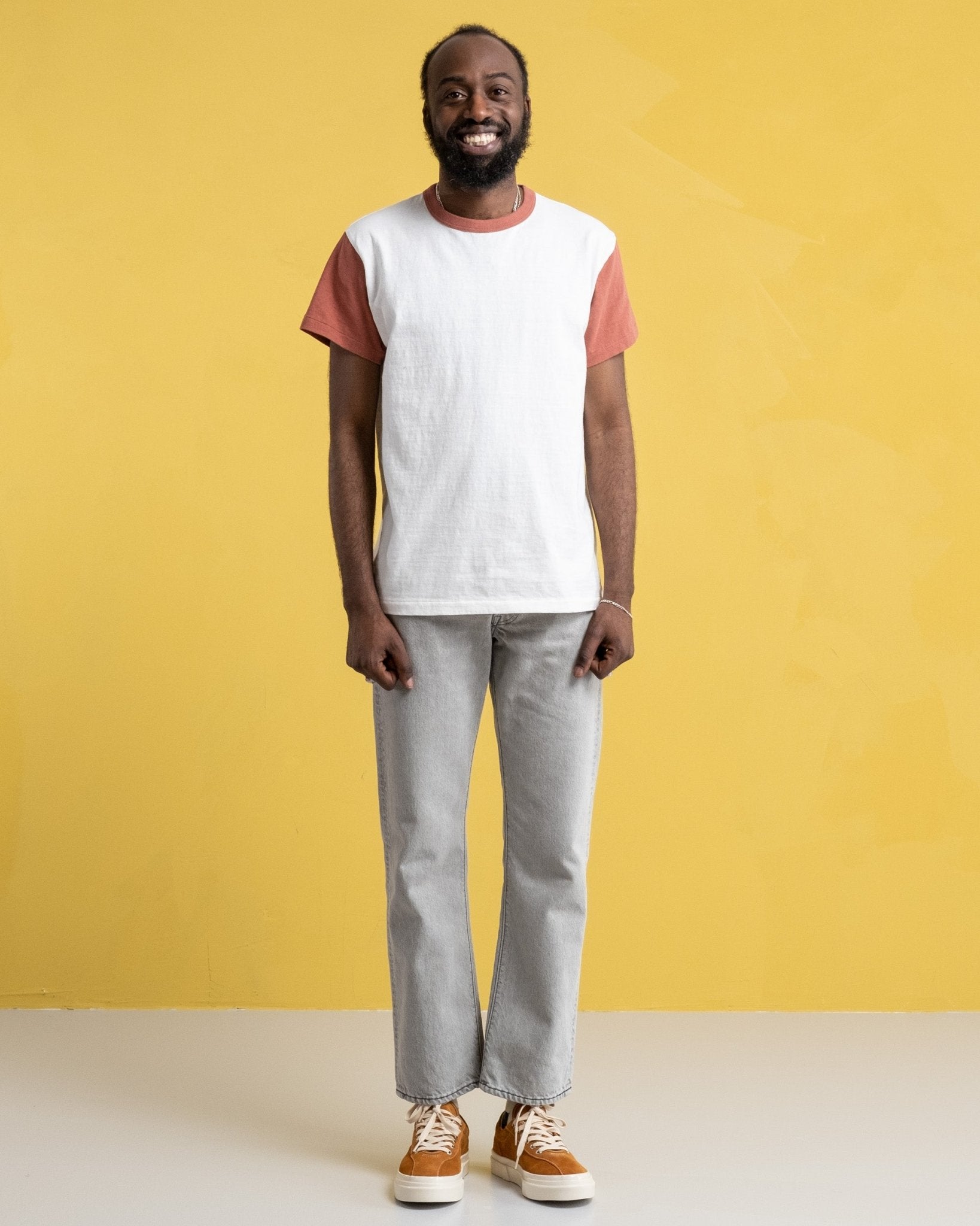 T-shirt La'ie SS Off White / Spiced Appled "Brooklyn Robins" de Sunray Sportswear. Les t-shirts Sunray ont un ajustement traditionnel inspiré de la sensation des années 50. Souchée détendue et légèrement plus courte que la Haleiwa avec des couleurs contrastées rendant hommage à l'équipe de baseball de Brooklyn Robins. Le collier, la conception des côtes et les tissus sont également traditionnels. 260 g. Fait au Japon.