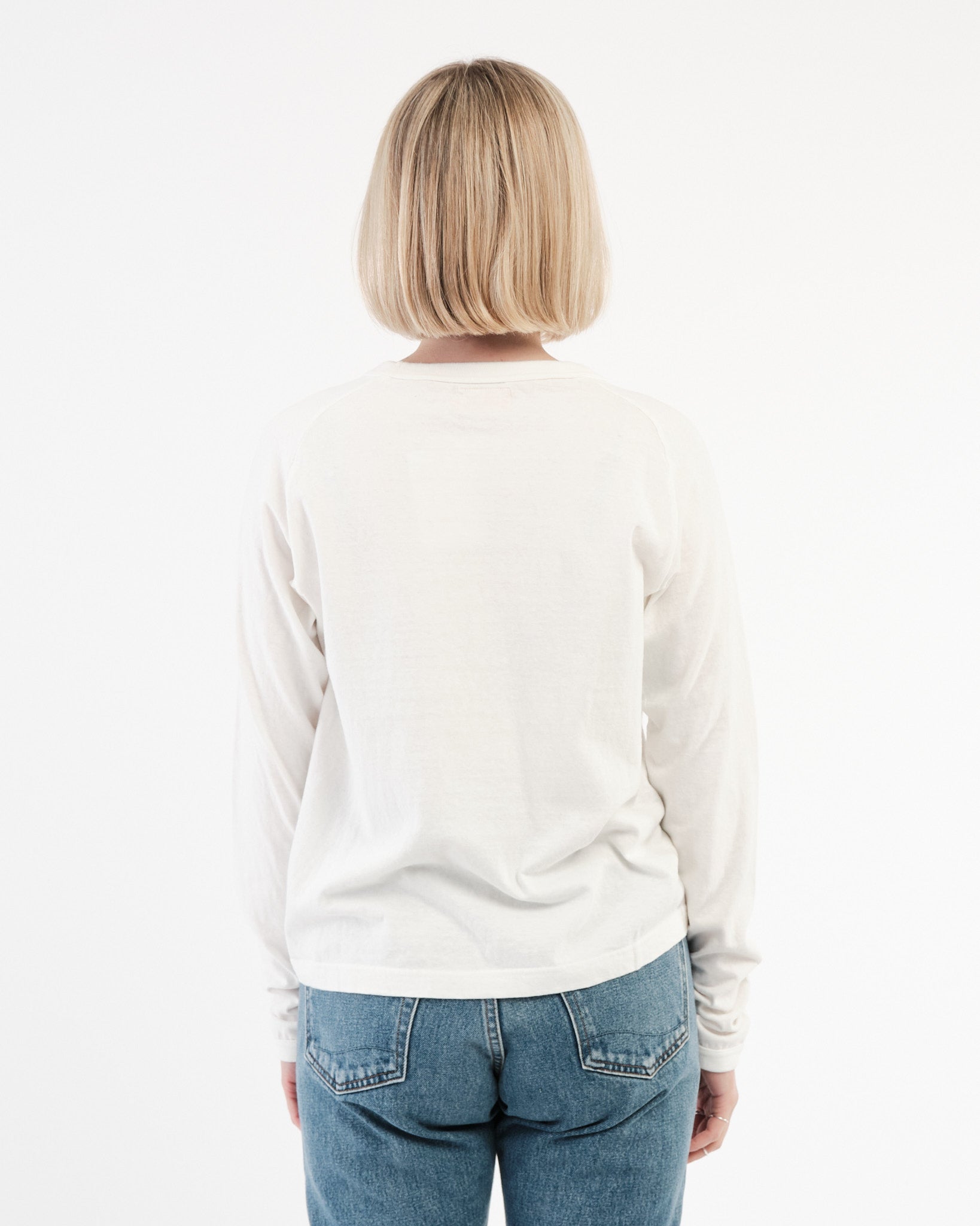 T-shirt laka ls off-blanc de Sunray Spirit. Les t-shirts Sunray ont un ajustement traditionnel inspiré de la sensation des années 50. Détendu avec un ajustement régulier. Le collier, la conception des côtes et les tissus sont également traditionnels. 260 G Jersey Ochiwata recyclé. Fait au Japon.