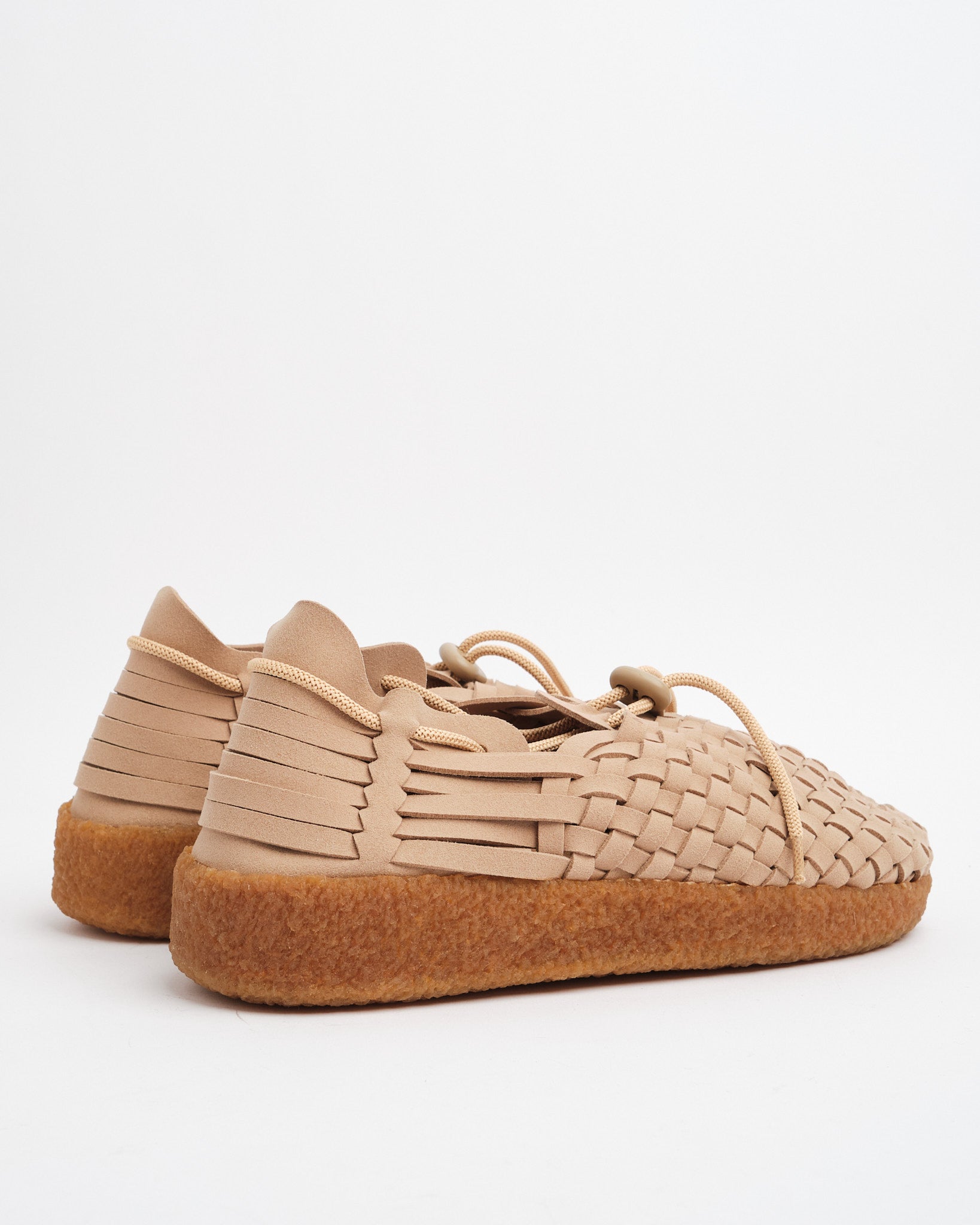 Fabriquées à partir de cuir en daim végétalien sans cruauté, les sangles de la sandale sont tissées de manière finement tissées, assurant une esthétique rustique couplée à un soutien robuste. La semelle ergonomique offre un soutien à la voûte importante, améliorant le confort lors de l'usure prolongée. La solide semelle intermédiaire à double densité à trois pièces, enveloppée dans une semelle extérieure en caoutchouc de gomme en crêpe malaisienne naturelle, promet la durabilité et la stabilité. Ces sandales sont faites avec une attention méticuleuse aux détails et fabriqué à la main au Cambodge.