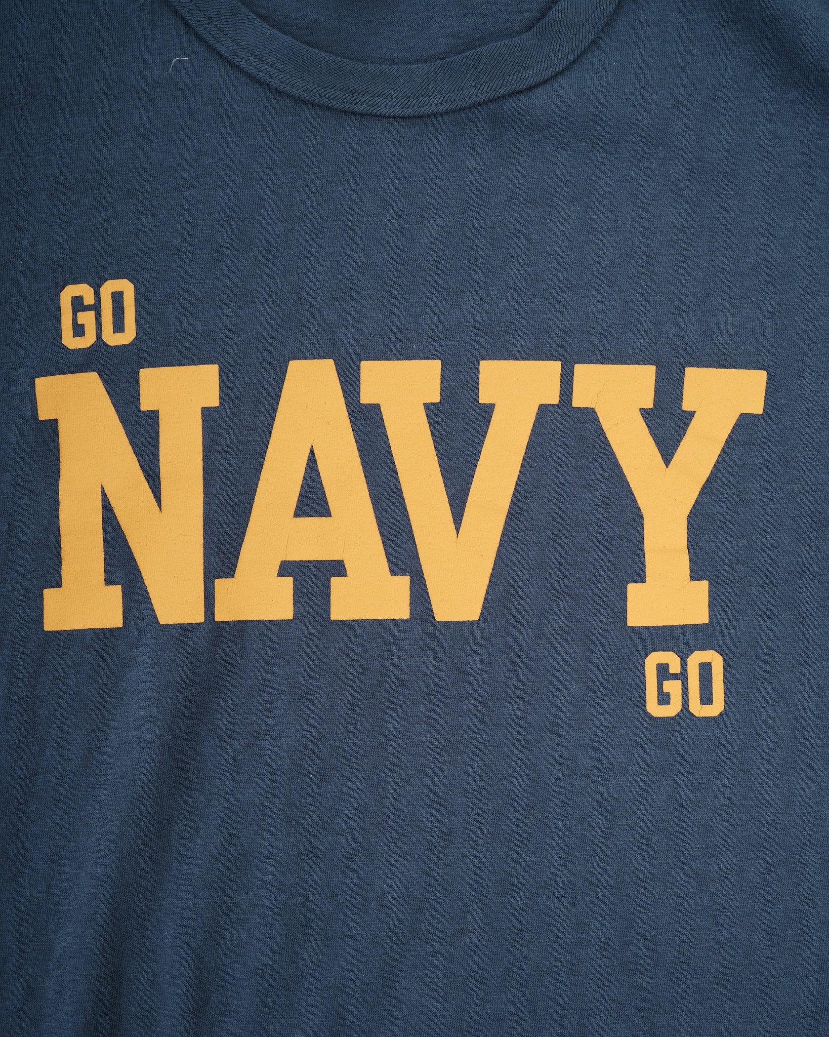 • Comporte une impression audacieuse "GO NAVY" pour un look collégial classique