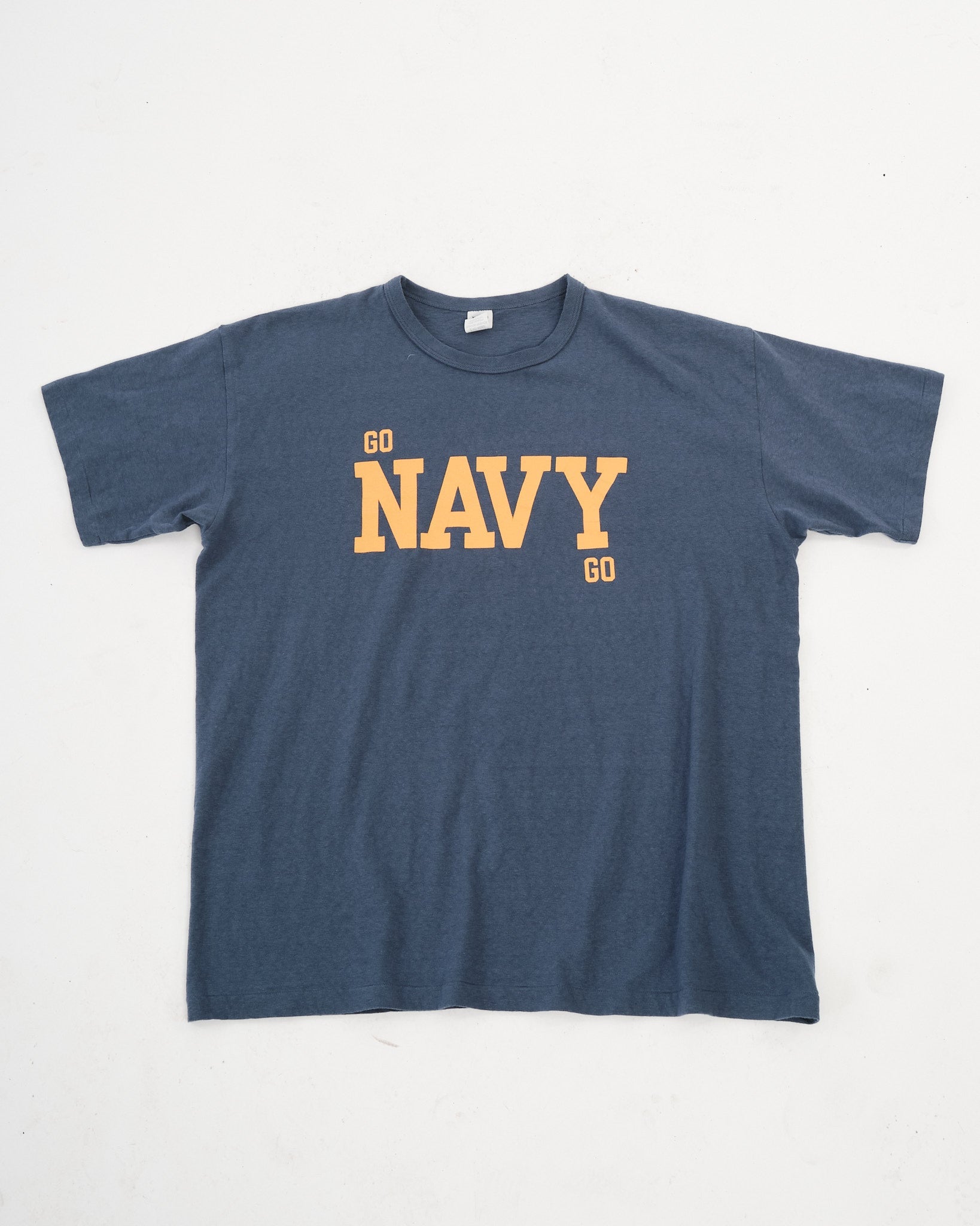 Présentation du t-shirt bleu WAREHOUSE Lot 4064 GO NAVY, un clin d'œil au style collégial intemporel. Confectionné à partir de coton slubby de première qualité, ce tee-shirt offre une sensation douce et texturée qui augmente le confort. L'impression audacieuse "GO NAVY" à l'avant ajoute une touche d'esprit, le rendant un choix idéal pour les sorties décontractées ou les weekends relax. Avec son design classique et sa construction de haute qualité, ce T-shirt mélange sans effort l'esthétique vintage avec le confort moderne.
