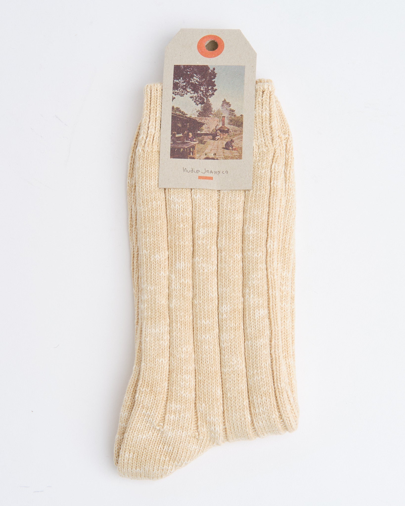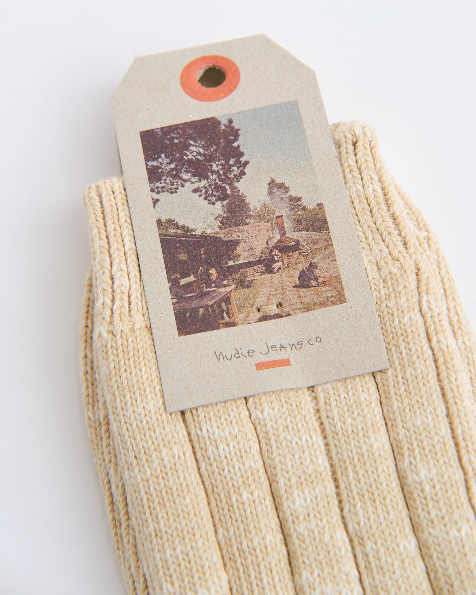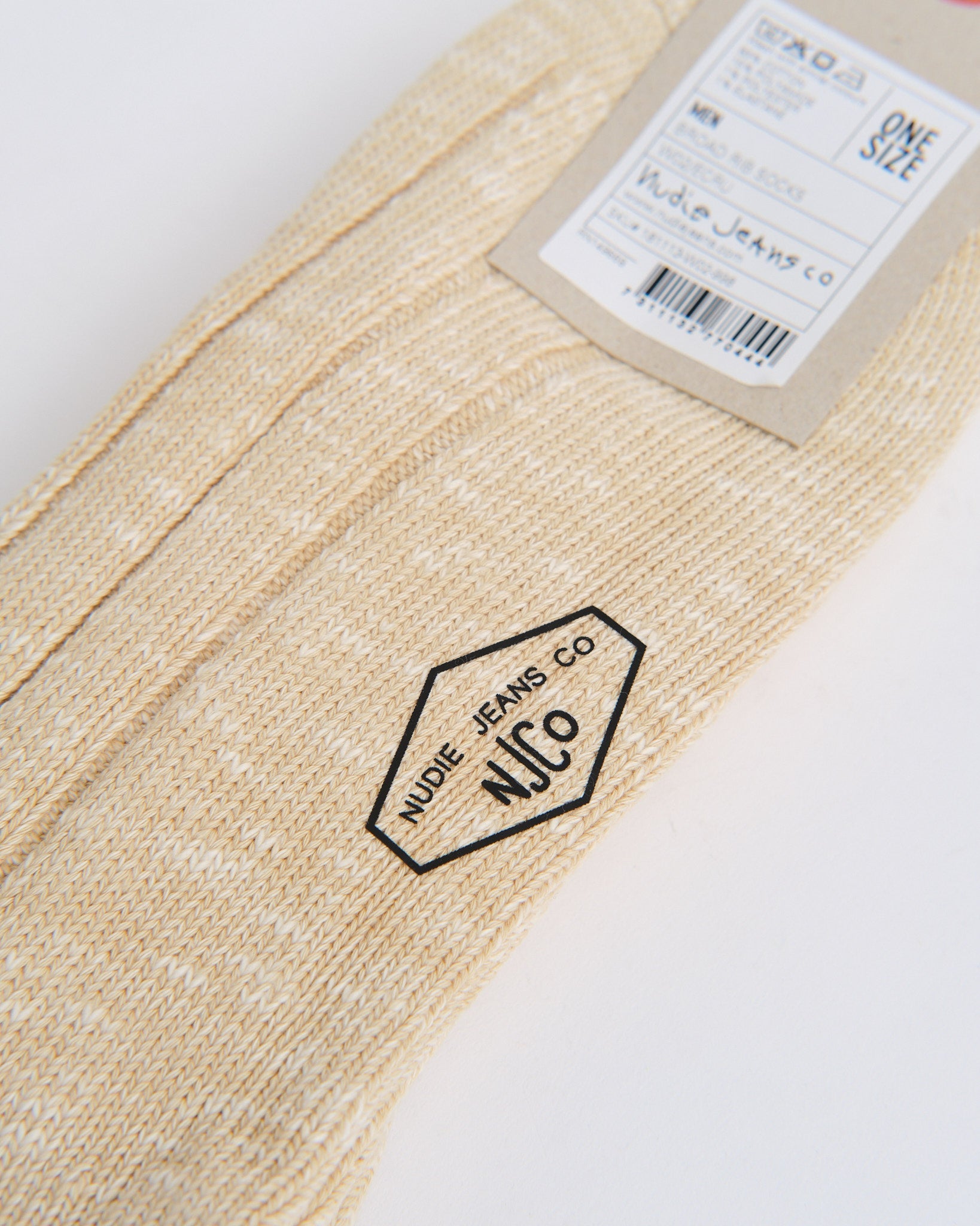 Conformément à la durabilité des Nudies Focus "Ces chaussettes sont fabriquées à partir de matériaux conformément à la mission de mode écologique des marques, le design côtelé large renforce non seulement leur robustesse, mais ajoute également une touche de style, ce qui en fait un choix polyvalent, pour votre garde-robe.
