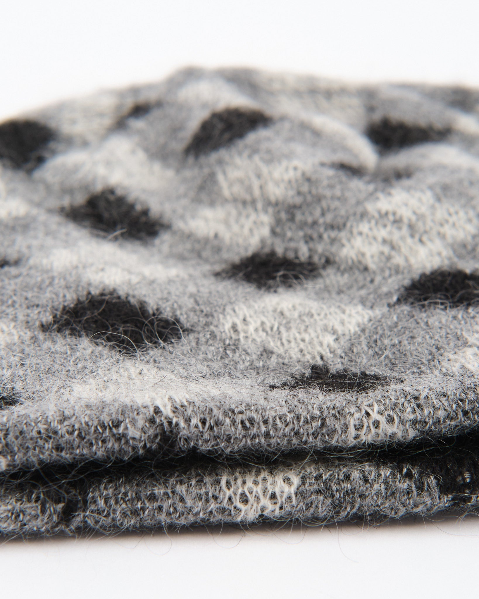 The Mohair Skully in Black by Found Feather is a sleek staple built for cold days and clean outfits. Made in Japan from ultra-soft jacquard knit with a brushed interior, it offers plush warmth in a minimal silhouette. The one-panel design creates a smooth, close fit, while the unisex sizing and subtle woven label keep things universally wearable. A QR-coded care label adds a modern touch to this timeless accessory.