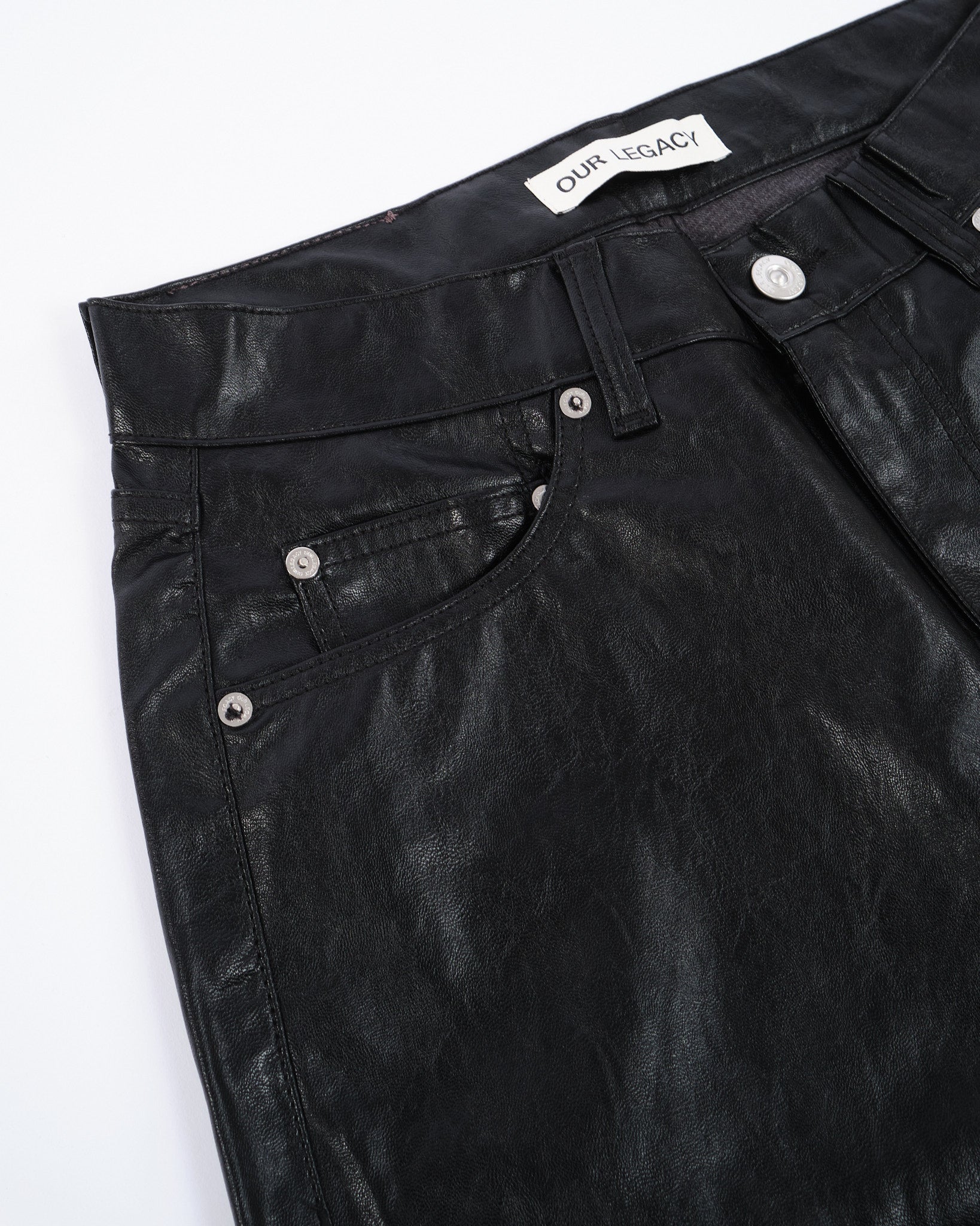 Un faux cuir doux et léger dans une jambe droite et à la hauteur moyenne à haute hauteur fait le pantalon d'automne parfait. Cinq poches et un peu notre patch hérité. Fabriqué au Portugal.