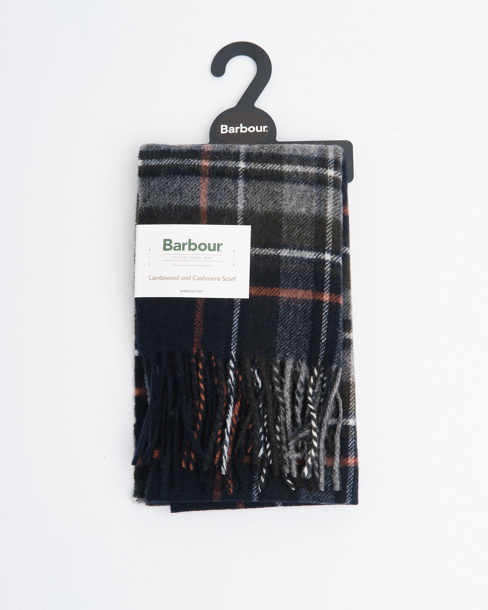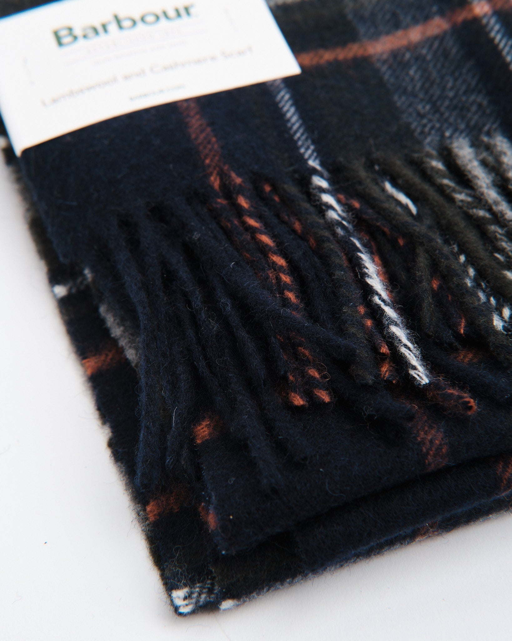 L'BARBOUR NOUVELLE ÉCHARPE À CARREAUX TARTAN en bleu marine est un témoignage de l'élégance intemporelle et du confort. Confectionnée à partir d'un mélange haut de gamme de 95 % de laine d'agneau et 5 % de cachemire, cette écharpe offre une douceur exceptionnelle et une chaleur, la rendant un compagnon idéal pour les jours froids. Le motif classique tartan ajoute une touche de sophistication à toute tenue, tandis que l'ourlet à franges traditionnel fournit une finition raffinée. Mesurant 180cm de longueur et 25cm de largeur, elle est assez polyvalente pour être stylée de diverses manières, assurant à la fois fonctionnalité et mode.