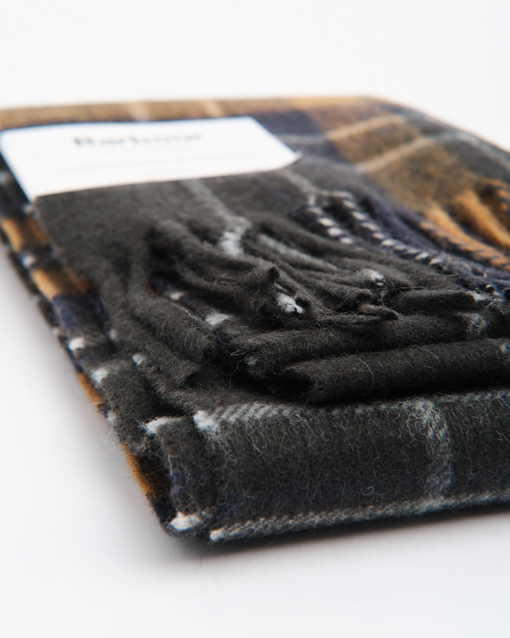 L'BARBOUR NOUVELLE ÉCHARPE À CARREAUX TARTAN en Olive/Classique est le mélange parfait de tradition et de confort moderne. Fabriquée à partir d'un mélange luxueux de 95% de laine d'agneau et de 5% de cachemire, cette écharpe offre une douceur et une chaleur inégalées, la rendant essentielle pour les mois froids. Le motif tartan classique de ton olive ajoute une touche de sophistication, tandis que le ourlet à franges lui donne une finition raffinée. Avec une longueur de 180 cm et une largeur de 25 cm, elle offre des options de style polyvalentes pour n'importe quelle tenue.