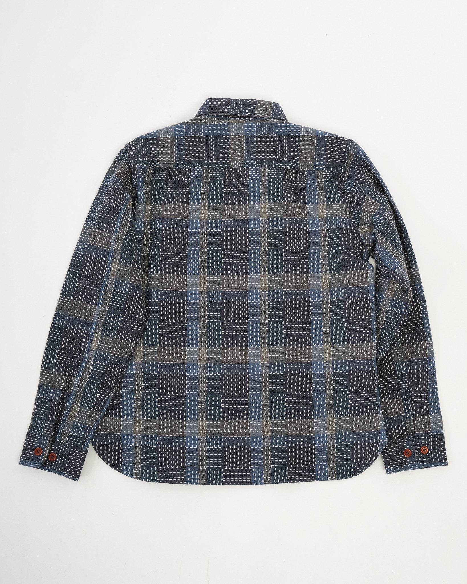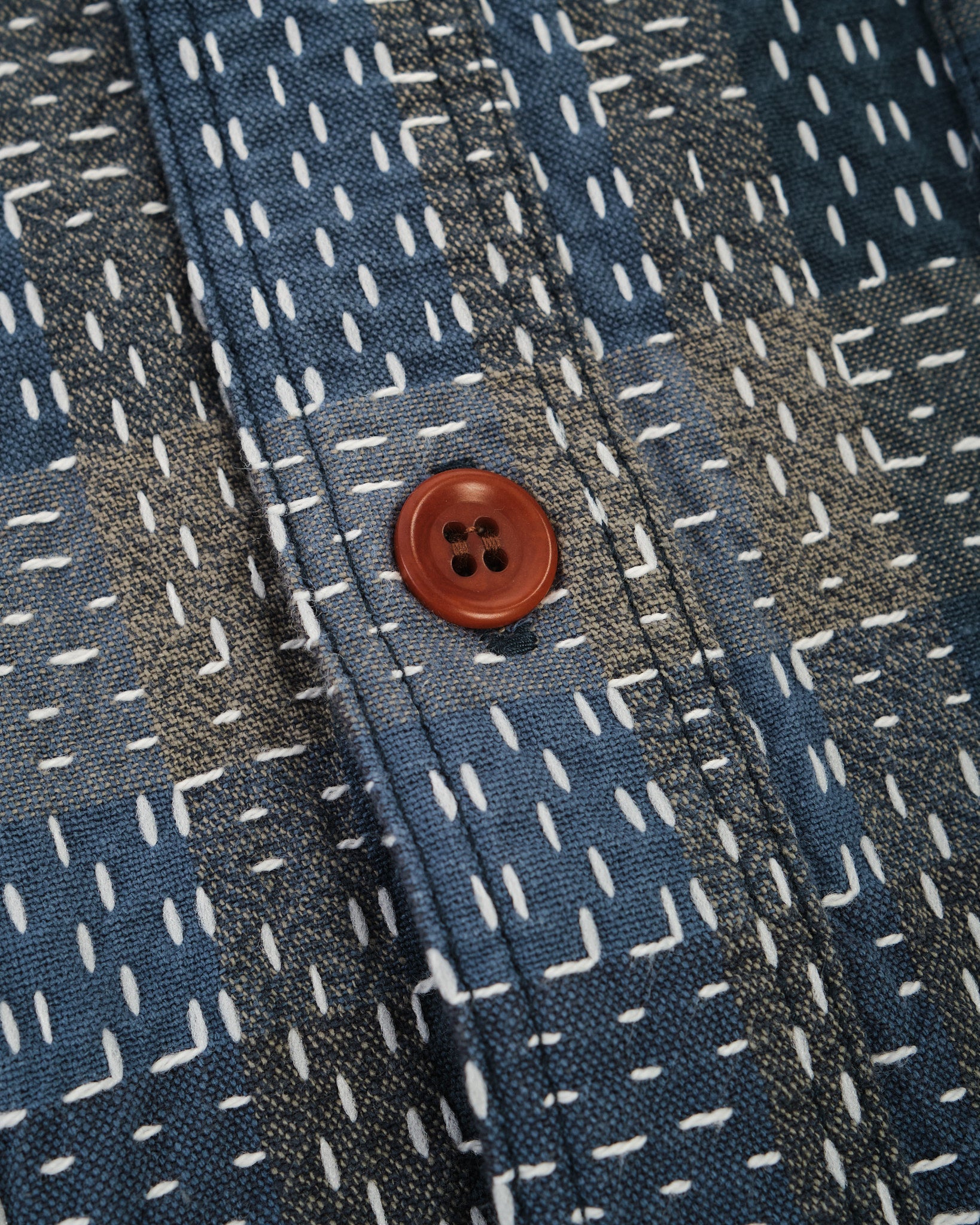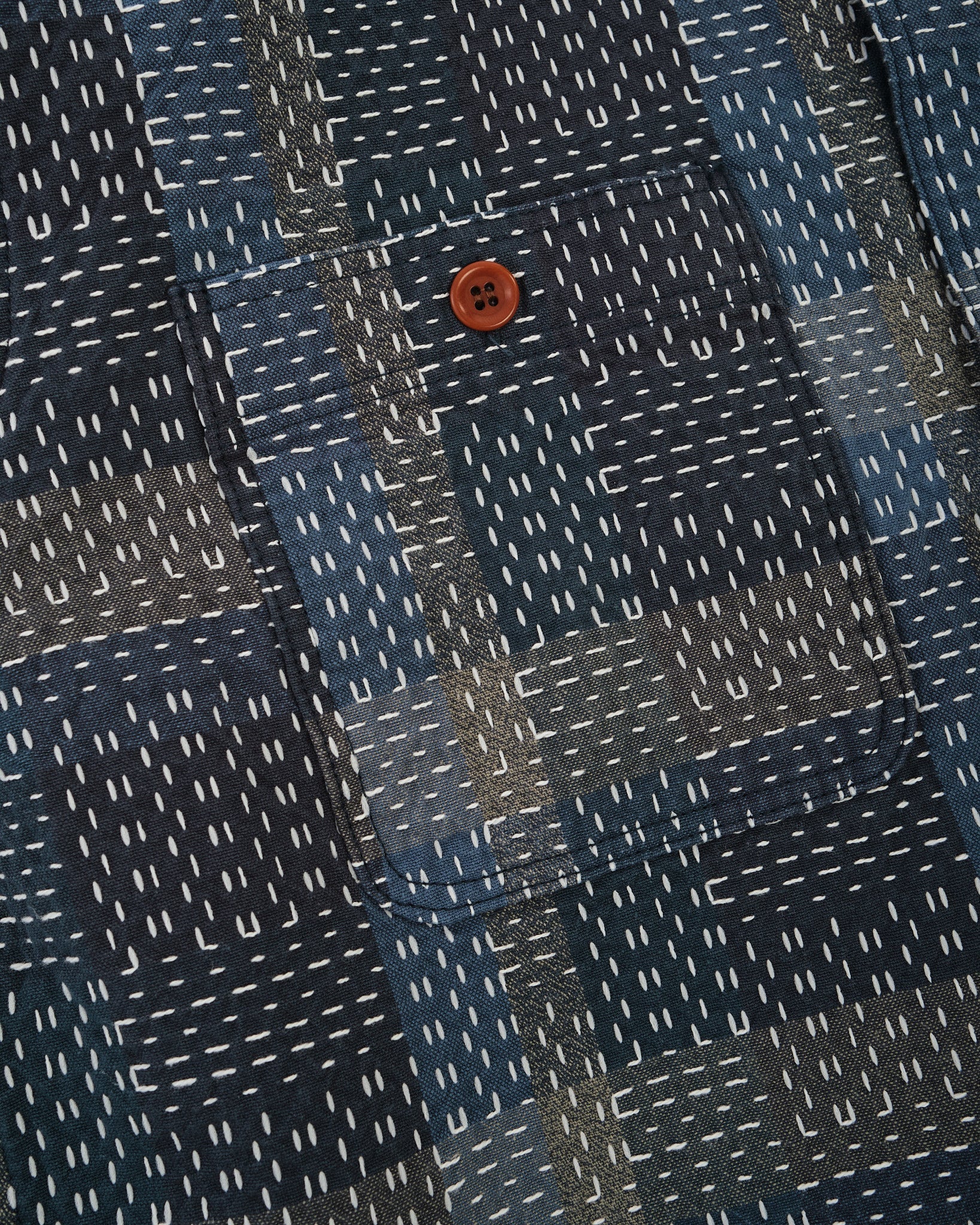 Le Studio D'Artisan Noragi Sashiko (5651) est une interprétation moderne de vêtements de travail japonais traditionnels, s'inspirant de Noragi, les vêtements robustes portés par les ouvriers au cours des siècles passés. Conçu avec Sashiko couture en cours d'exécution verticalement et horizontalement, cette chemise présente une esthétique unique artisanale qui honore le riche héritage textile du Japon.