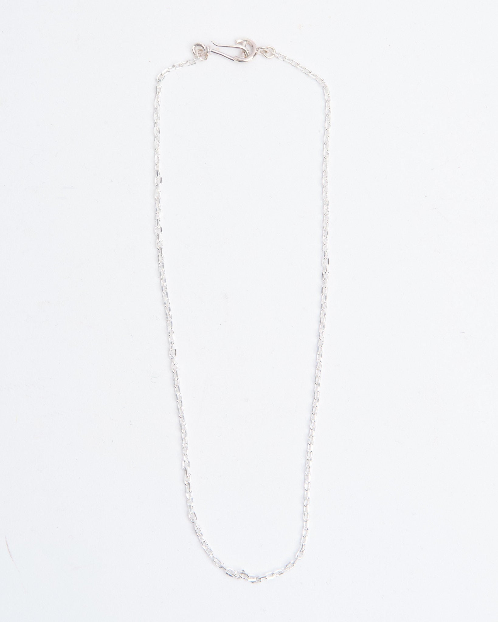 The Chain S (55cm) is a lightweight silver chain from First Arrows, crafted in Japan from Britannia Silver 950. Brighter than standard 925 silver and strengthened with the brand’s exclusive heat-treatment process, this chain combines shine with durability. Its slimmer profile makes it an ideal match for smaller pendants like the S or M size feathers, or it can be worn alone for a subtle accent. At 55cm, it sits comfortably at a versatile mid-length, perfect for daily wear. With time, the silver will darken naturally, adding depth and character to this understated yet essential piece.