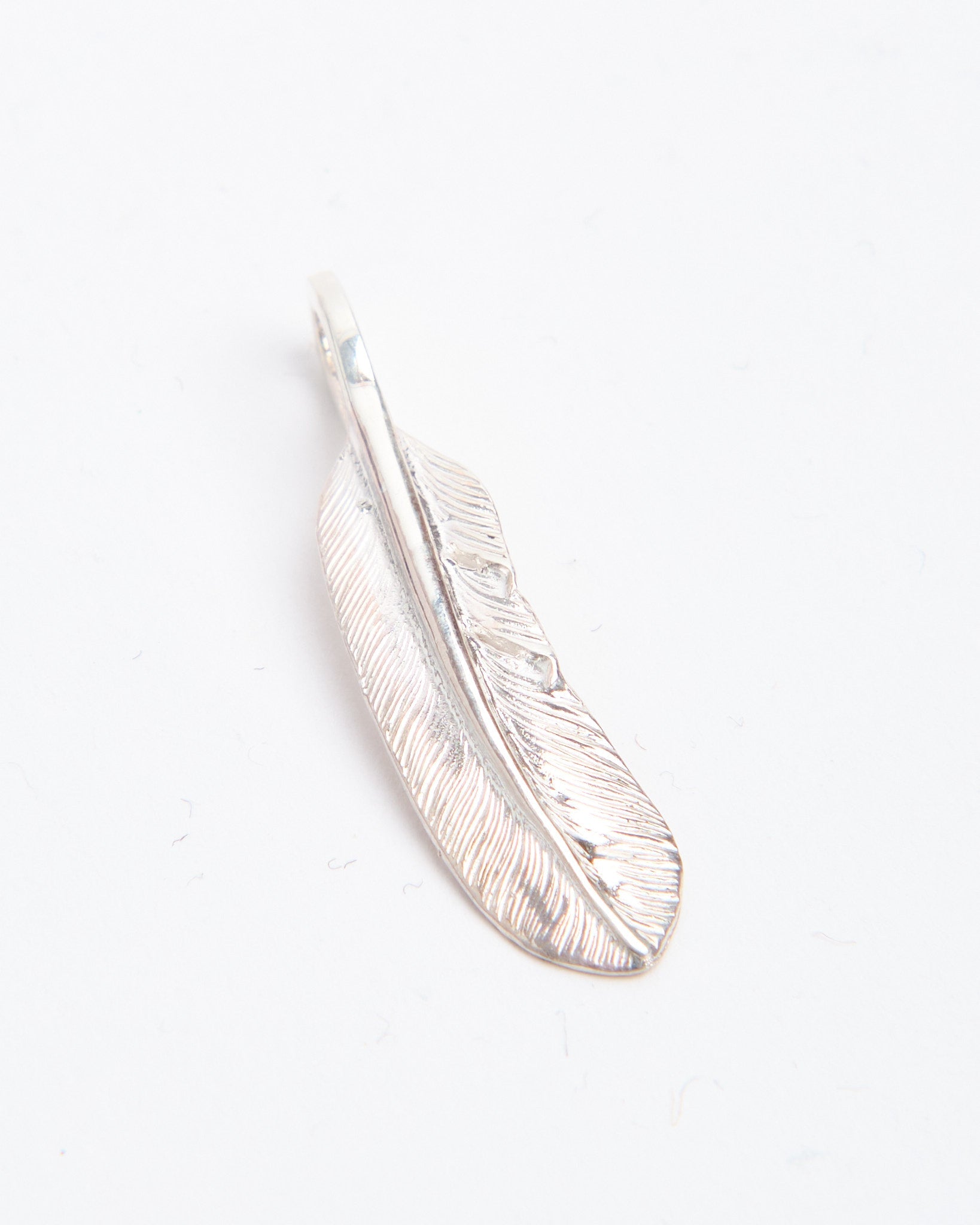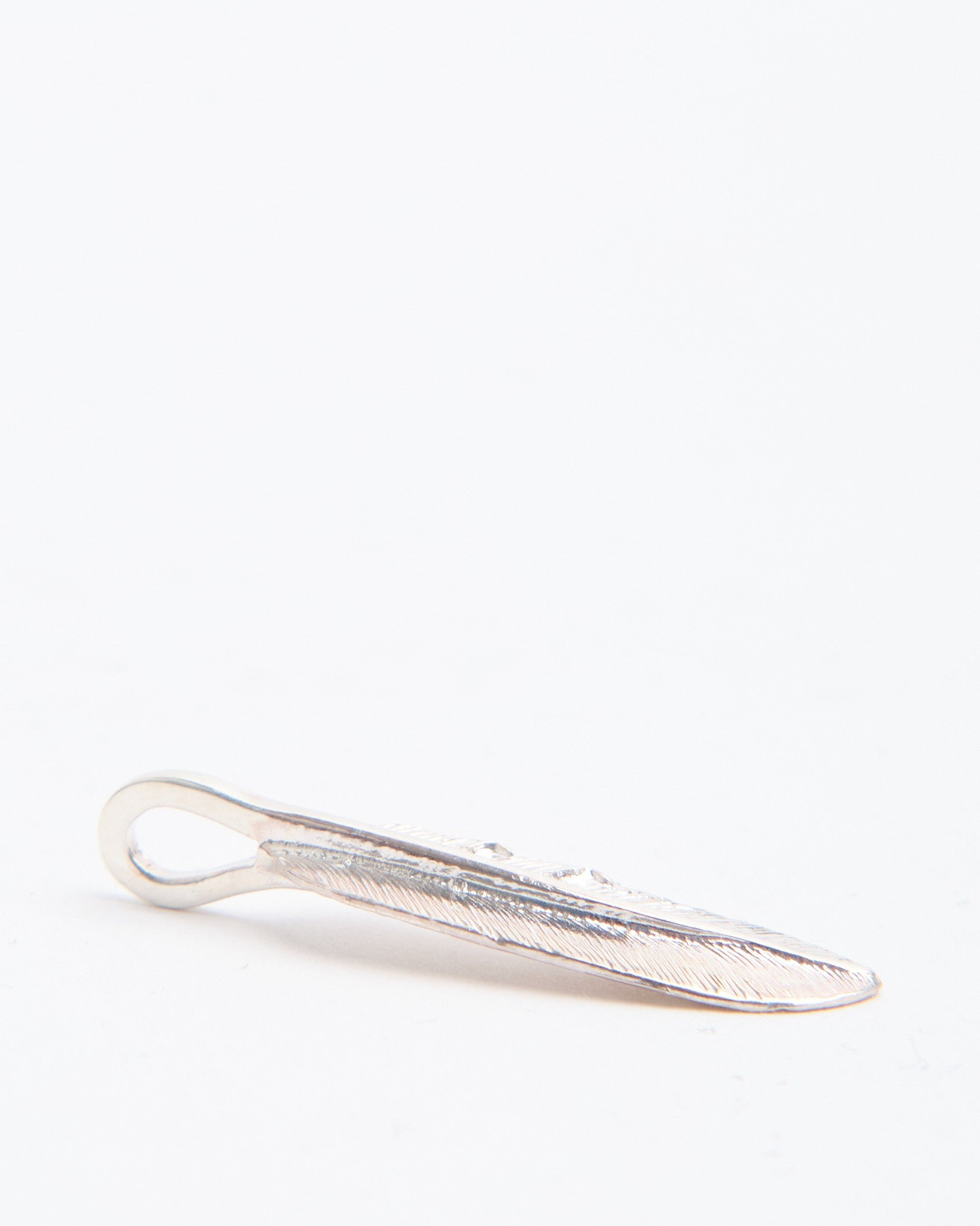 The Feather (S) is a smaller pendant from First Arrows, handcrafted in Japan using Britannia Silver 950. The feather design draws from Native American tradition, representing freedom, hope, and positive spirit, but is reinterpreted in a refined and versatile way. First Arrows use their unique heat treatment process to strengthen the silver, giving it both durability and brilliance. Compact and elegant, this piece can be worn on its own for a subtle accent or layered with other pendants to create a personal combination. With time, the silver darkens, adding depth and character that makes each piece unique to its wearer.