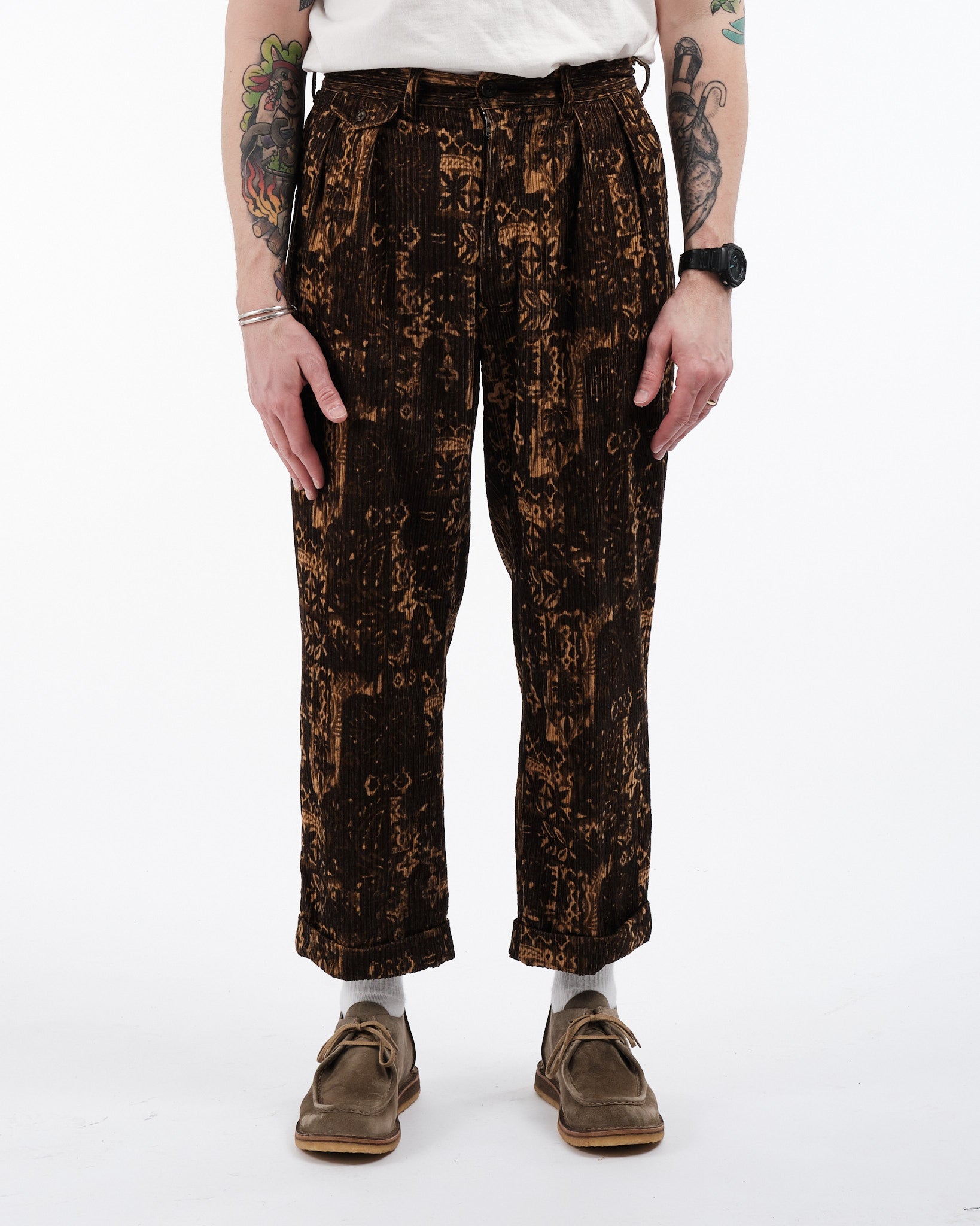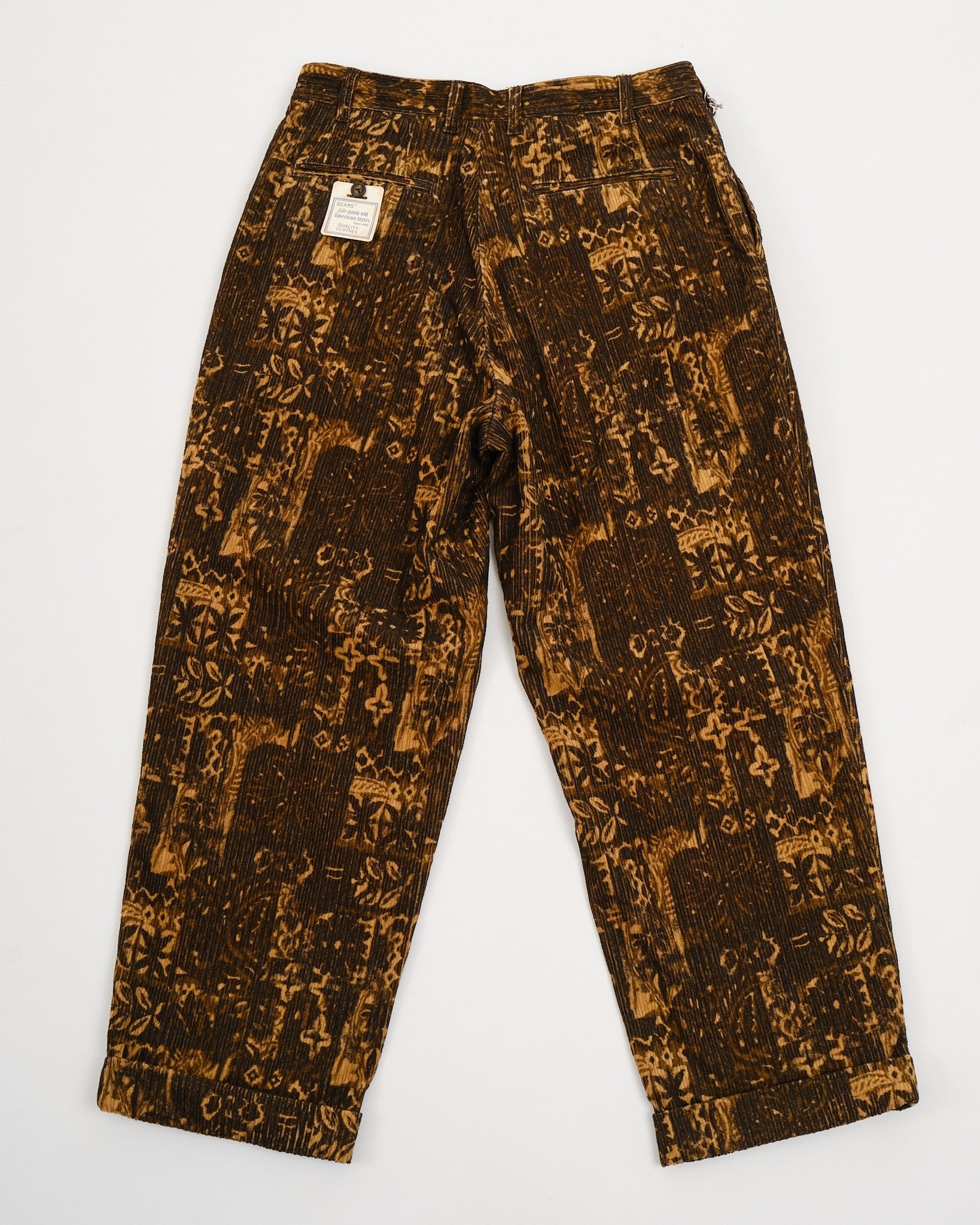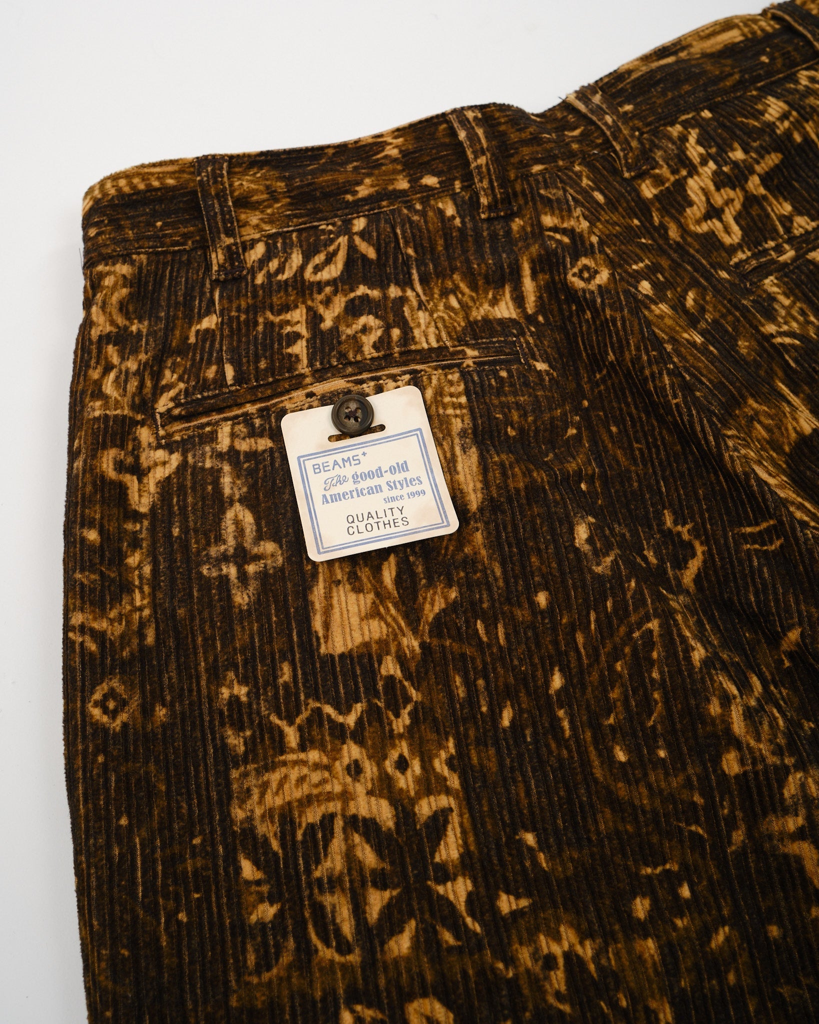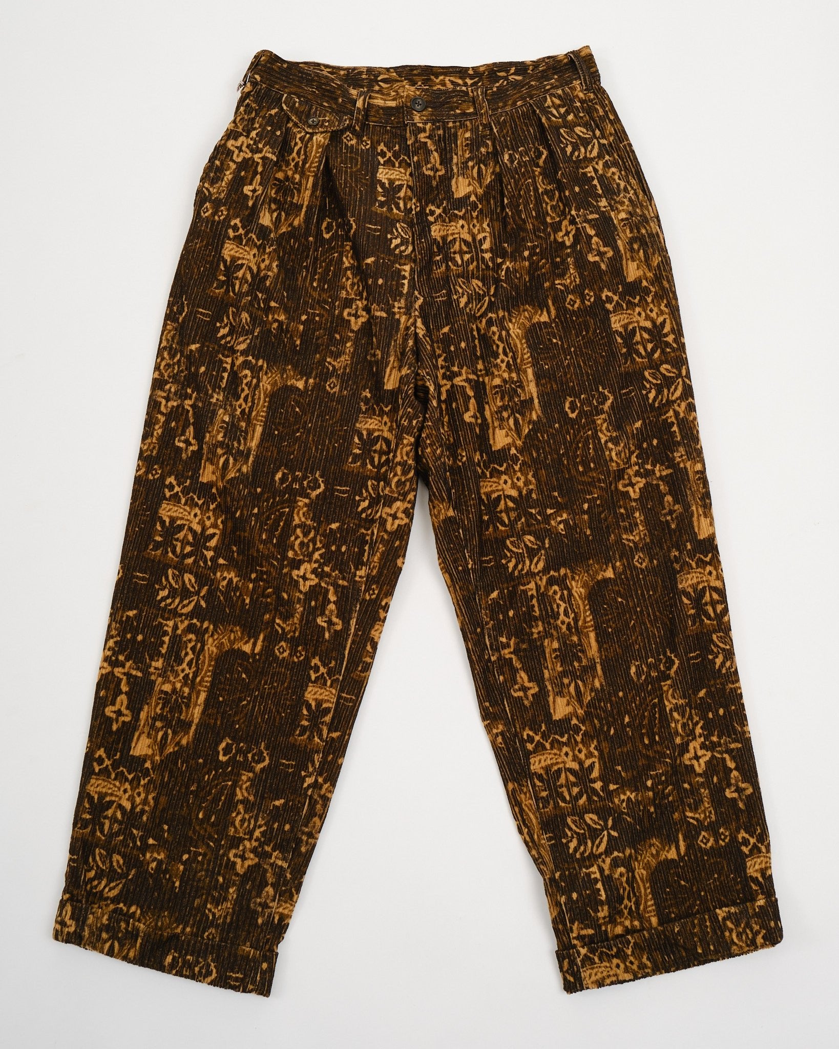 Faites un pas dans le temps avec les poutres + 2 pantalons pliers en velours côtelé marron. Ces pantalons sont inspirés par la mode du charme rétro mélangeant des années 1950, avec une touche de couture. Méticuleusement fabriqué au Japon, ces pantalons présentent un motif de fleurs dans des tons de brun et de beige sur un tissu en velours côtelé de haute qualité. Avec une conception de jambes qui ajoute une touche de style et un mélange de tissu confortable, notamment du polyester, du coton, de la rayonne et un soupçon de polyuréthane pour l'étirement, ils font un ajout exceptionnel, à toute garde-robe à la recherche de ce flair preppy.
