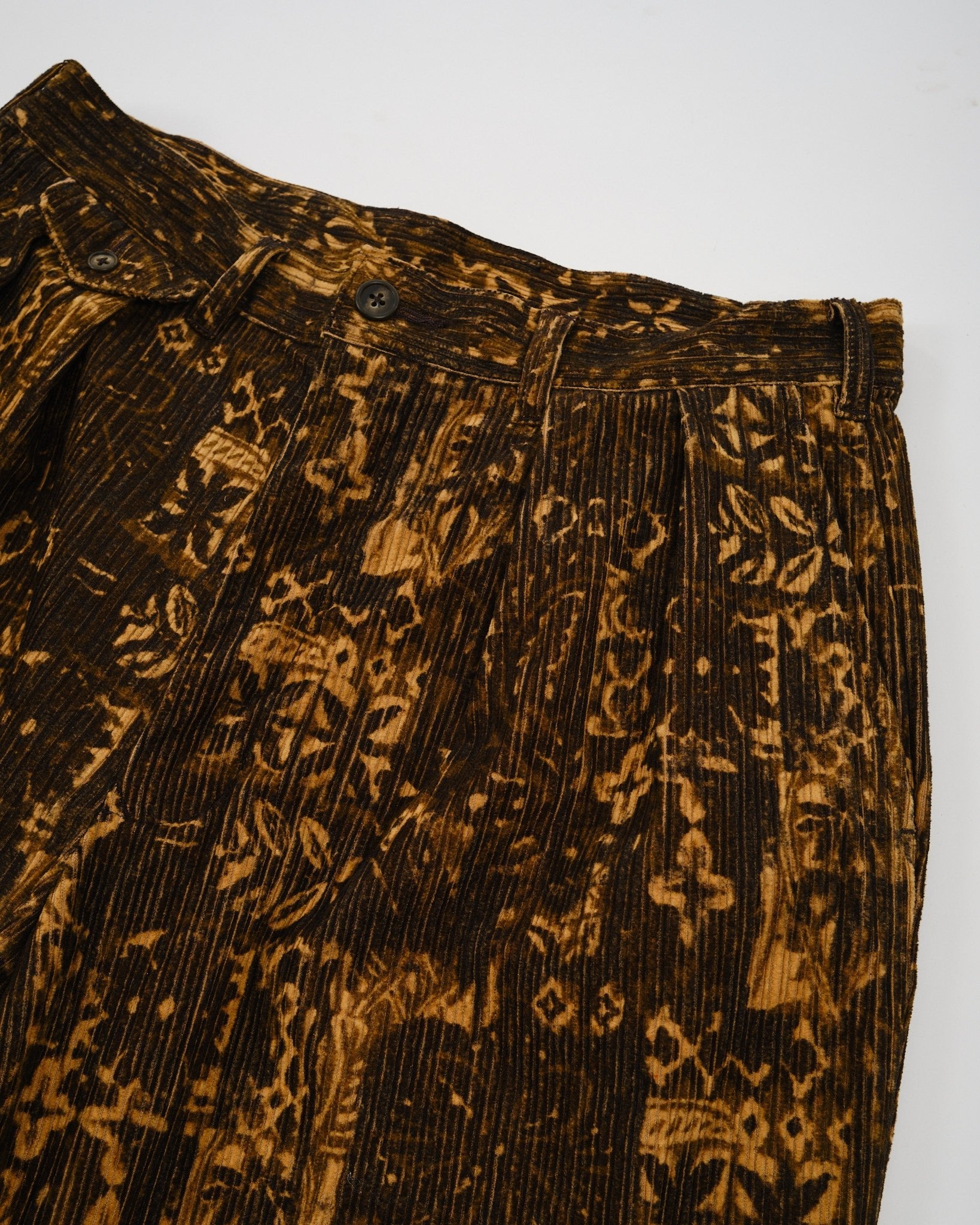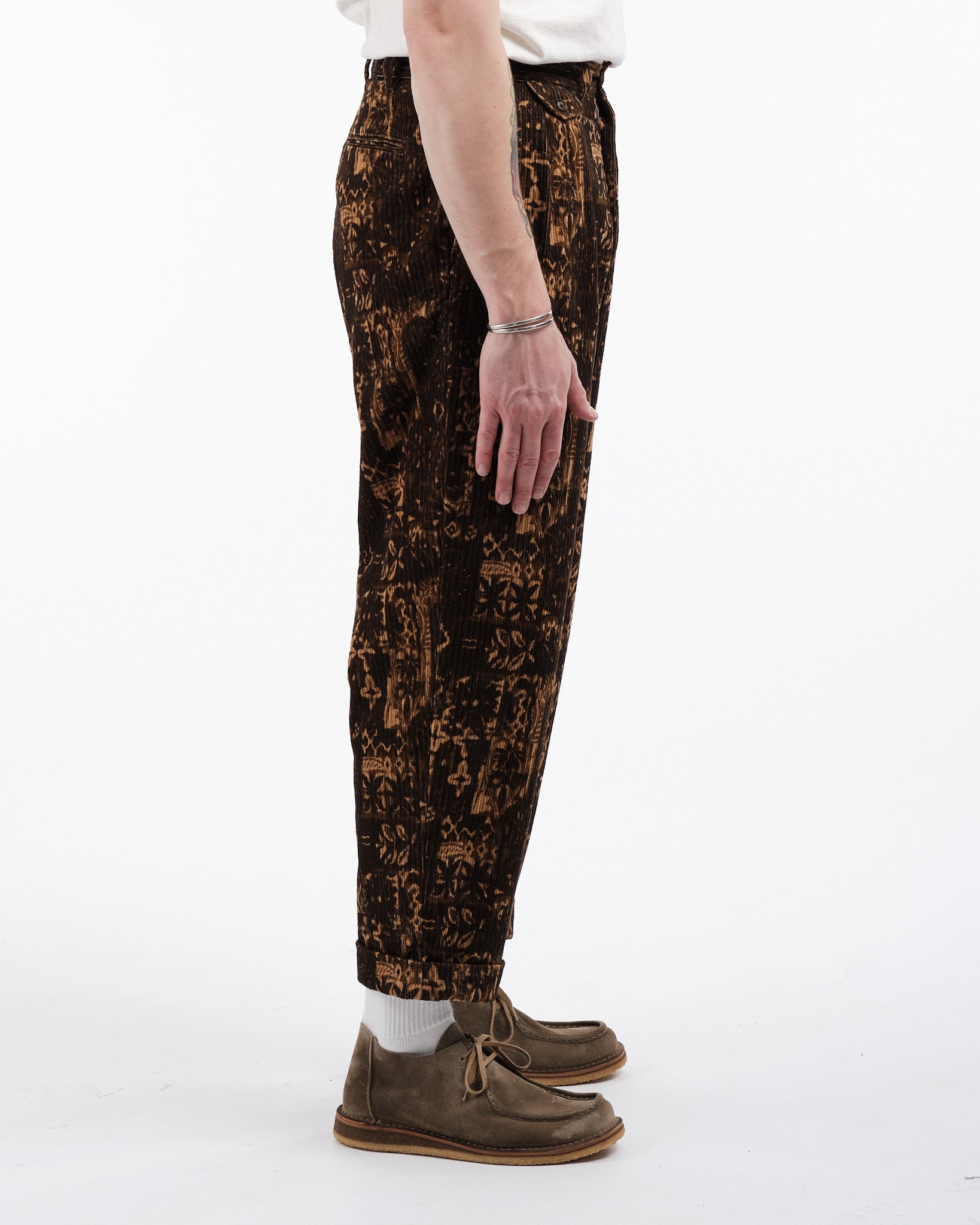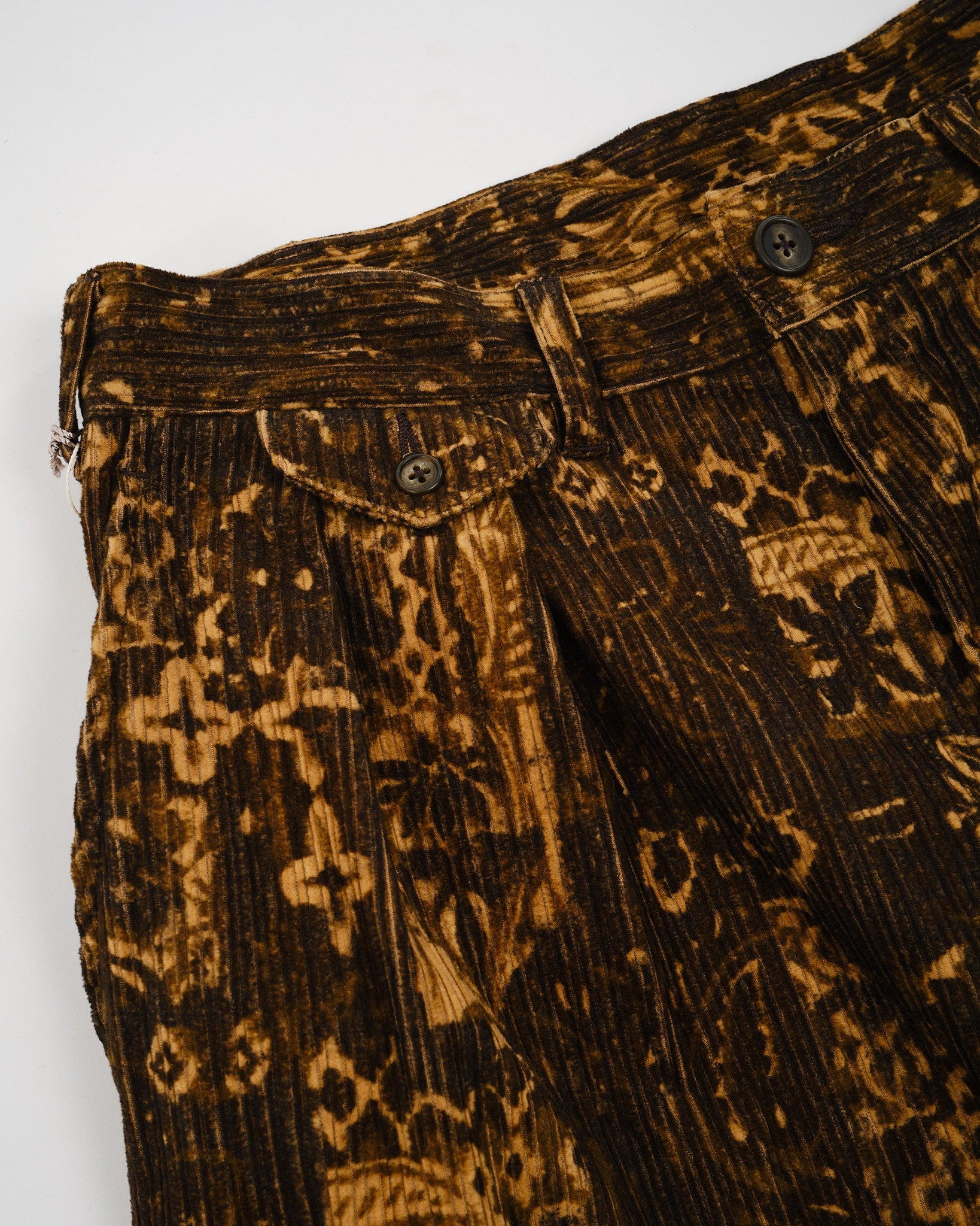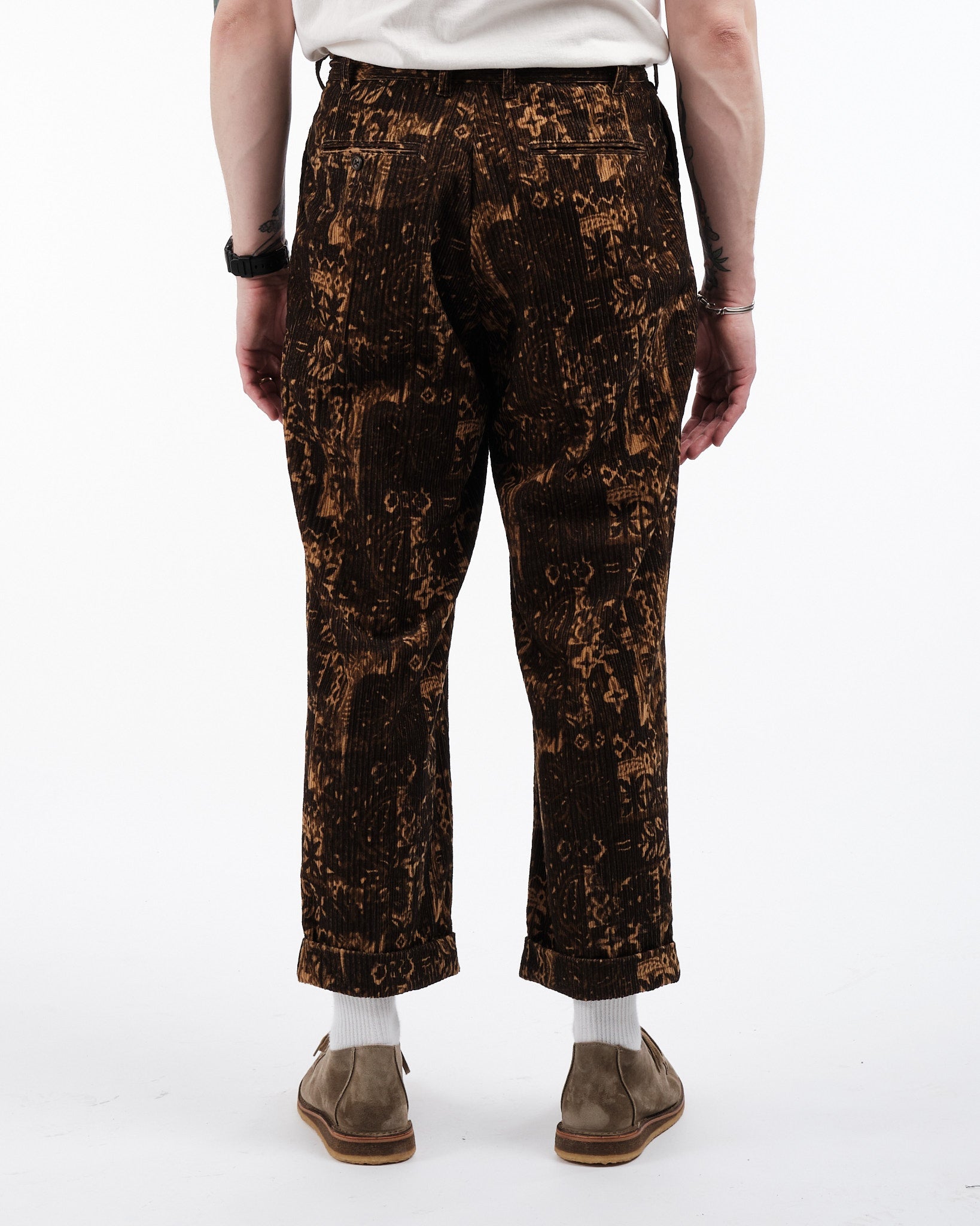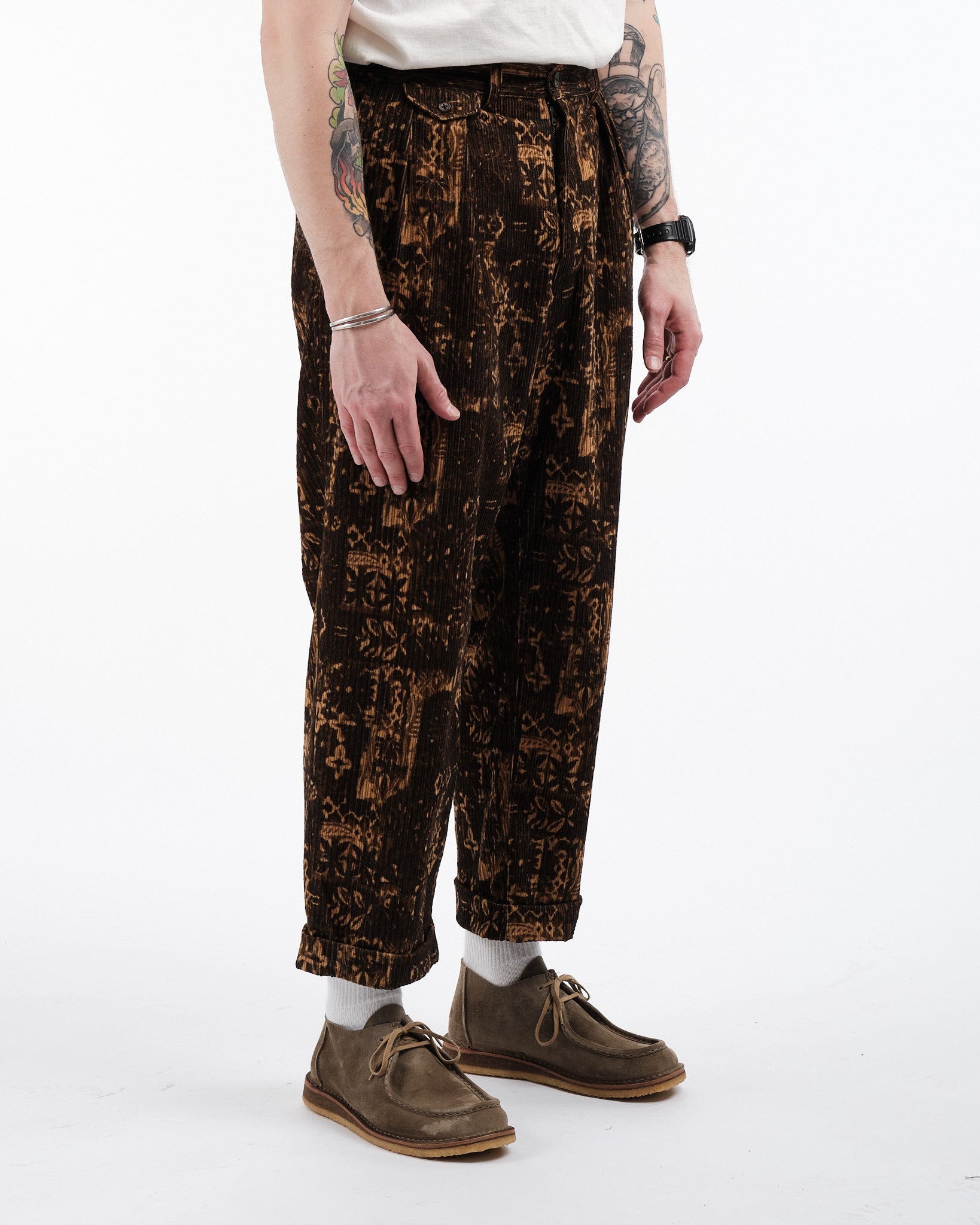 Faites un pas dans le temps avec les poutres + 2 pantalons pliers en velours côtelé marron. Ces pantalons sont inspirés par la mode du charme rétro mélangeant des années 1950, avec une touche de couture. Méticuleusement fabriqué au Japon, ces pantalons présentent un motif de fleurs dans des tons de brun et de beige sur un tissu en velours côtelé de haute qualité. Avec une conception de jambes qui ajoute une touche de style et un mélange de tissu confortable, notamment du polyester, du coton, de la rayonne et un soupçon de polyuréthane pour l'étirement, ils font un ajout exceptionnel, à toute garde-robe à la recherche de ce flair preppy.