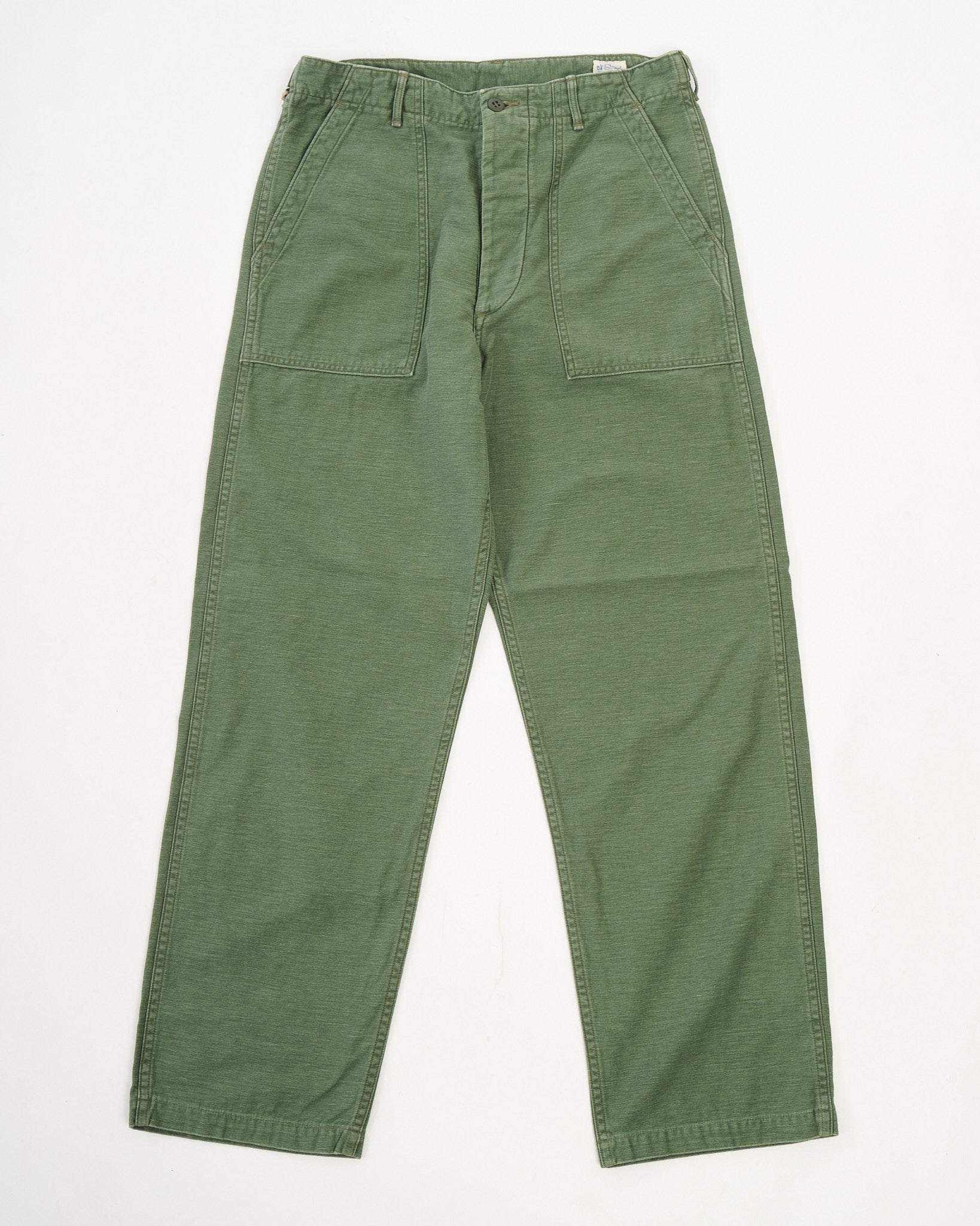 Vous cherchez des pantalons utilitaires ? Eh bien votre recherche se termine ici avec le Pantalon de Fatigue de l'Armée Américaine en Vert Coupe Régulière. Ces pantalons sont. Fabriqués au Japon assurant à la fois une qualité supérieure et un confort. Confectionnés en sergé de coton durable 100%, ces pantalons ont été pré-lavés et usés pour leur donner cette sensation de déjà porté dès le départ. La coupe droite trouve un équilibre entre les pantalons sur mesure et le style ample original, les rendant incroyablement polyvalents, pour la garde-robe de n'importe quel homme. Cela devient instantanément un favori dans n'importe quelle boutique comme les classiques intemporels qui l'ont inspiré.