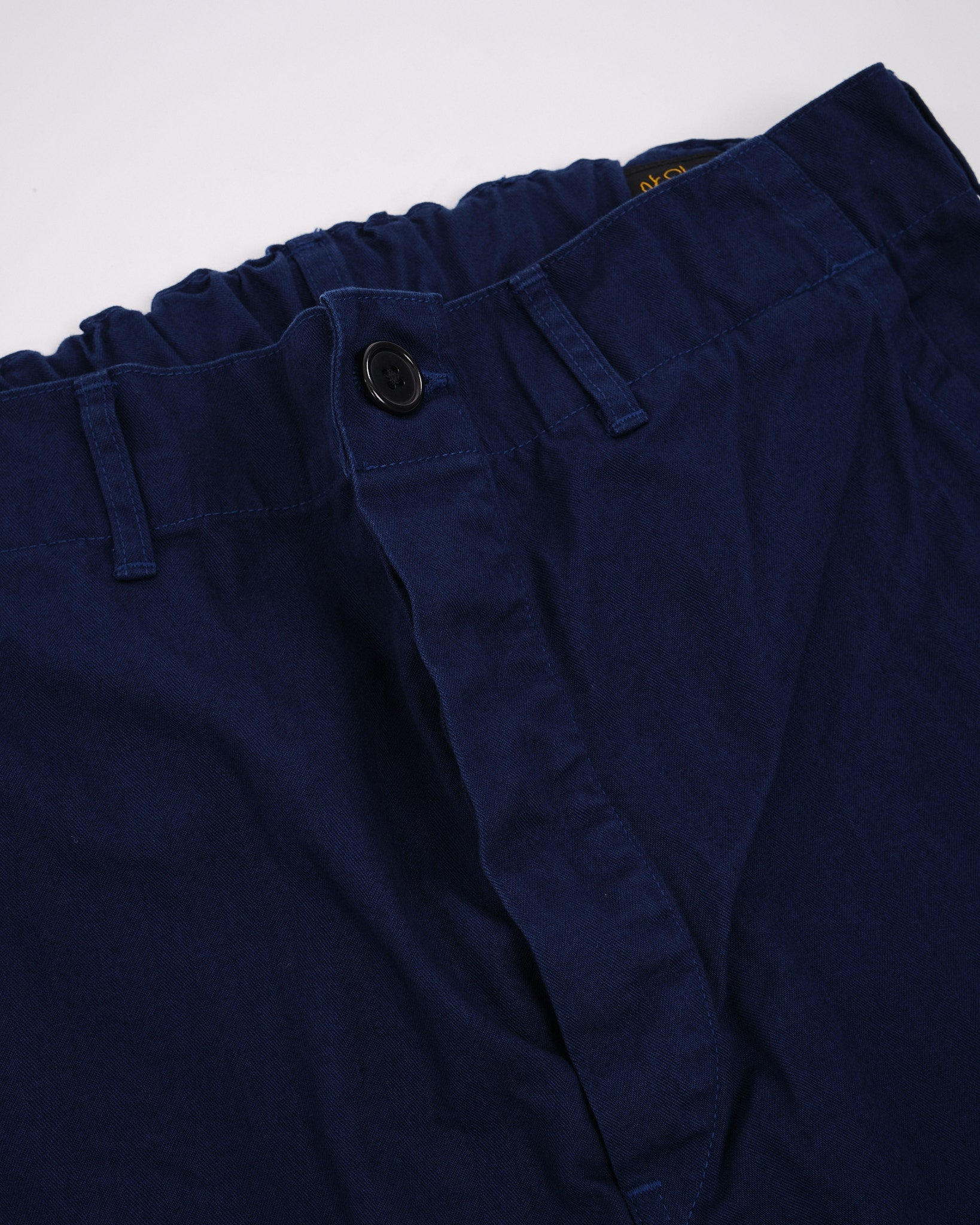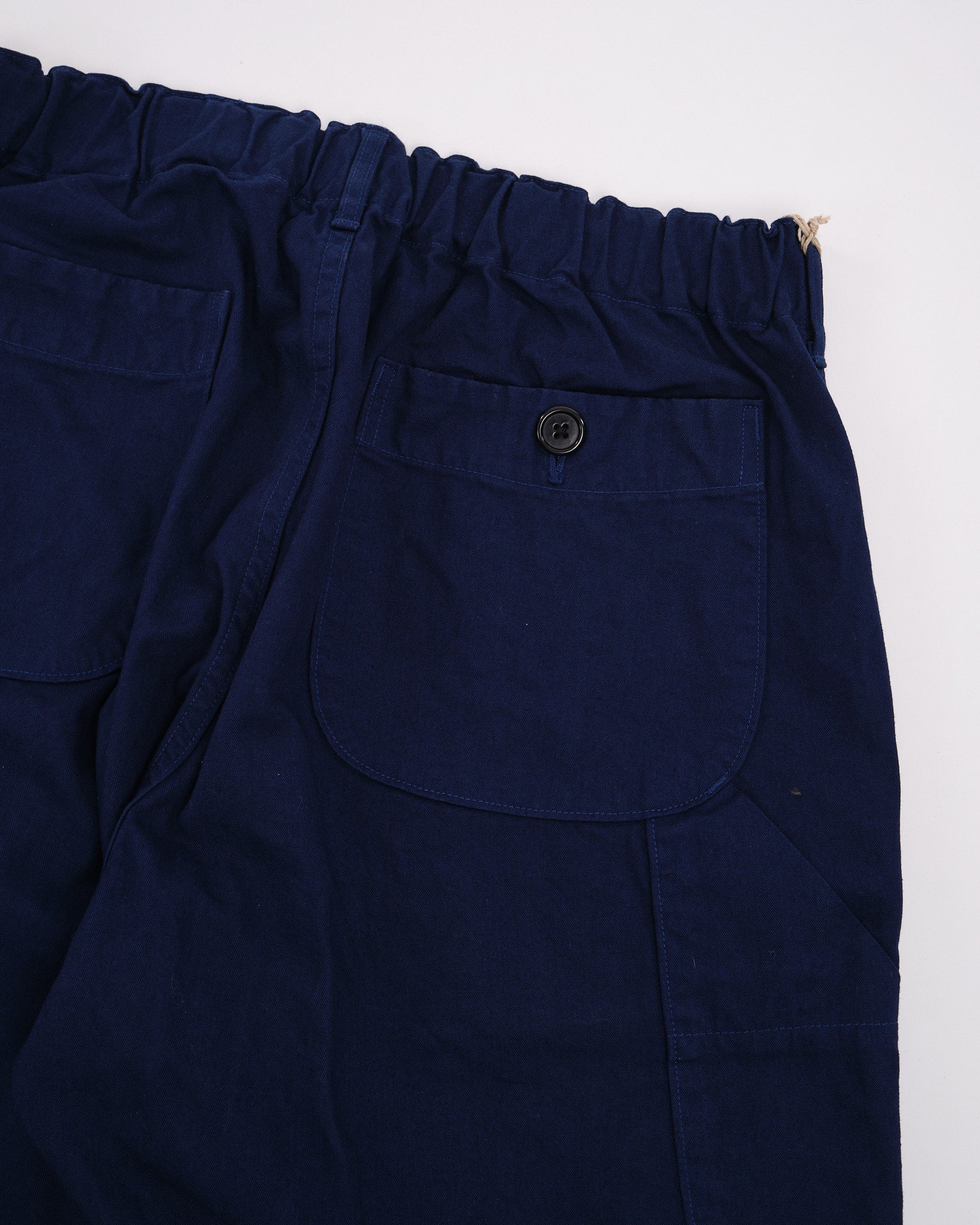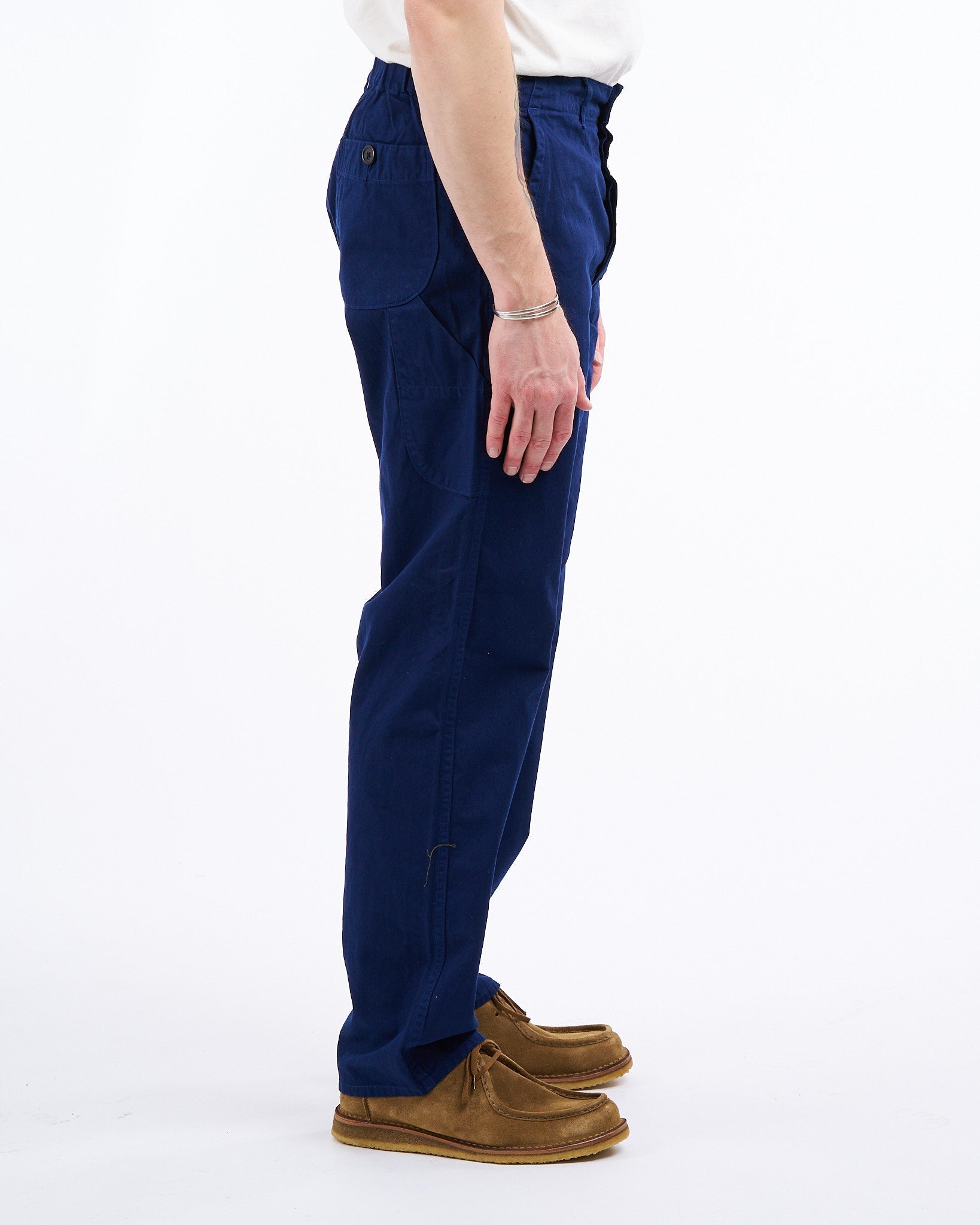 Faites l'expérience de la combinaison de la praticité et du style avec le PANTALON DE TRAVAIL FRANÇAIS ORSLOW en Bleu. Ces pantalons sont méticuleusement fabriqués au Japon en utilisant du coton assurant un ajustement confortable et détendu. Adoptant une esthétique intemporelle inspirée de l'utilitaire, ils comportent une taille élastiquée qui ne fournit pas seulement un ajustement serré mais ajoute également à leur charme inspiré du vêtement de travail. Les pantalons arborent une subtile rayure en chevron tissée montrant le souci du détail. Avec quatre poches, y compris une poche utilitaire dédiée sur la jambe droite, cette version bleu indigo du Pantalon de Travail Français iconique est plus, qu'un simple vêtement ; c'est une déclaration de mode.