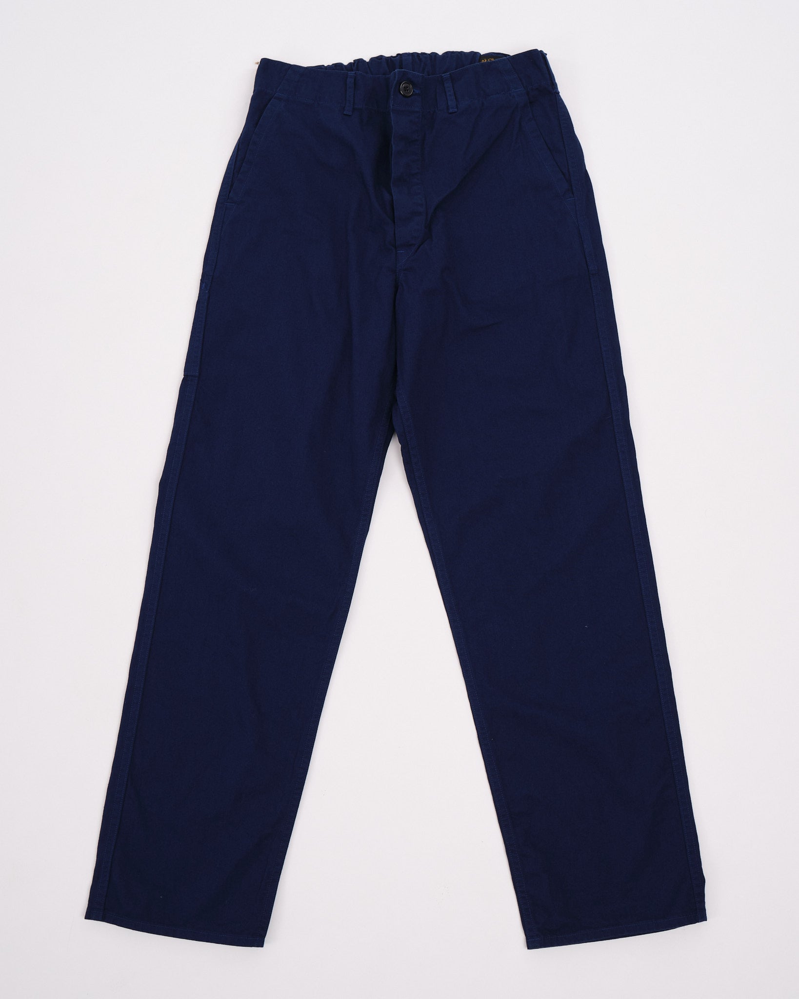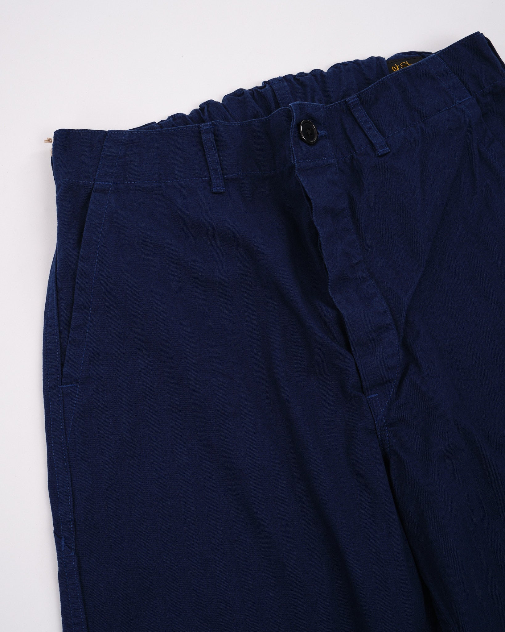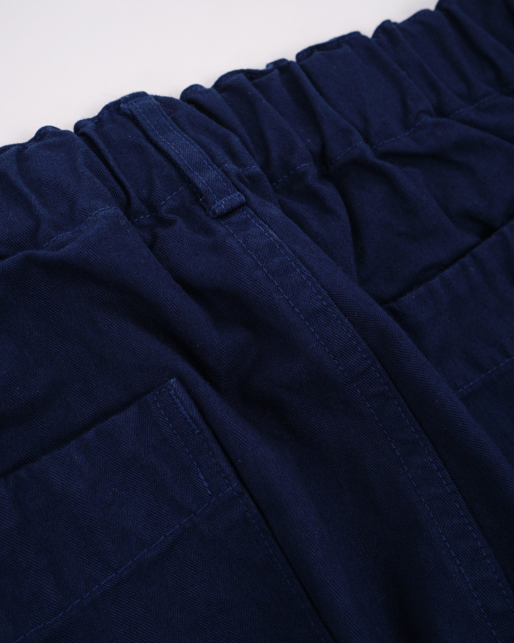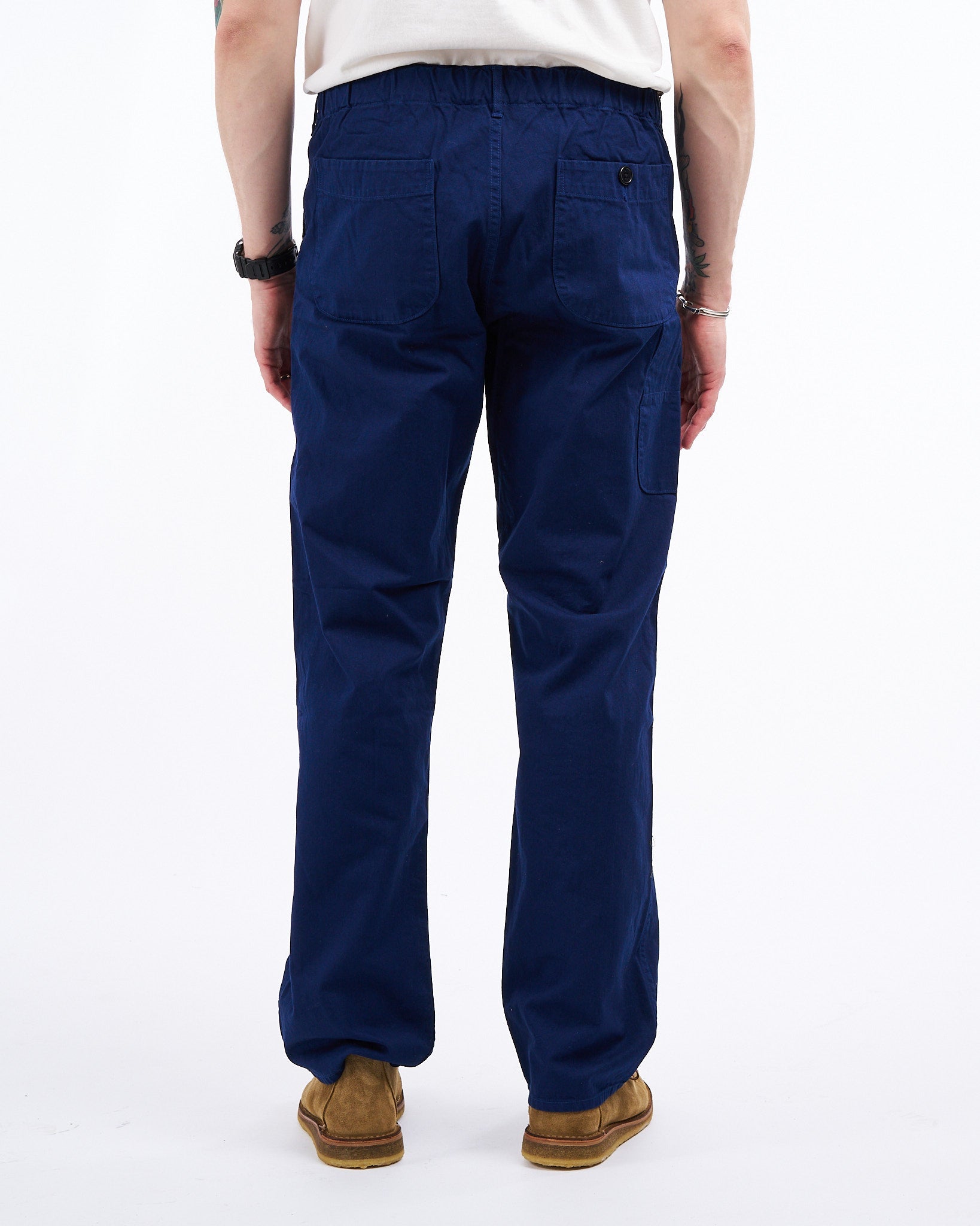 Faites l'expérience de la combinaison de la praticité et du style avec le PANTALON DE TRAVAIL FRANÇAIS ORSLOW en Bleu. Ces pantalons sont méticuleusement fabriqués au Japon en utilisant du coton assurant un ajustement confortable et détendu. Adoptant une esthétique intemporelle inspirée de l'utilitaire, ils comportent une taille élastiquée qui ne fournit pas seulement un ajustement serré mais ajoute également à leur charme inspiré du vêtement de travail. Les pantalons arborent une subtile rayure en chevron tissée montrant le souci du détail. Avec quatre poches, y compris une poche utilitaire dédiée sur la jambe droite, cette version bleu indigo du Pantalon de Travail Français iconique est plus, qu'un simple vêtement ; c'est une déclaration de mode.