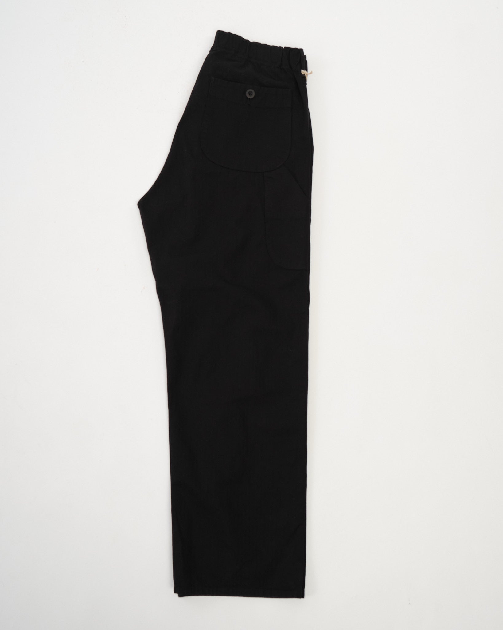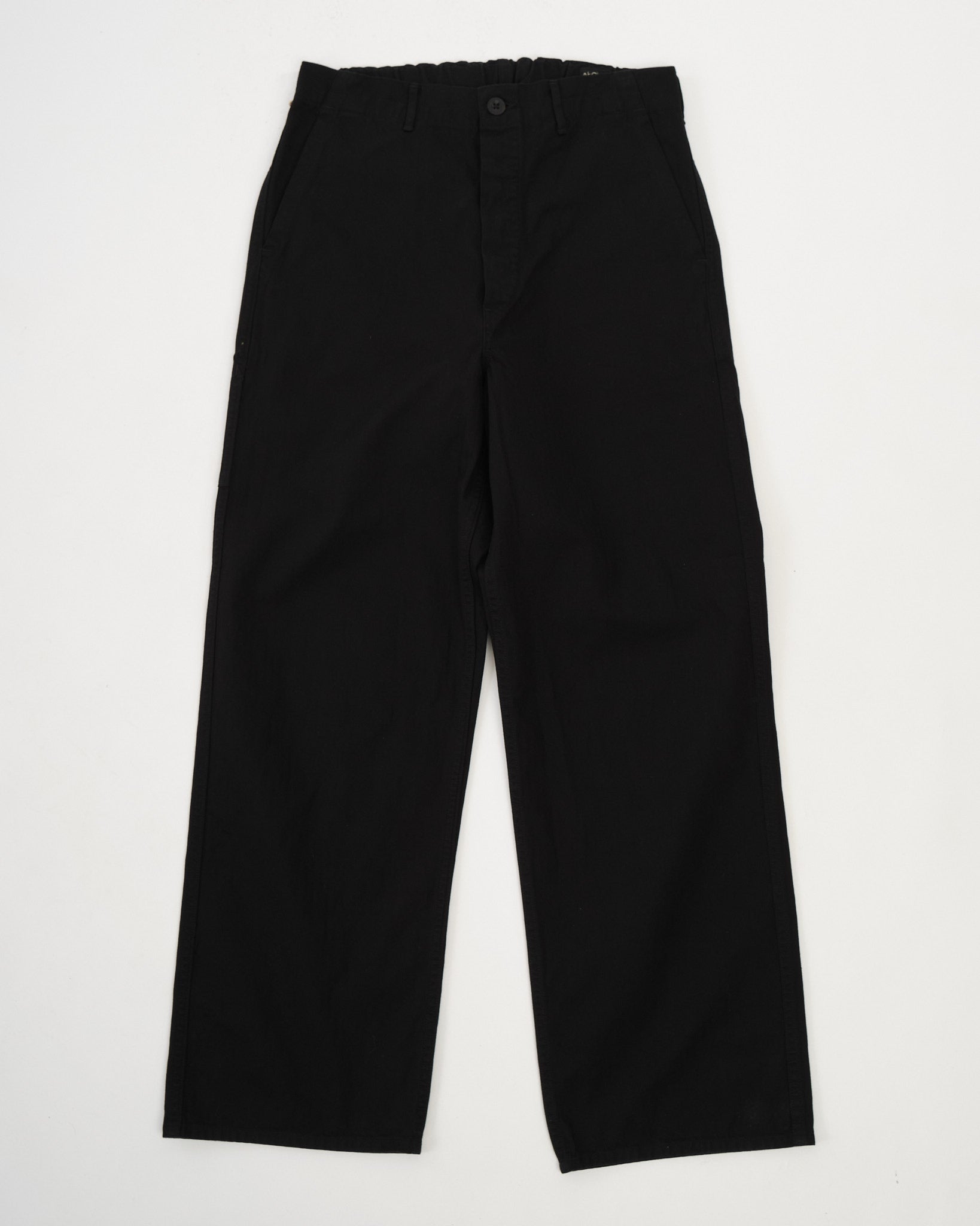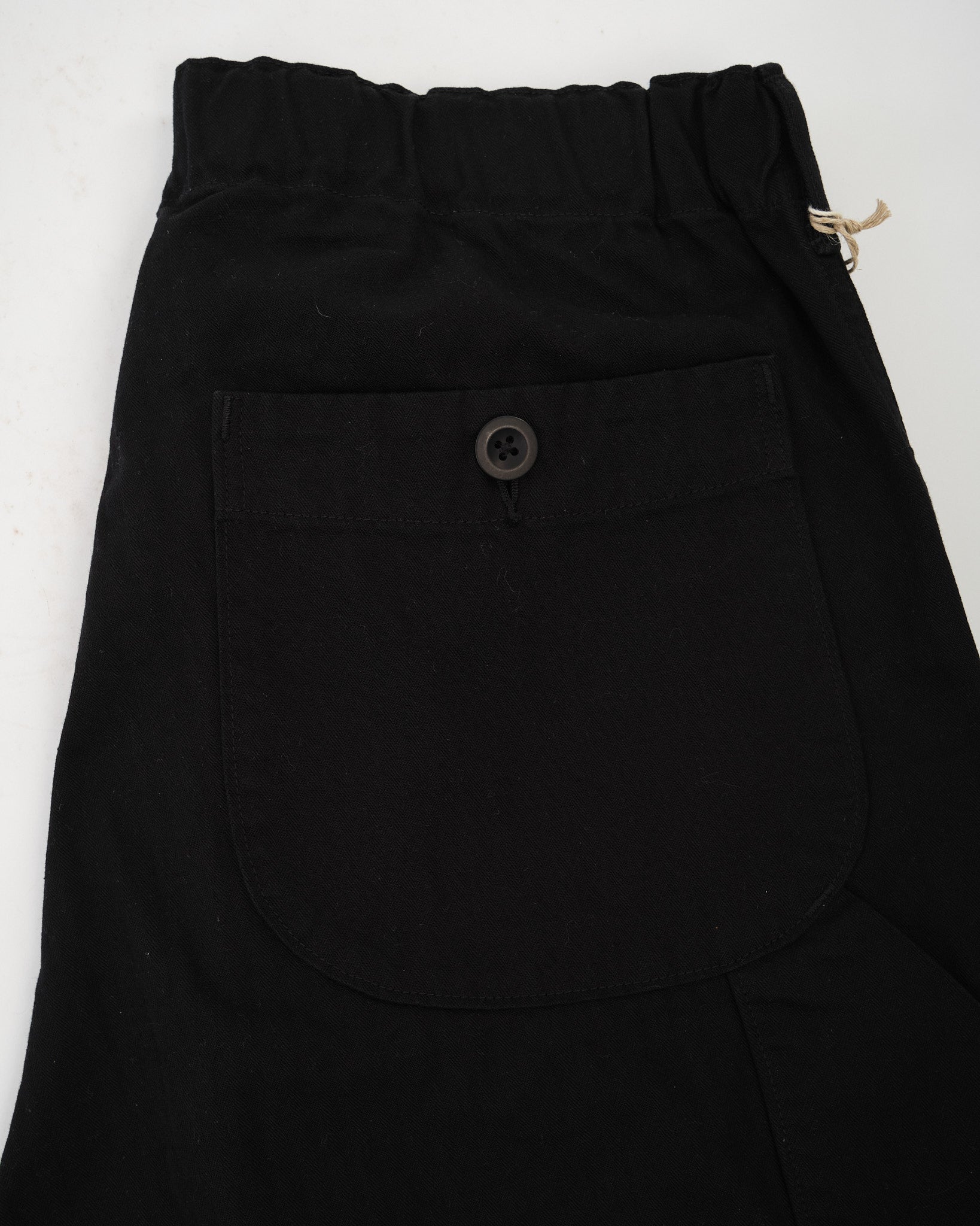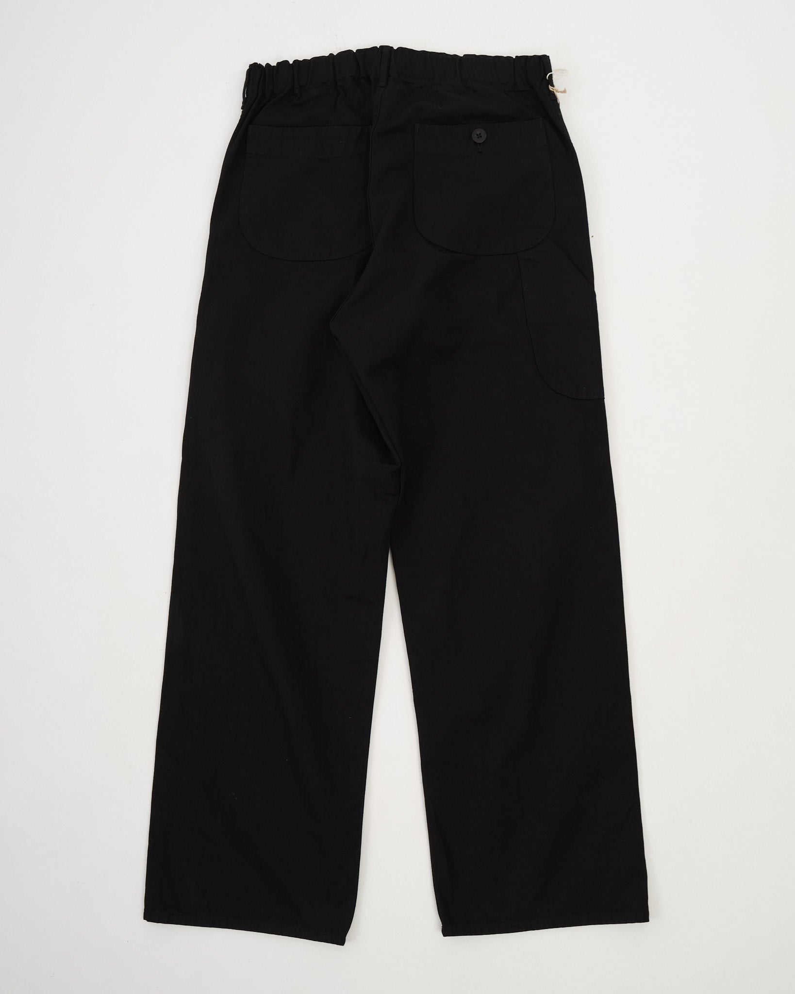 Avec sa silhouette ample, il offre beaucoup d'espace pour le mouvement, reflétant ses origines utilitaires. La teinte noire profonde ajoute une touche de sophistication, rendant ces pantalons polyvalents pour diverses occasions.