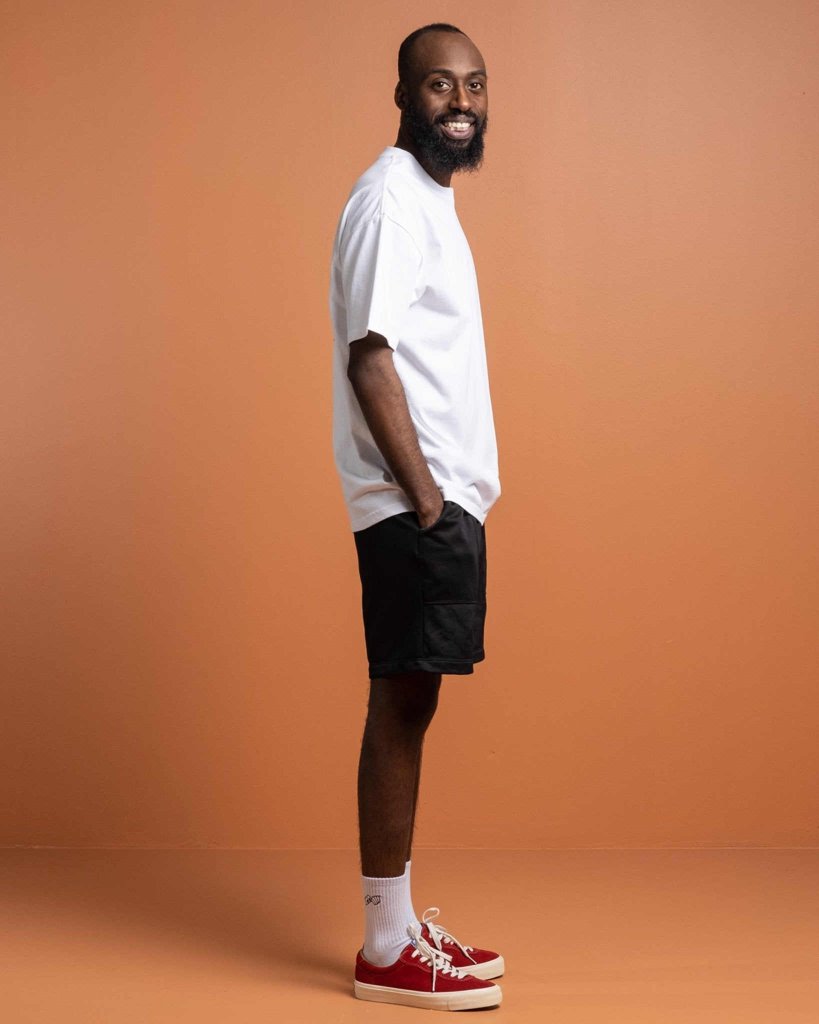 Suivez le noir court de Lady White Co. à base d'un coton doux et léger. Ajustement régulier avec deux poches latérales, une poche arrière et un cordon de dessin. Probablement les shorts les plus confortables que vous aurez jamais possédés! Fabriqué aux États-Unis.